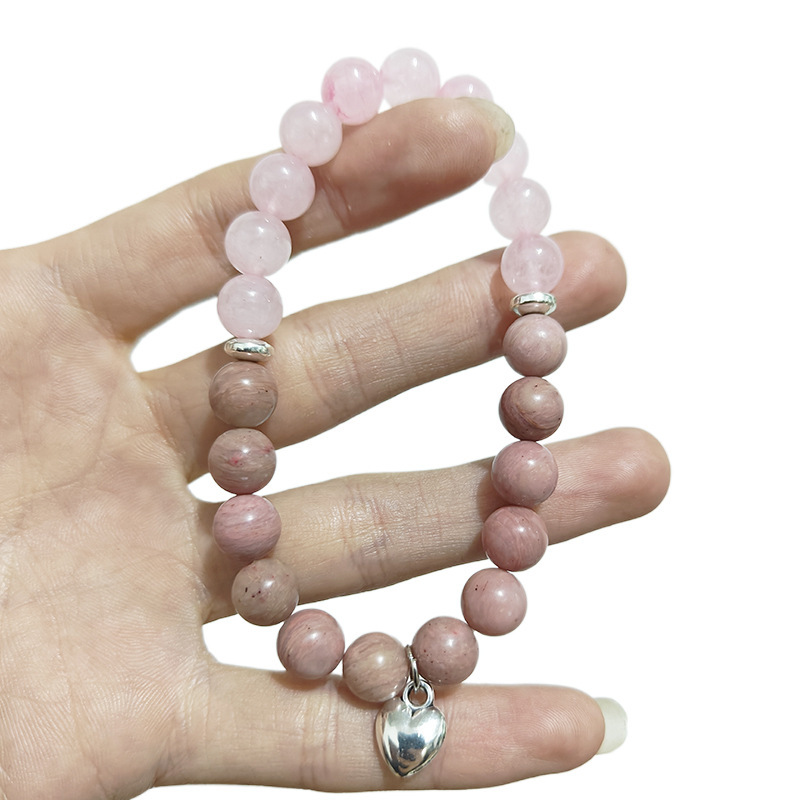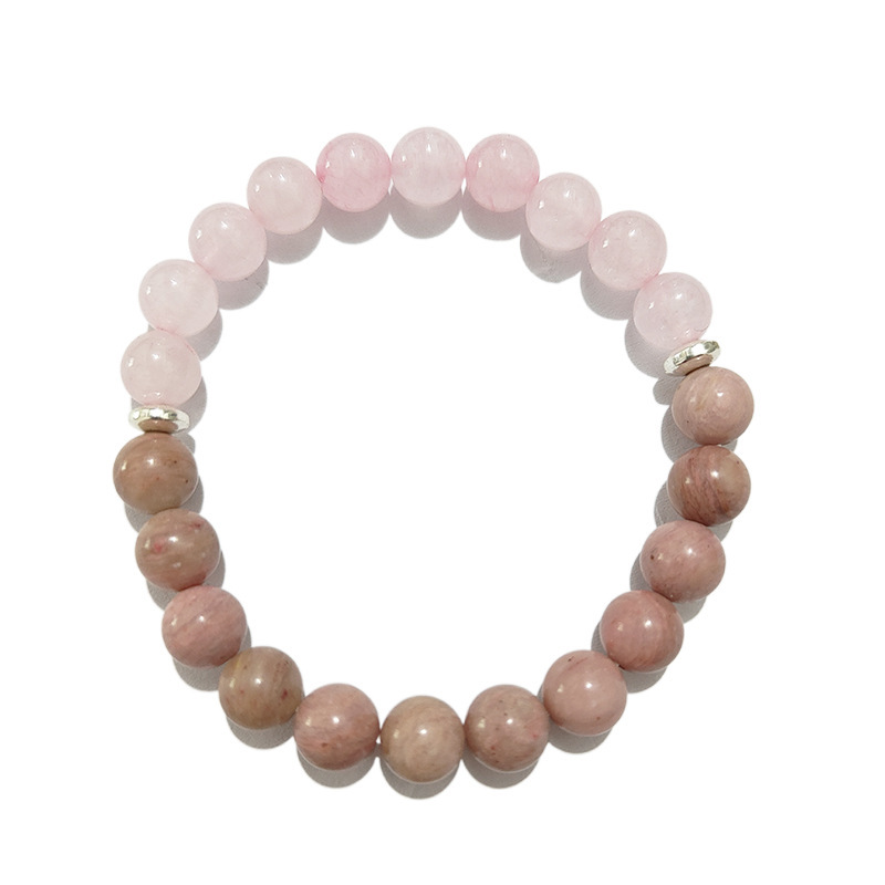 Edelstein Armbänder, Rosenquarz, mit Rhodonit, Modeschmuck, gemischte Farben, 8mm, Länge 21 cm, verkauft von PC