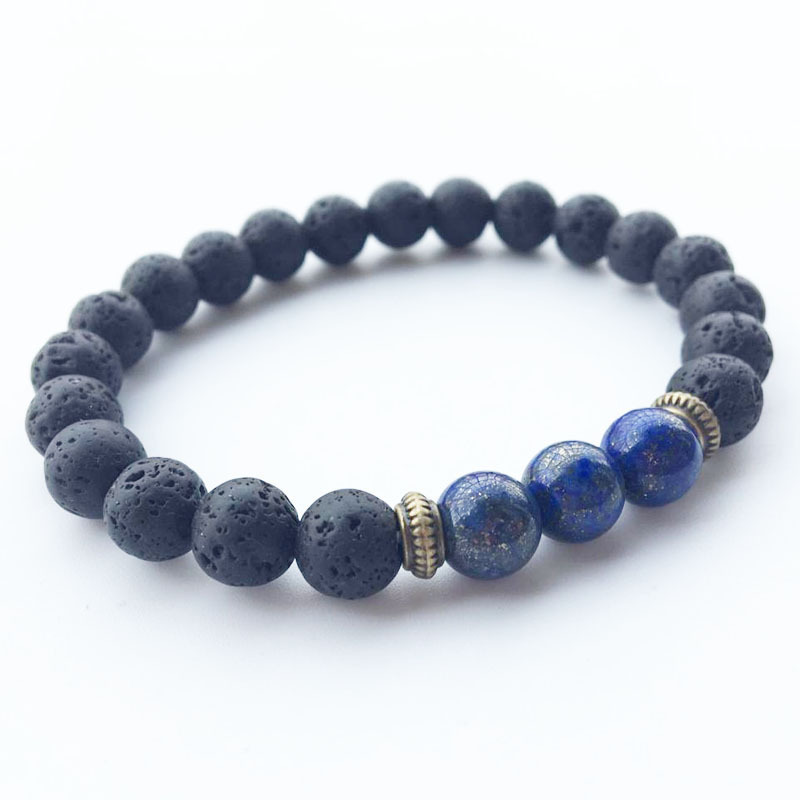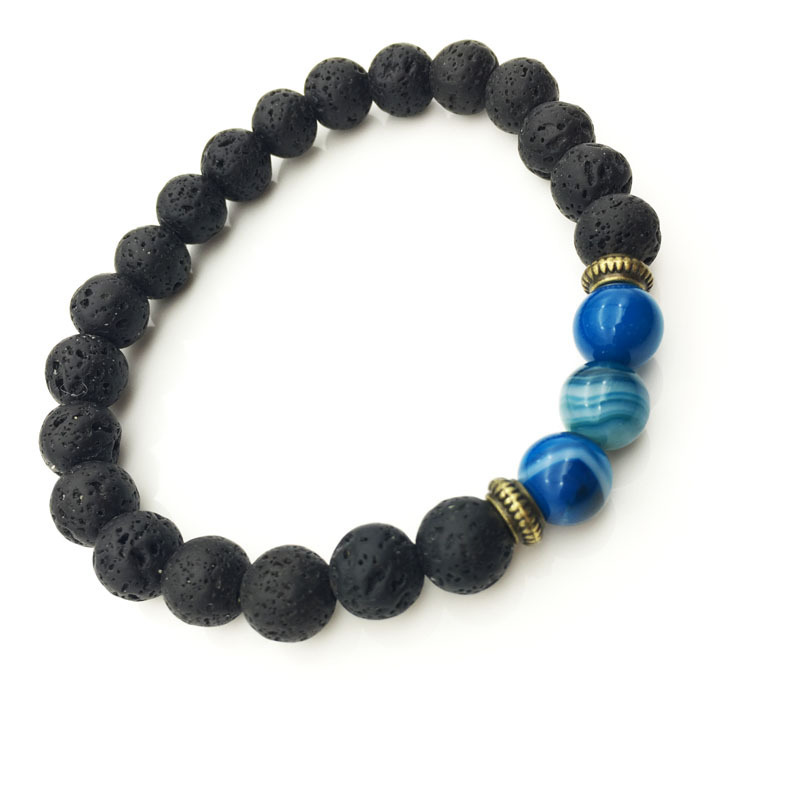 Edelstein Armbänder, Lava, mit Zinklegierung, Modeschmuck, gemischte Farben, 8mm, Länge 21 cm, verkauft von PC