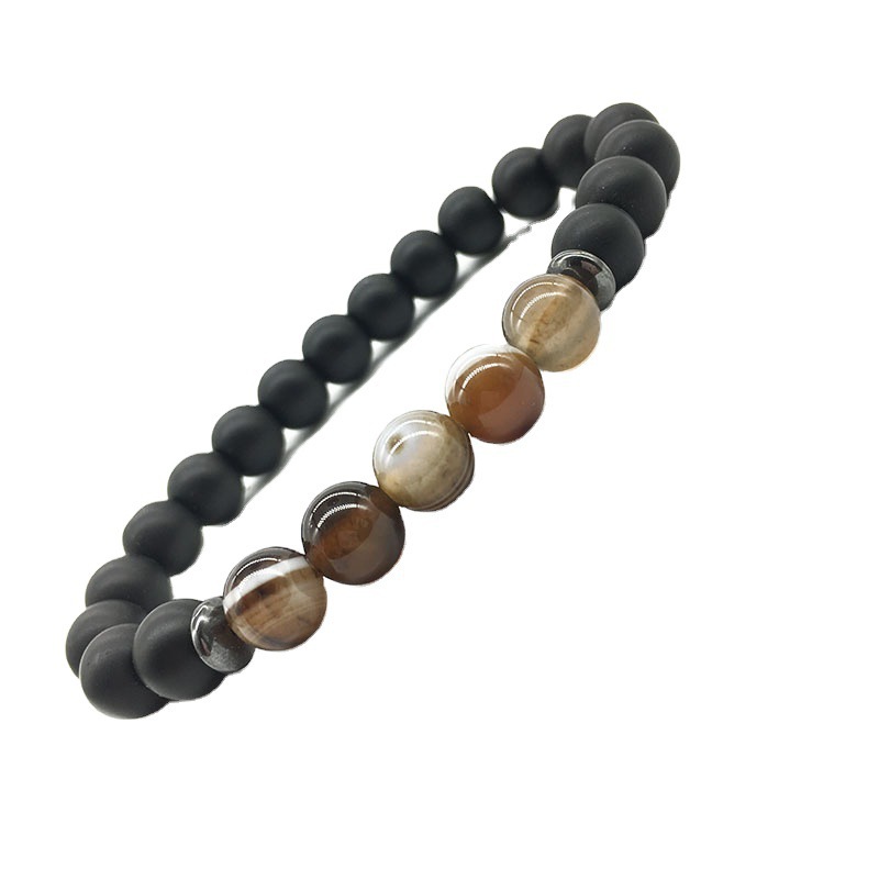 Edelstein Armbänder, Abrazine Stein, mit Non- magnetische Hämatit & Streifen Achat, Modeschmuck, gemischte Farben, 8mm, Länge 21 cm, verkauft von setzen