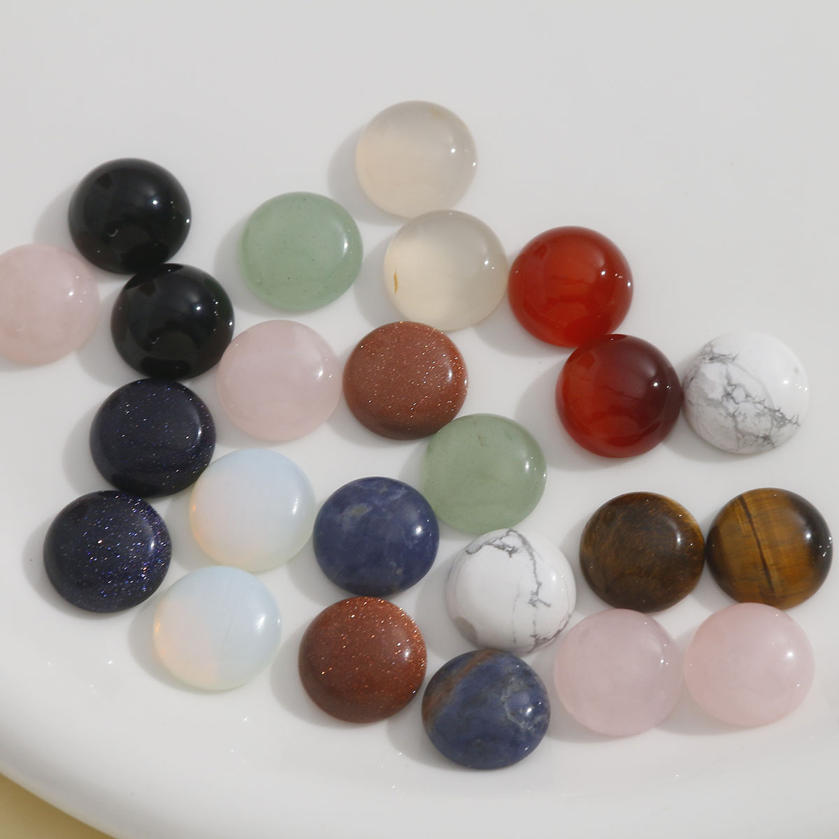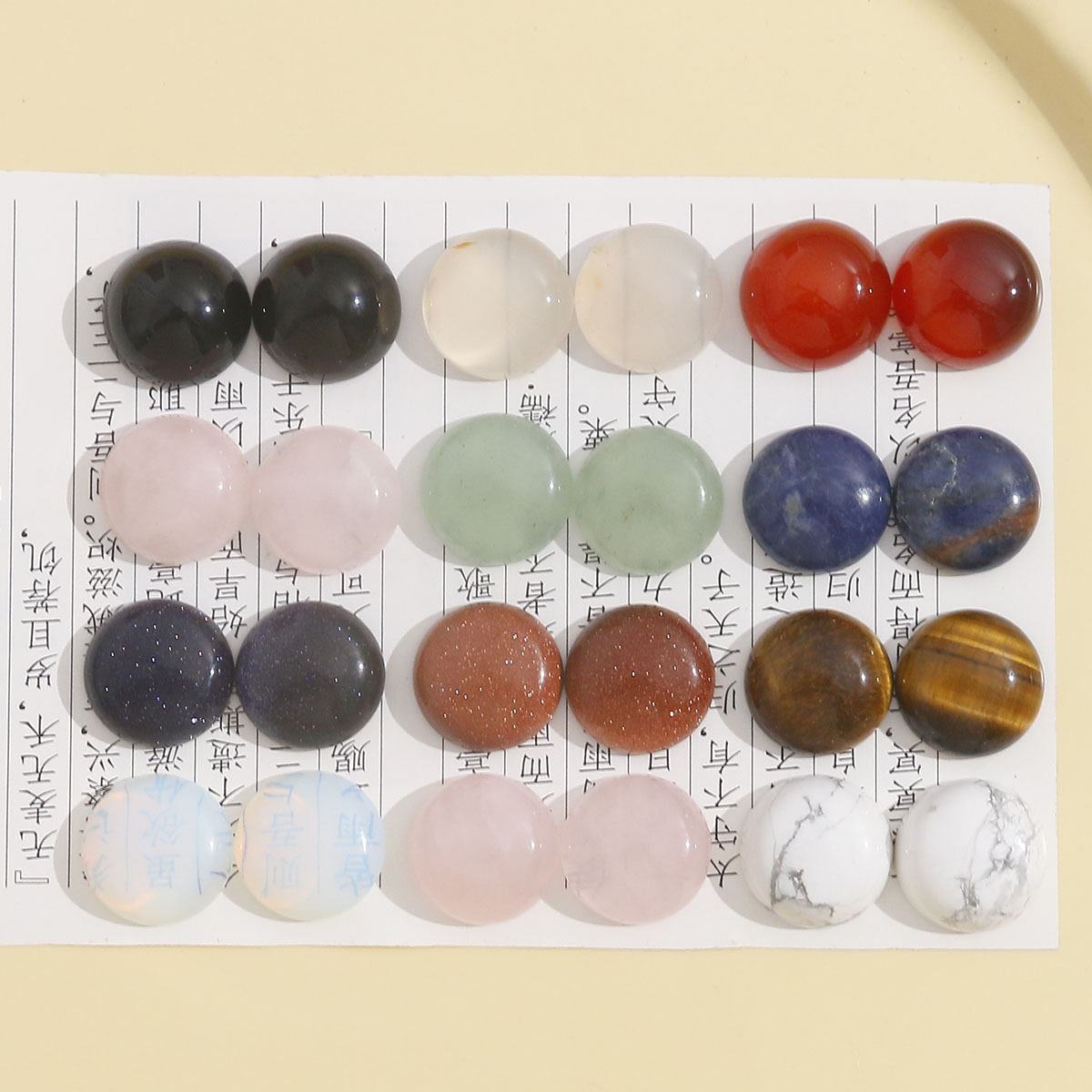 1:One black agate stone (thickness about 8mm)2:One white agate stone (thickness about 6mm)3:One red agate stone (thickness about 8mm)4:One powder Crystal (thickness about 7mm)5:One green Dongling Stone (thickness about 5mm)6:One white turquoise (thickness about 7mm)7:One blue sand stone (thickness about 6mm)8:One Jinsha Stone (thickness about 6mm)9:One tiger eye Stone (thickness about 6mm)10:One Opal (thickness about 6mm)11:One blue grain Stone (thickness about 5mm)