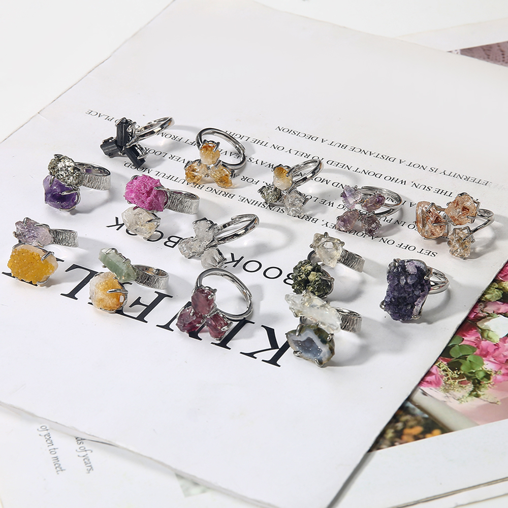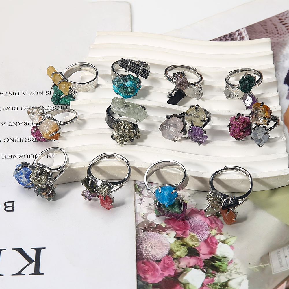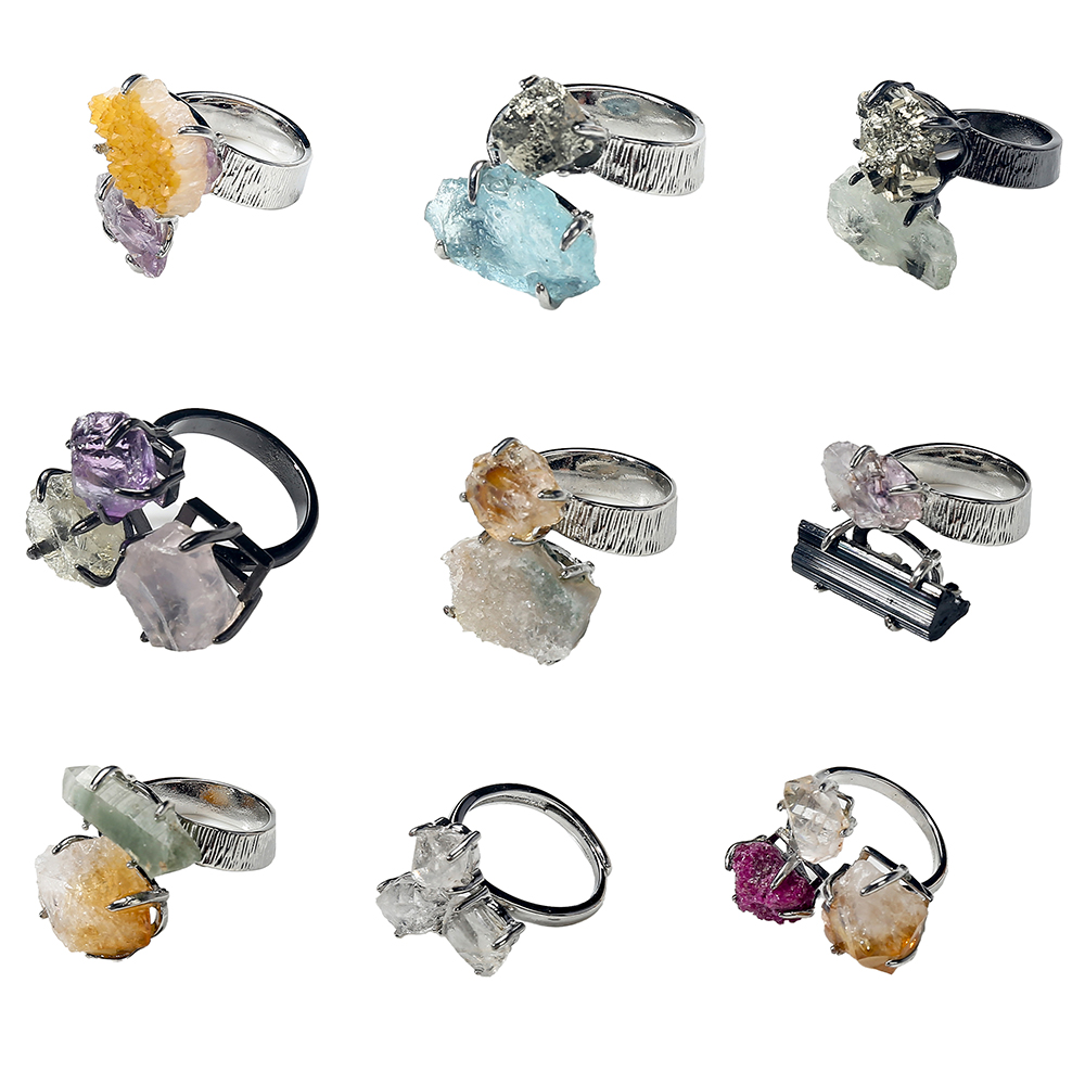 Edelstein Fingerring, mit 304 Edelstahl, zufällig gesendet & Modeschmuck & unisex, gemischte Farben, Innendurchmesser:ca. 18.62mm, verkauft von PC