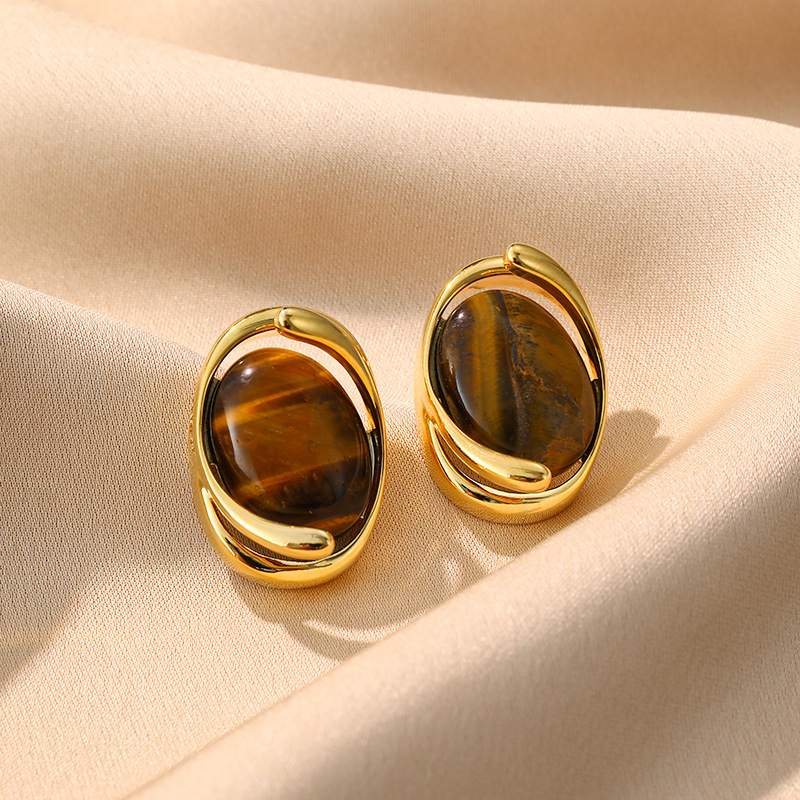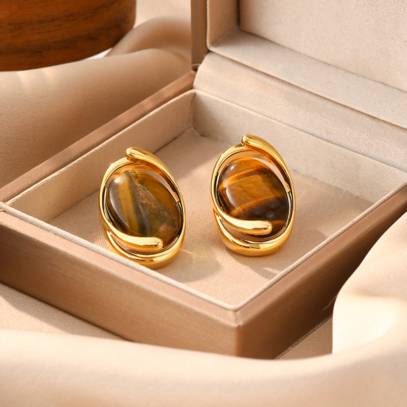Edelstein Ohrringe, Messing, mit Tigerauge, 18K vergoldet, Modeschmuck & für Frau & hohl, Height 1.9cm and length 2.8cm, verkauft von Paar
