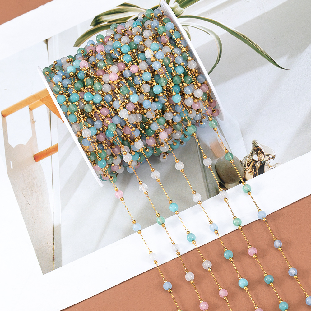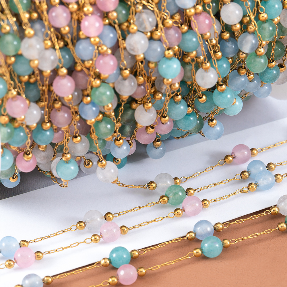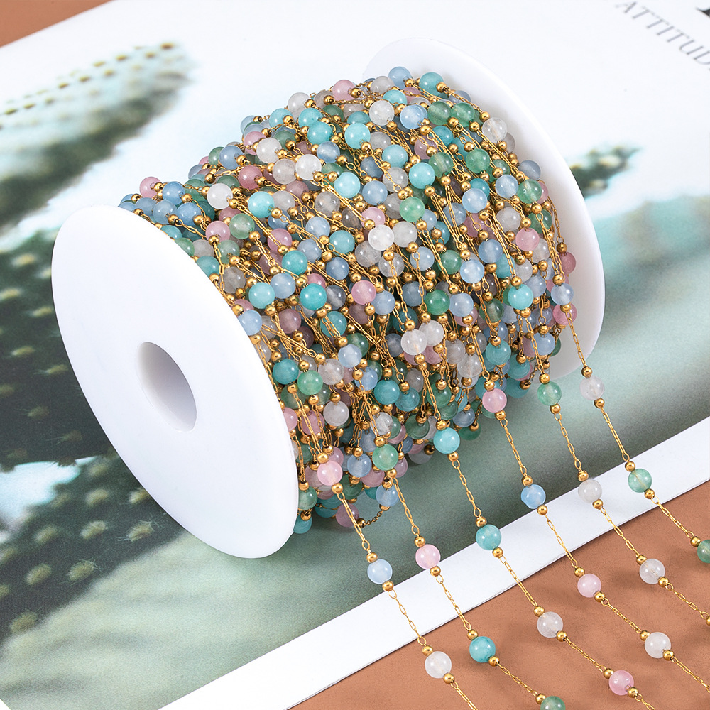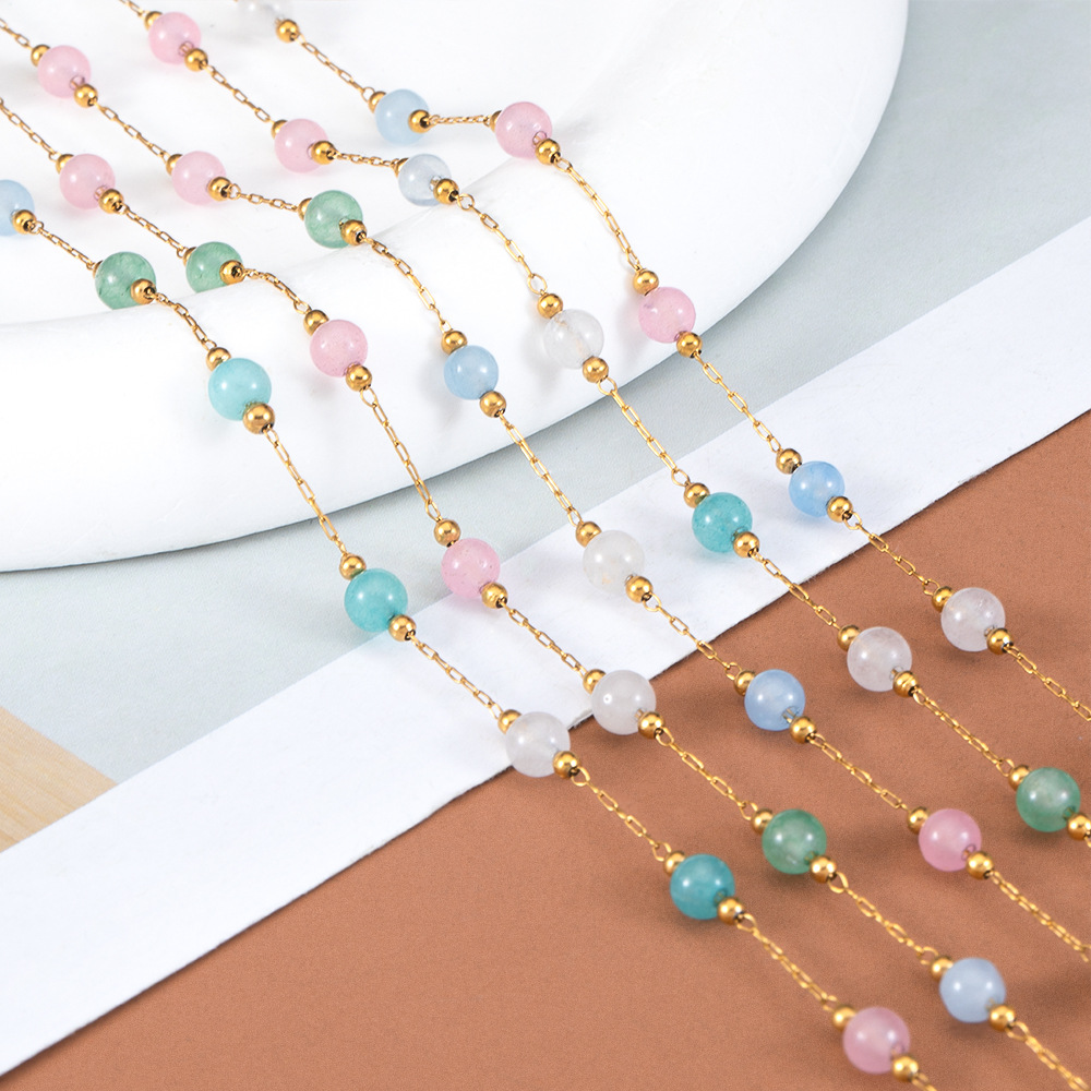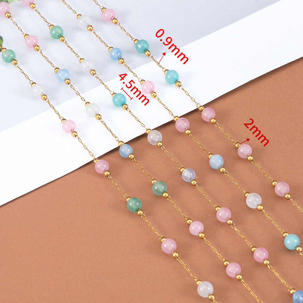 Edelstein Perlen Kette, 304 Edelstahl, mit Glas, rund, plattiert, DIY & verschiedene Größen vorhanden, keine, verkauft von m
