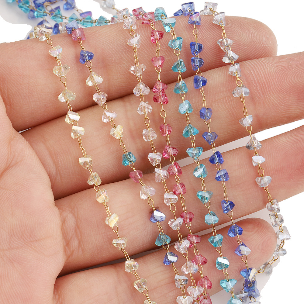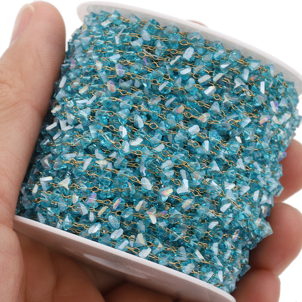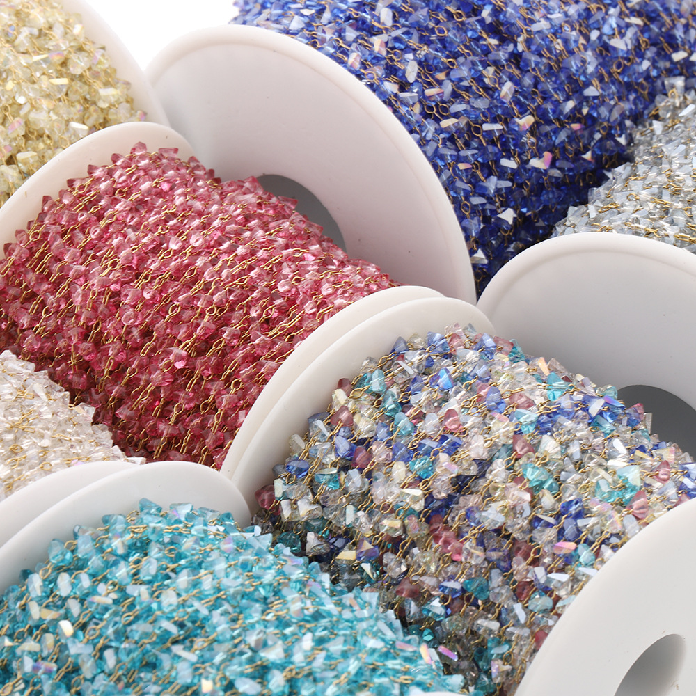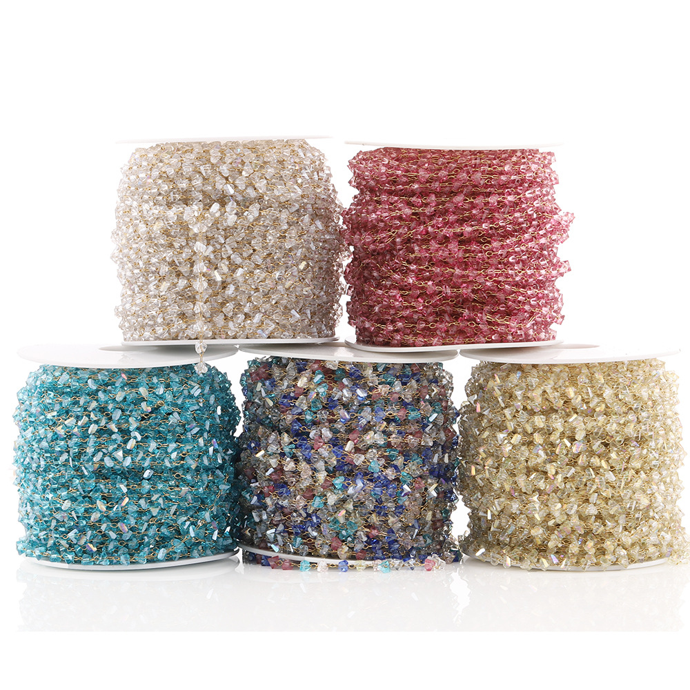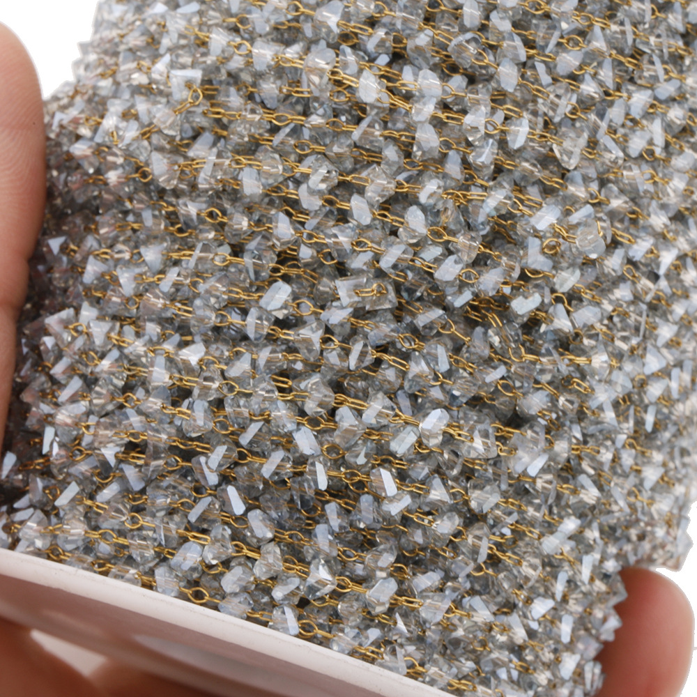 Edelstein Perlen Kette, 304 Edelstahl, mit Kristall, goldfarben plattiert, DIY, keine, 3.7 mm, 5m/Tasche, verkauft von Tasche