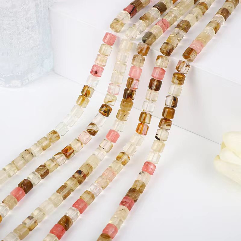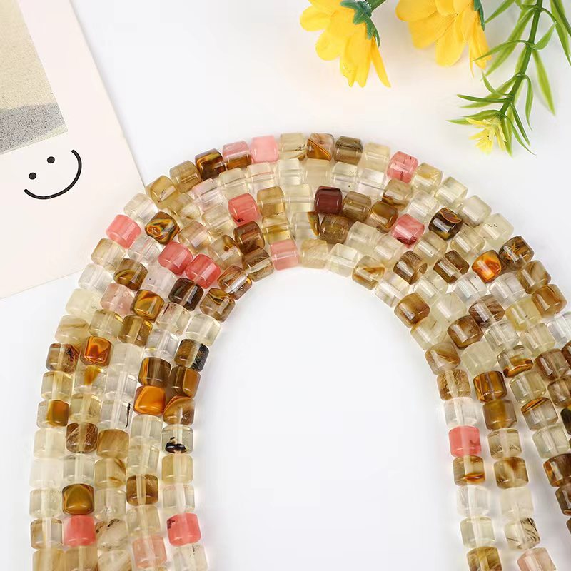 Edelstein Schmuckperlen, Wassermelone, Zylinder, DIY, gemischte Farben, 8x8mm, ca. 45PCs/Strang, verkauft von Strang