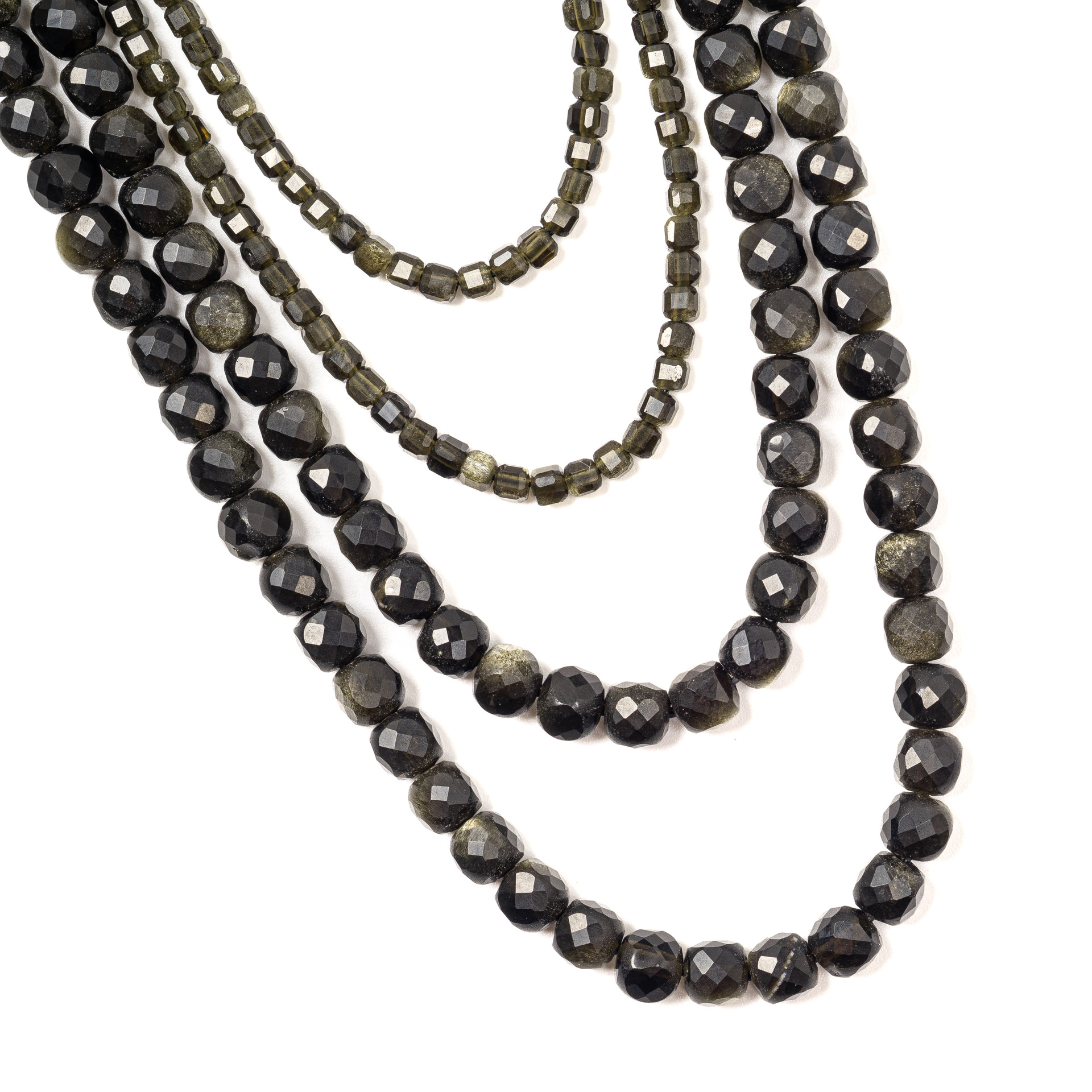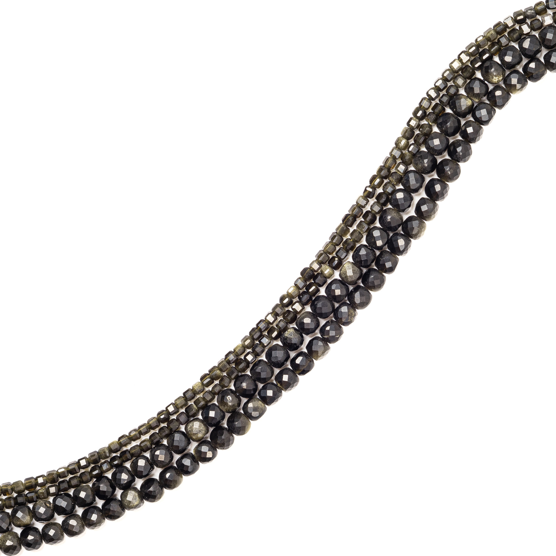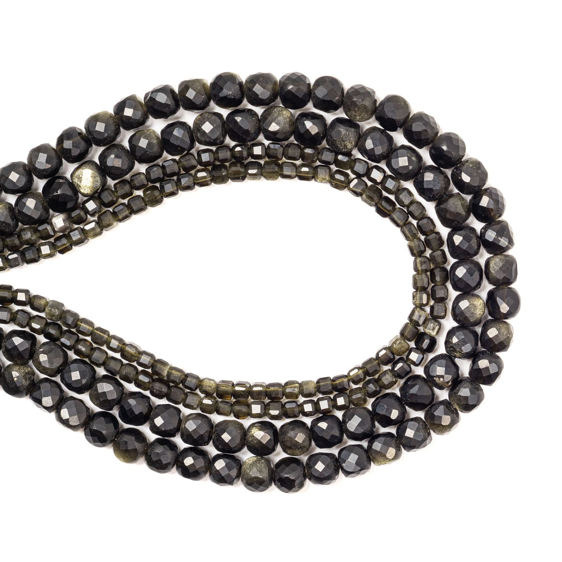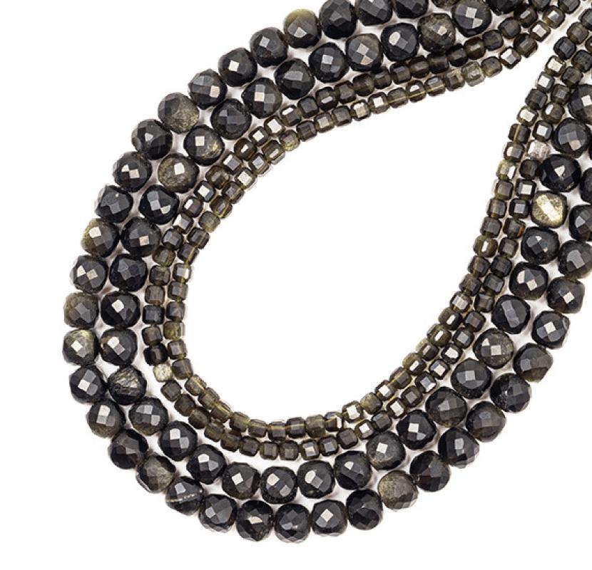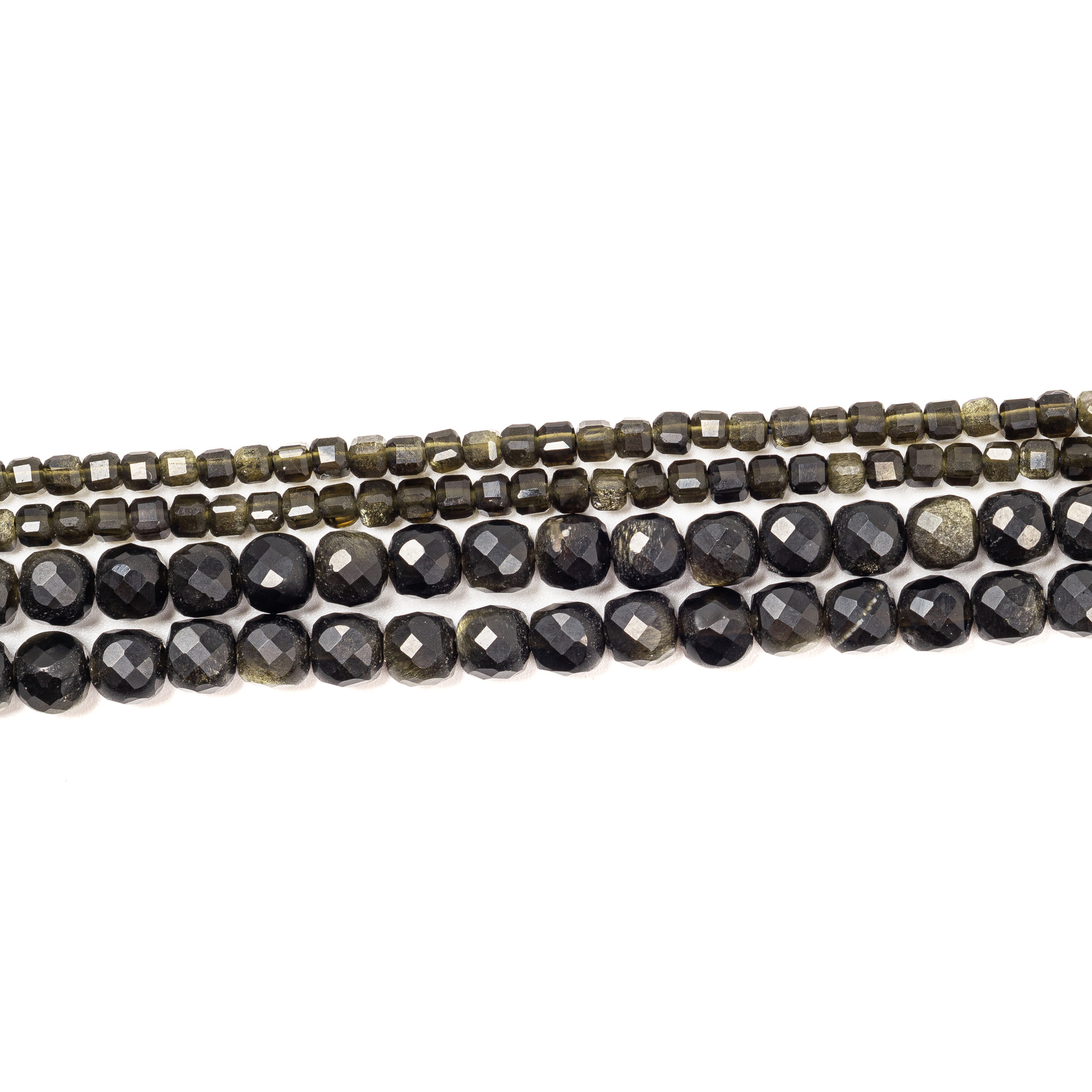 Edelstein Schmuckperlen, Gold- Obsidian, Quadrat, DIY & verschiedene Größen vorhanden & facettierte, schwarz, verkauft per ca. 38 cm Strang