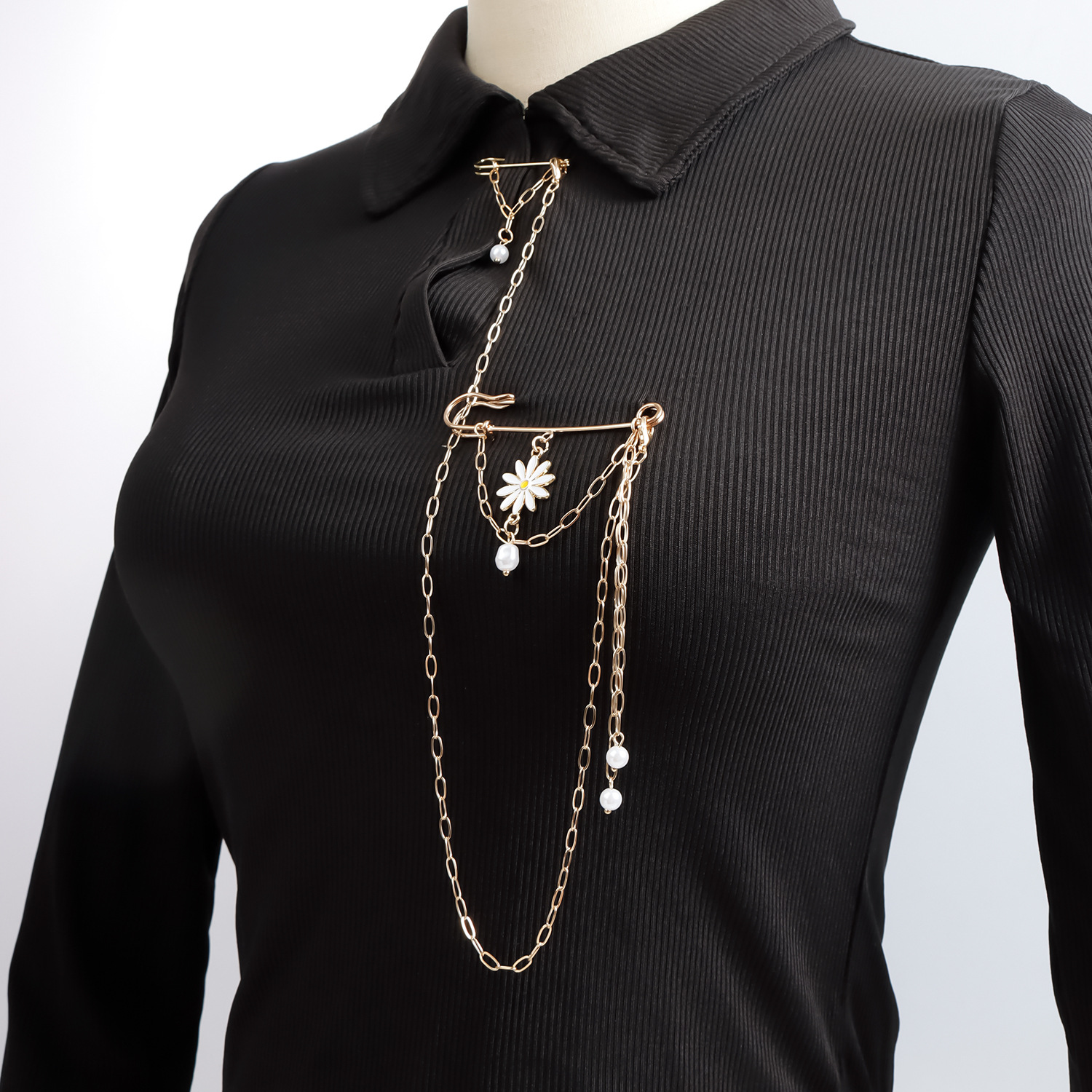Emaille-Brosche, Zinklegierung, mit ABS-Kunststoff-Perlen, goldfarben plattiert, Modeschmuck, goldfarben, verkauft von PC