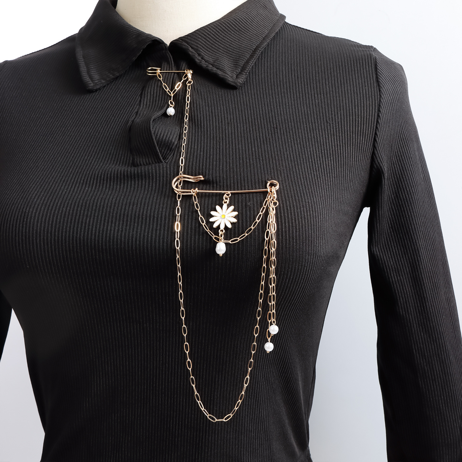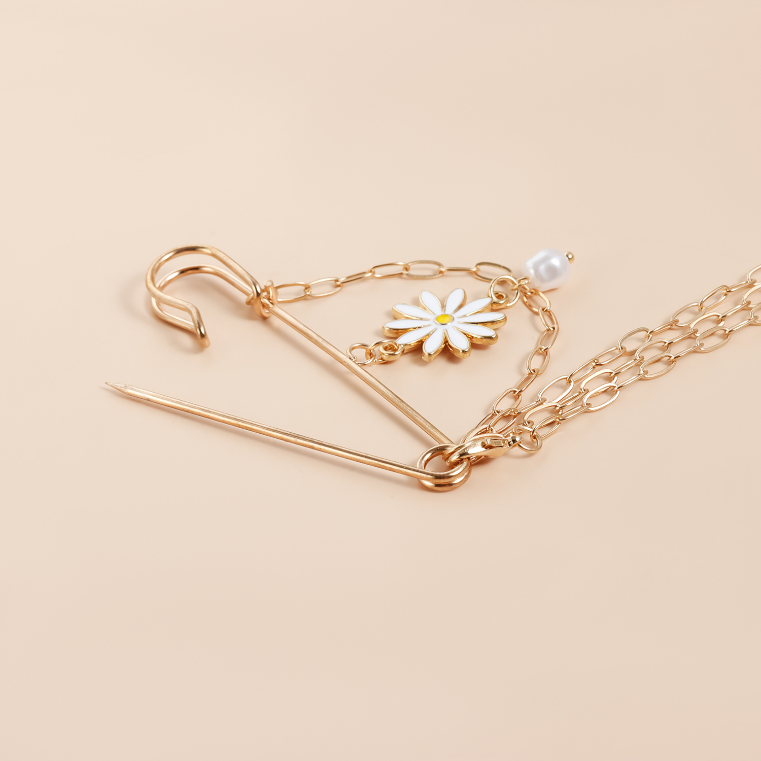 Zinklegierung Brosche, gänseblümchenMargerite, plattiert, für Frau & Emaille & mit Strass, keine, 40mm, verkauft von PC