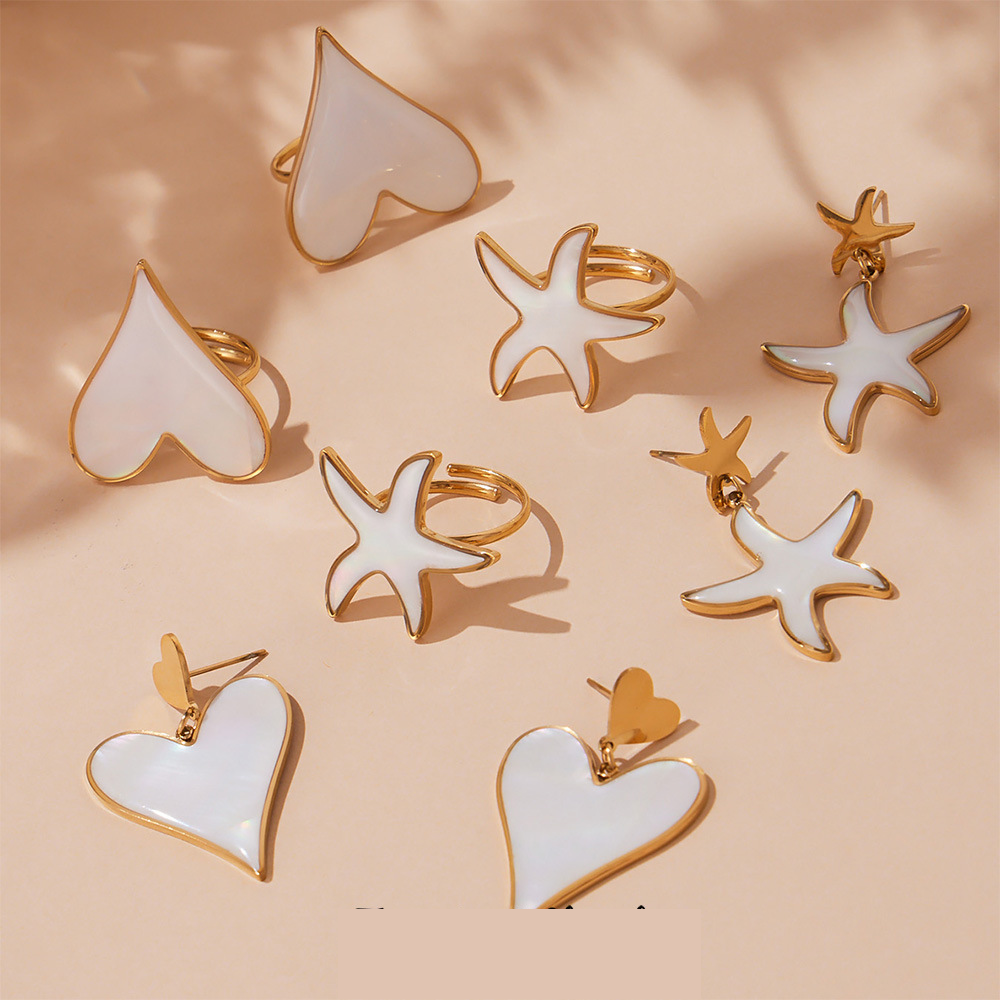 Emaille Edelstahl Schmuck Set, Fingerring & Ohrring, 304 Edelstahl, goldfarben plattiert, Modeschmuck, goldfarben, verkauft von PC