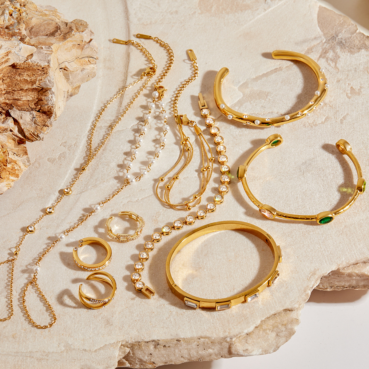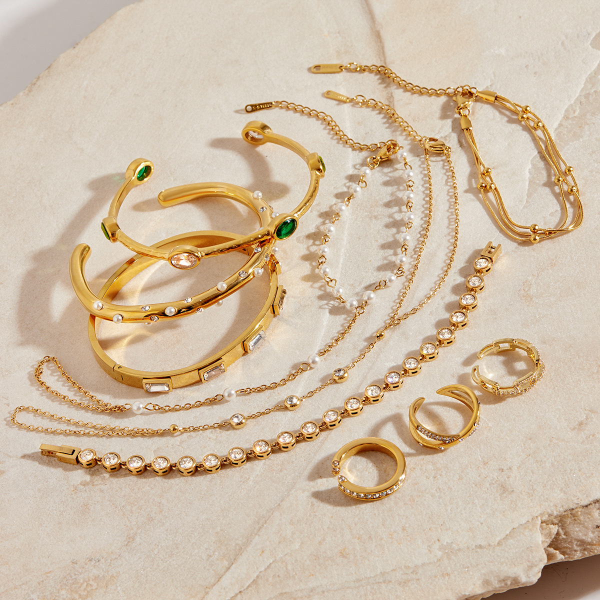 Rhinestone Edelstahl Schmuck Set, 304 Edelstahl, plattiert, verschiedene Stile für Wahl & für Frau & mit Strass, goldfarben, verkauft von PC