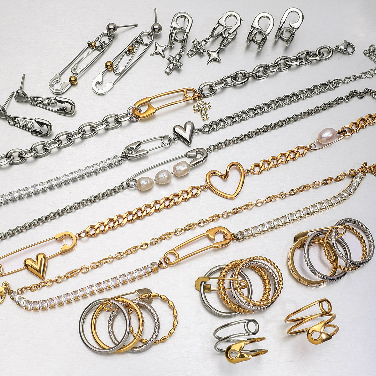 Rhinestone Edelstahl Schmuck Set, 304 Edelstahl, plattiert, verschiedene Stile für Wahl & für Frau & mit Strass, verkauft von PC