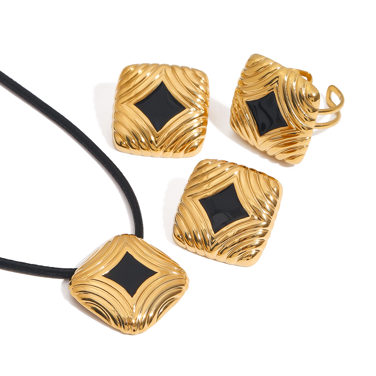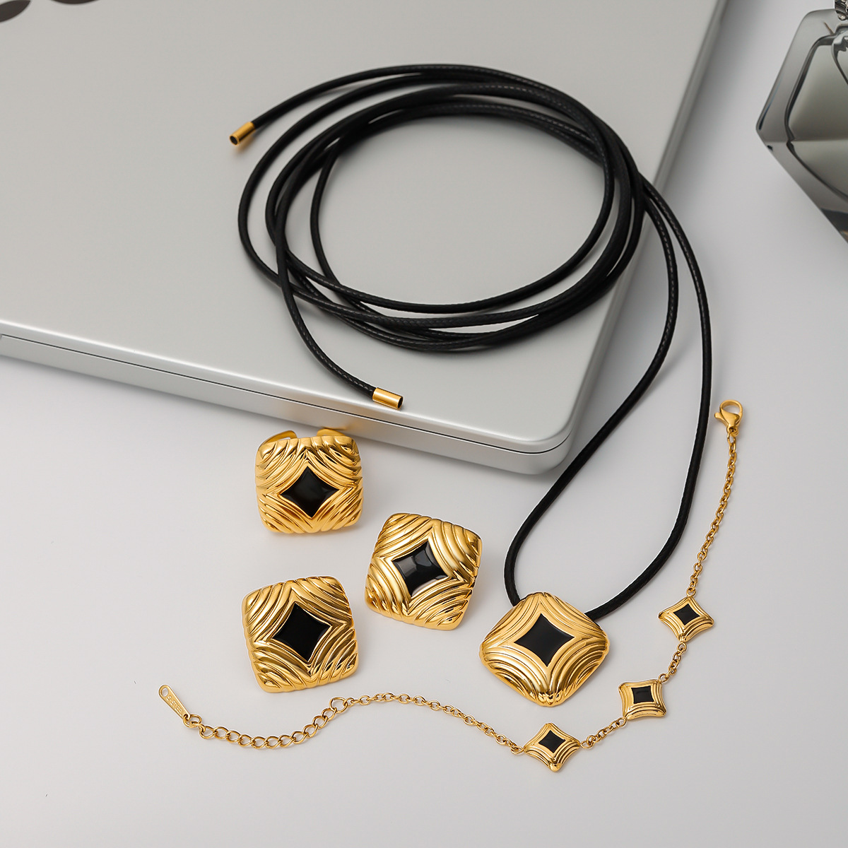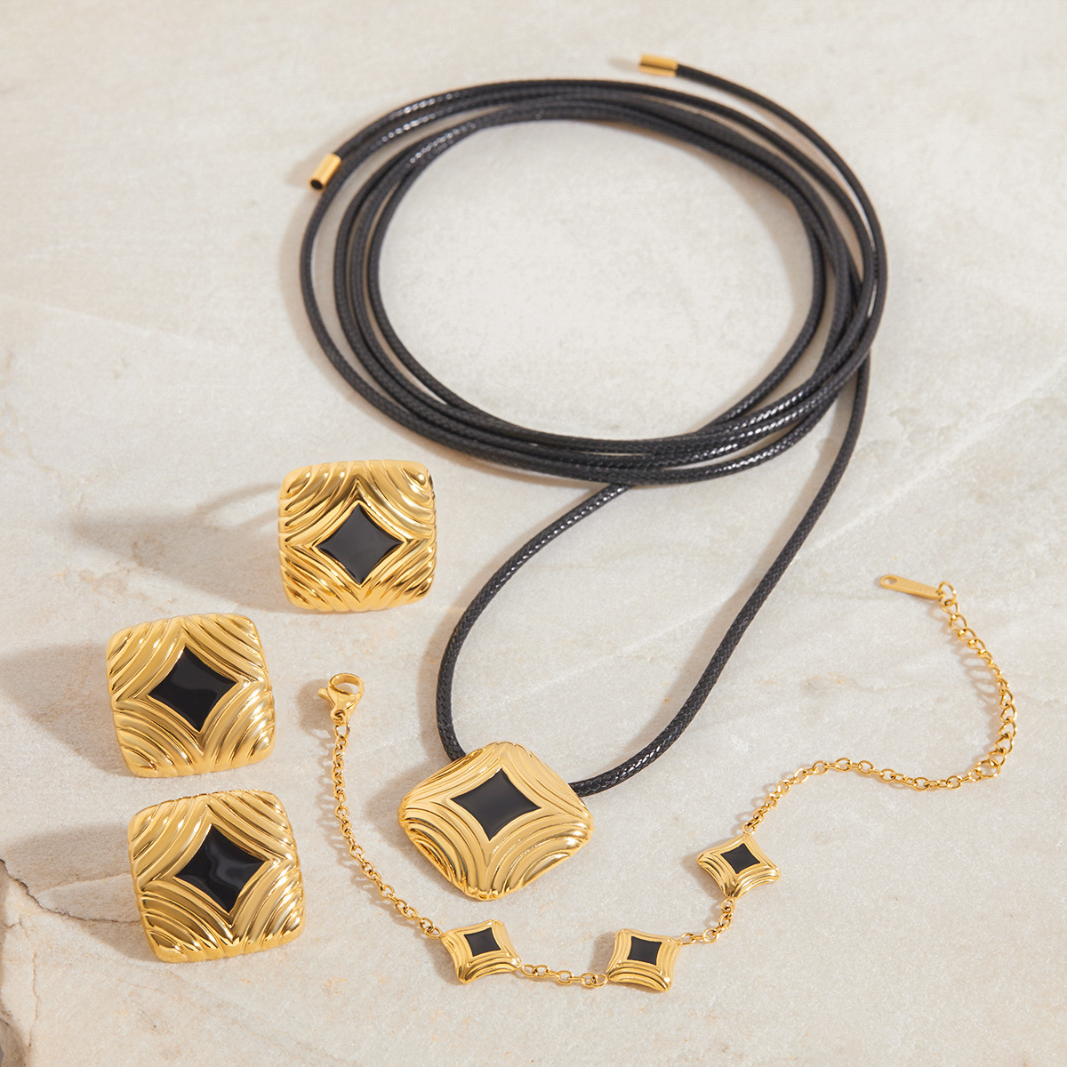 Emaille Edelstahl Schmuck Set, 304 Edelstahl, plattiert, verschiedene Stile für Wahl & für Frau, goldfarben, verkauft von PC