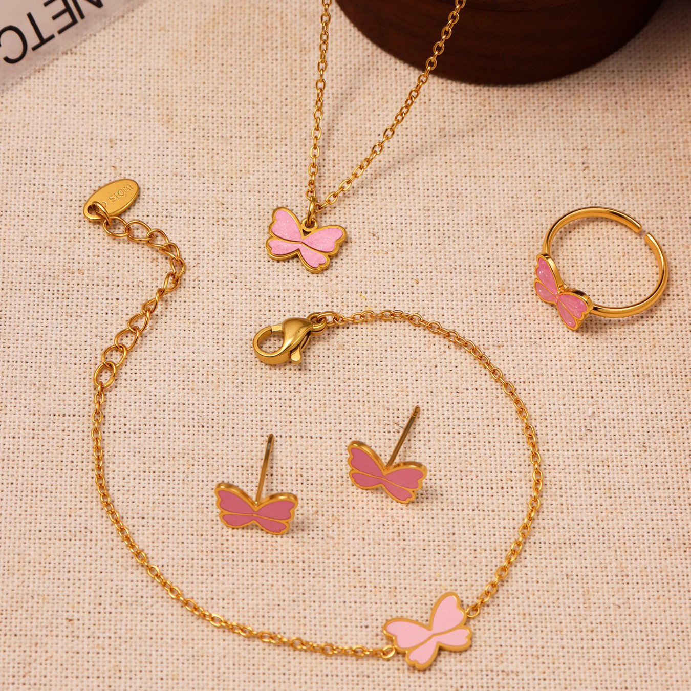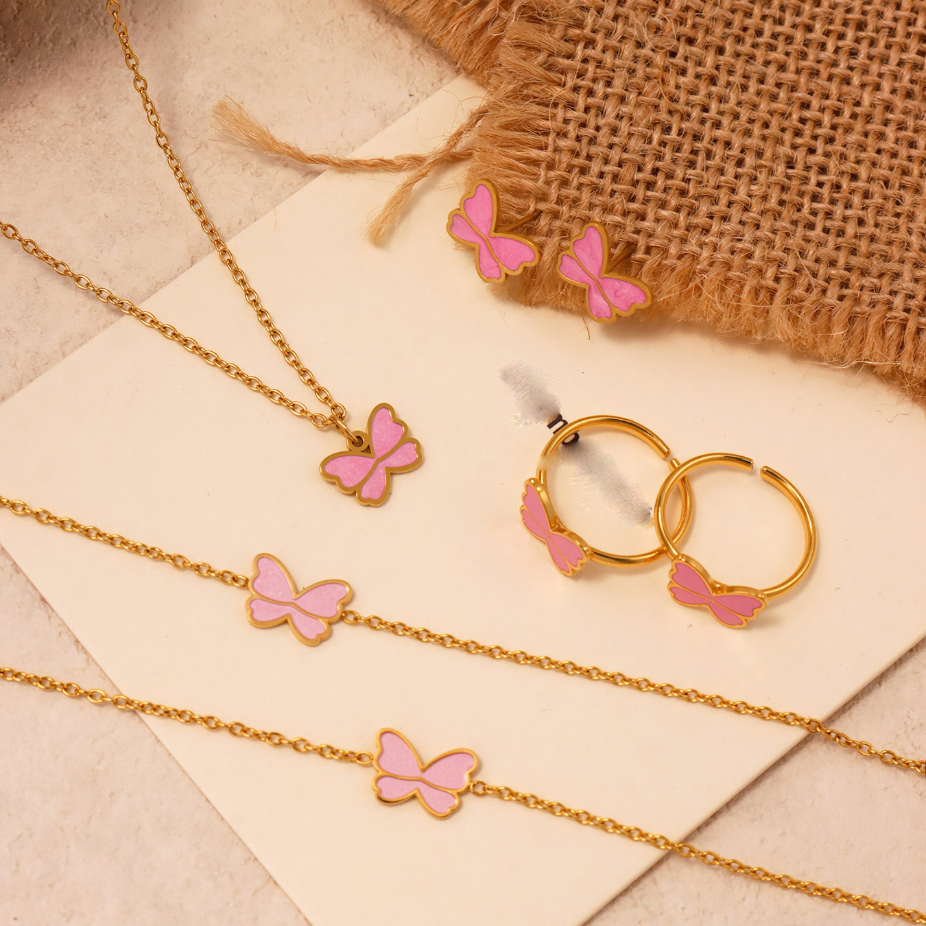 Emaille Edelstahl Schmuck Set, 304 Edelstahl, Schmetterling, plattiert, Mädchen & verschiedene Stile für Wahl, goldfarben, verkauft von PC