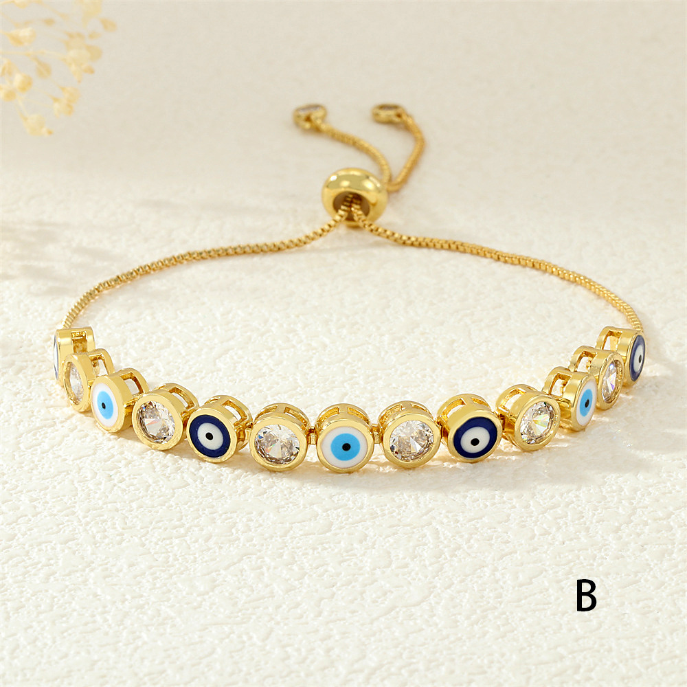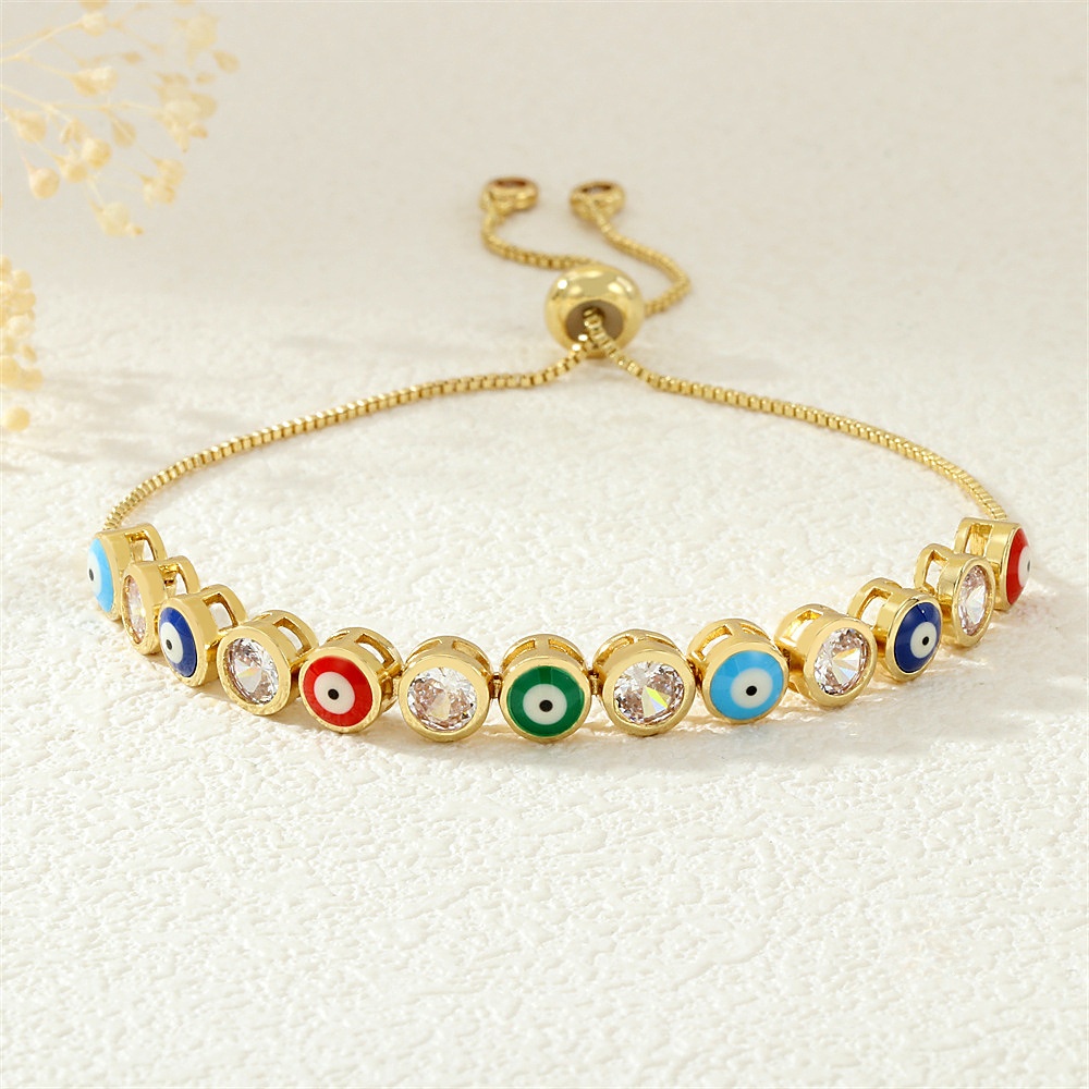 Evil Eye Schmuck Armband, Messing, mit kubischer Zirkonia, goldfarben plattiert, Einstellbar & Modeschmuck & für Frau & Emaille, keine, frei von Nickel, Blei & Kadmium, 6mm, Länge ca. 16-22 cm, verkauft von PC