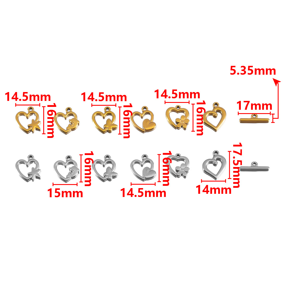 1:Golden - Butterfly2:Golden - Star3:Golden - Flower4:Gold - Asymmetrical heart5:Golden - Heart6:Golden - Dolphin7:Steel color - Butterfly8:Steel color - star9:Steel color - Flower10:Steel color - Asymmetrical heart11:Steel color - heart12:Steel color - Dolphin