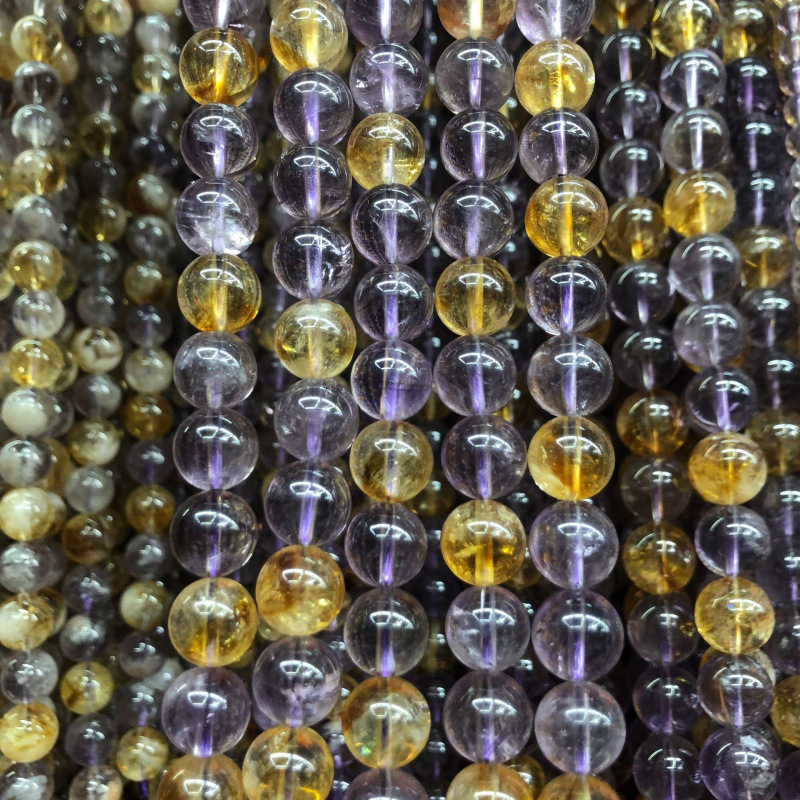 Gelbquarz Perlen Perle, mit Amethyst, rund, DIY & verschiedene Größen vorhanden, keine, verkauft von Strang