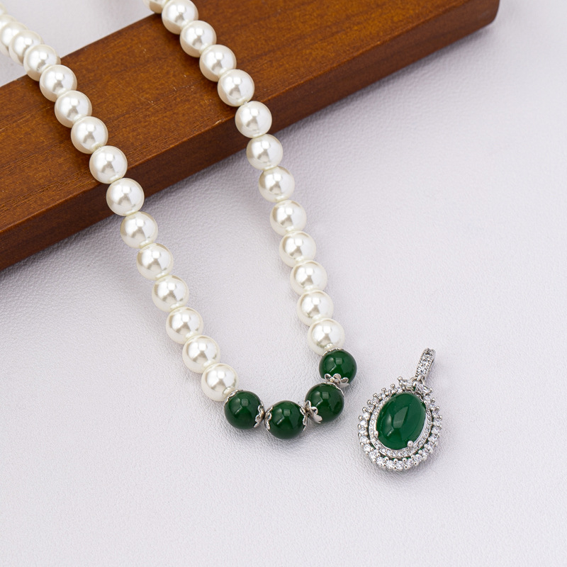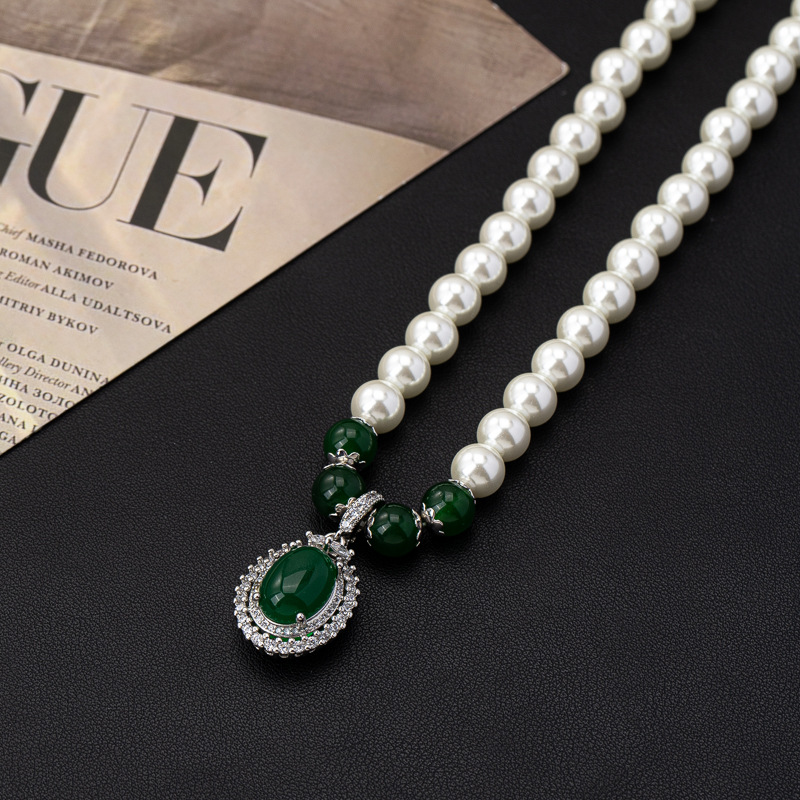 Glasperlen Halskette, mit Grüner Achat, verschiedene Größen vorhanden & Micro pave Zirkonia & für Frau, verkauft von PC