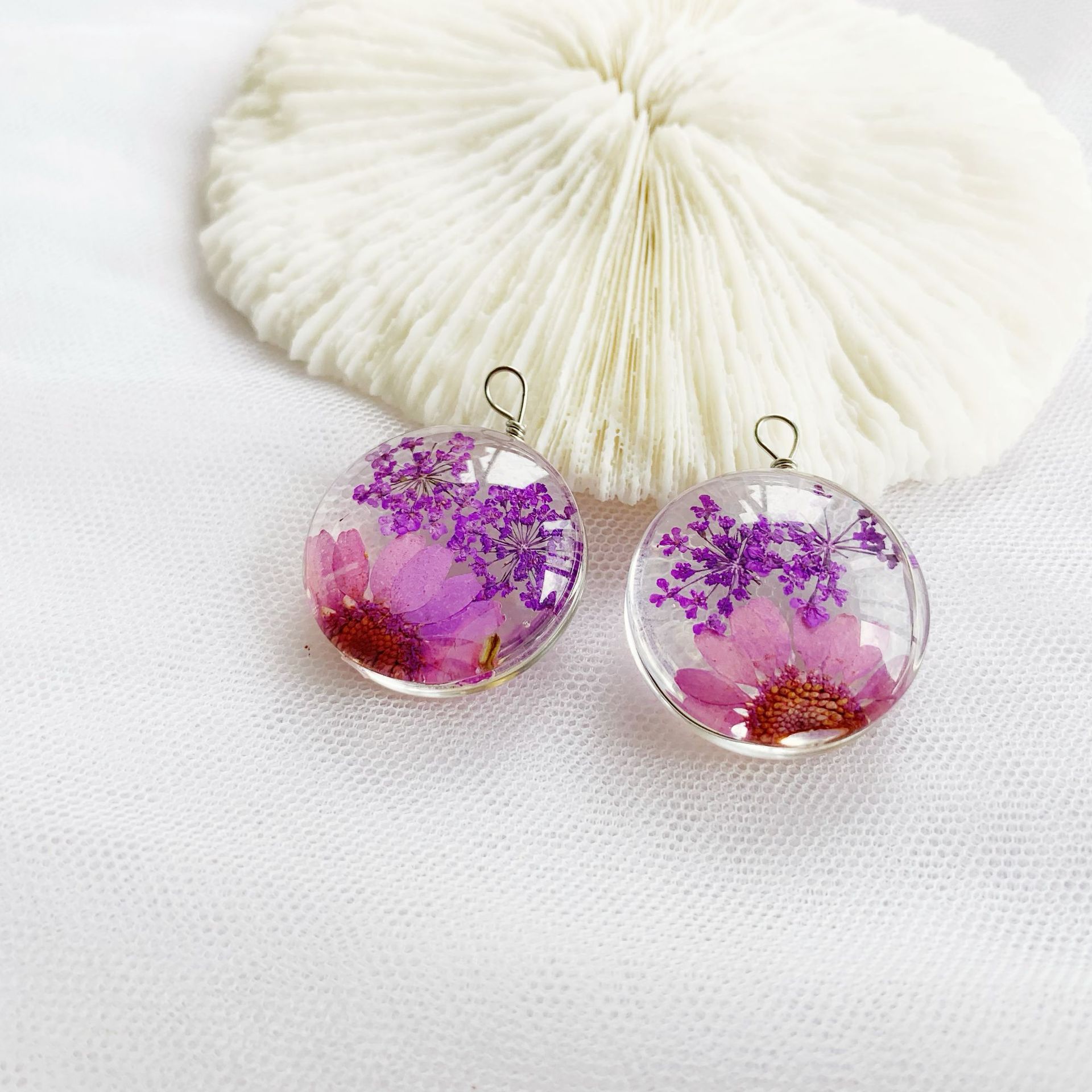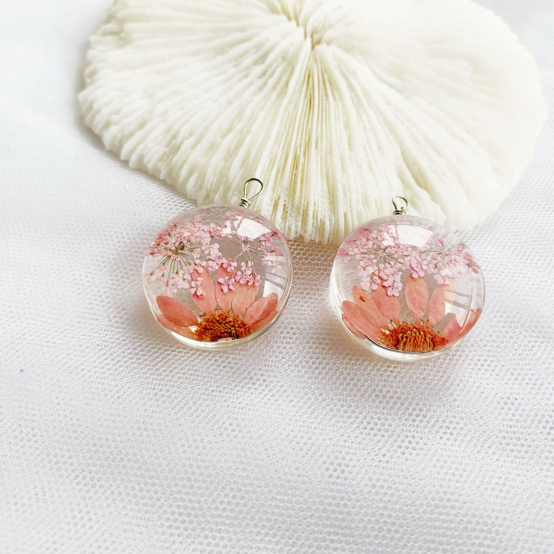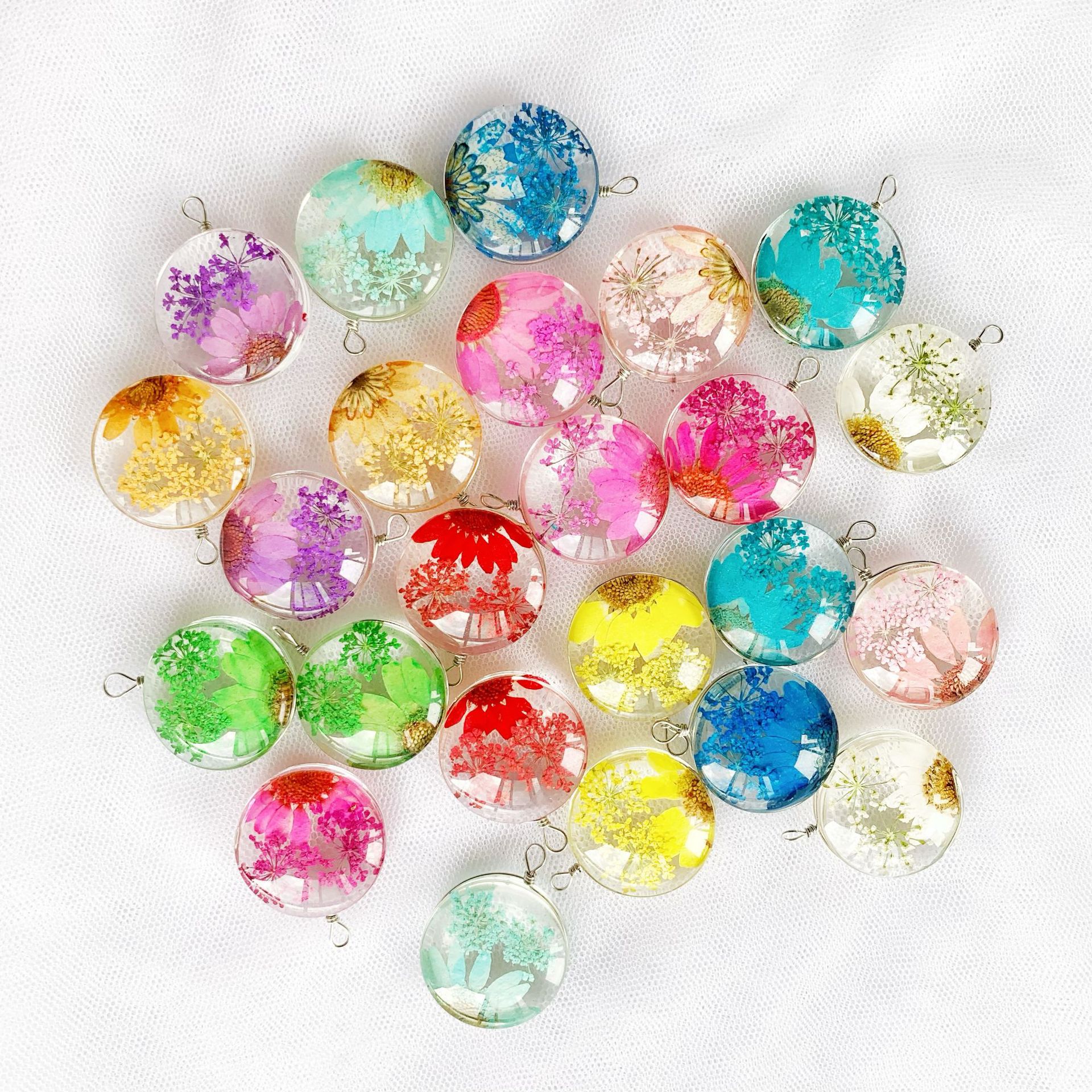 Glassturz Anhänger, Glas, mit Getrocknete Blumen, rund, Epoxidharzklebstoff, DIY, keine, 16mm, verkauft von PC