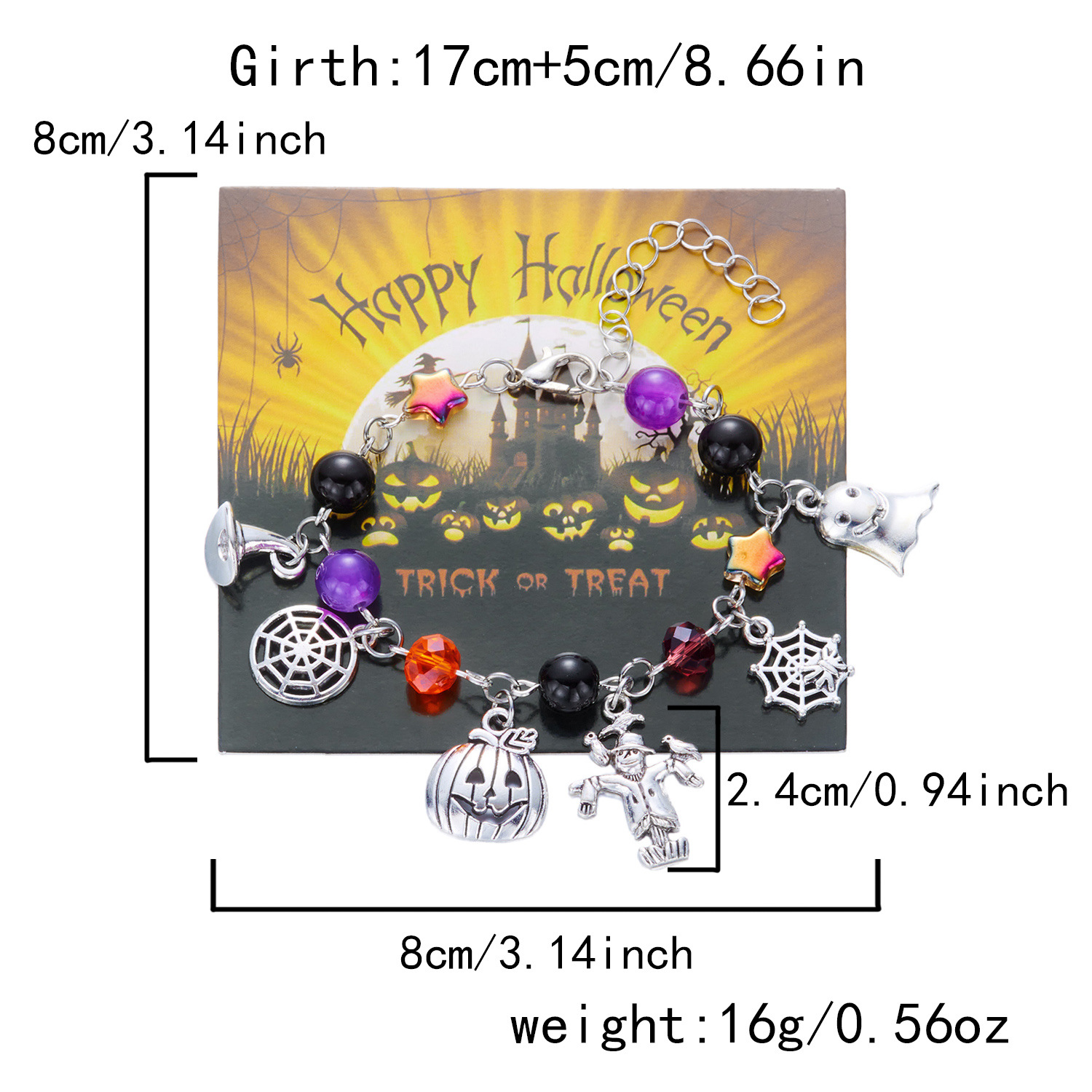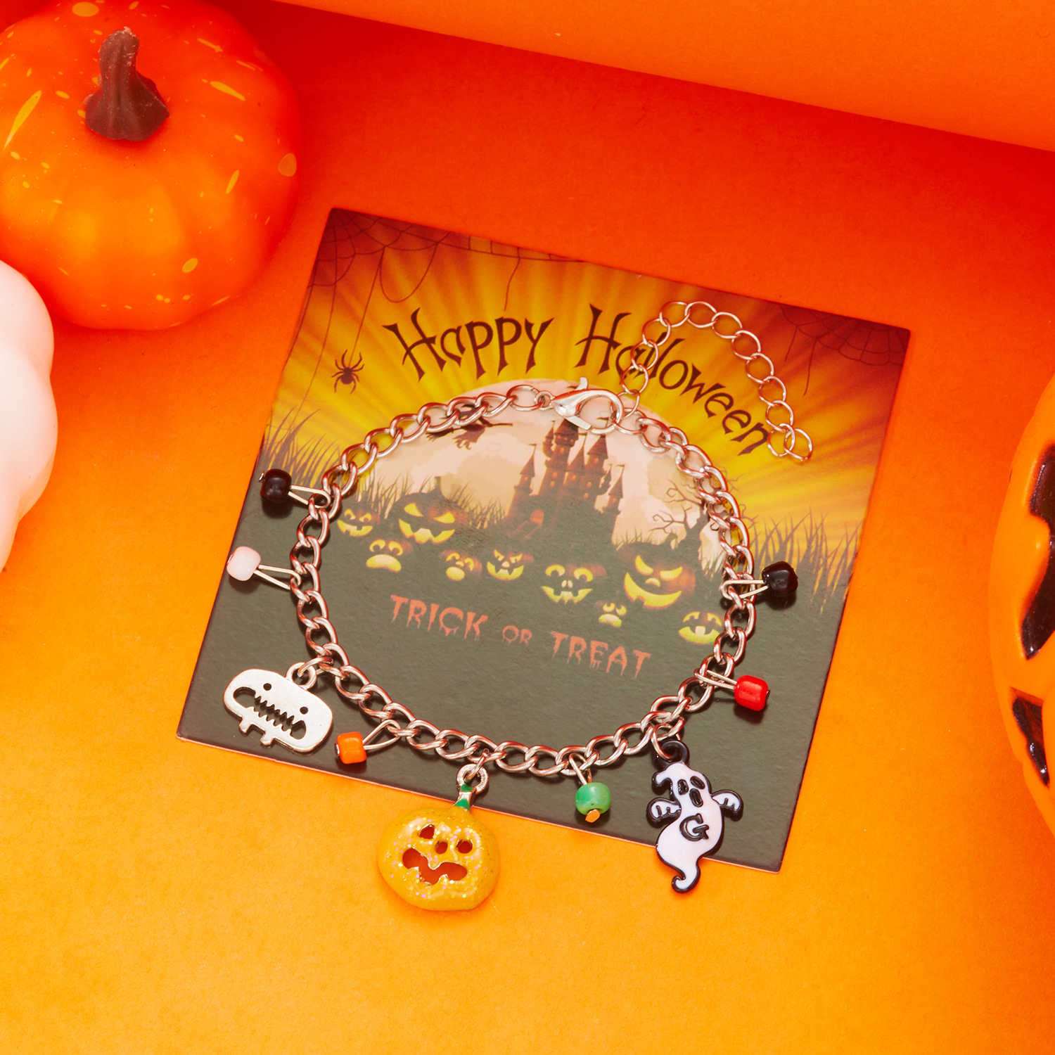1:Pumpkin Scarecrow chain bracelet2:Ghost Spider web chain bracelet3:Pumpkin Ghost chain bracelet