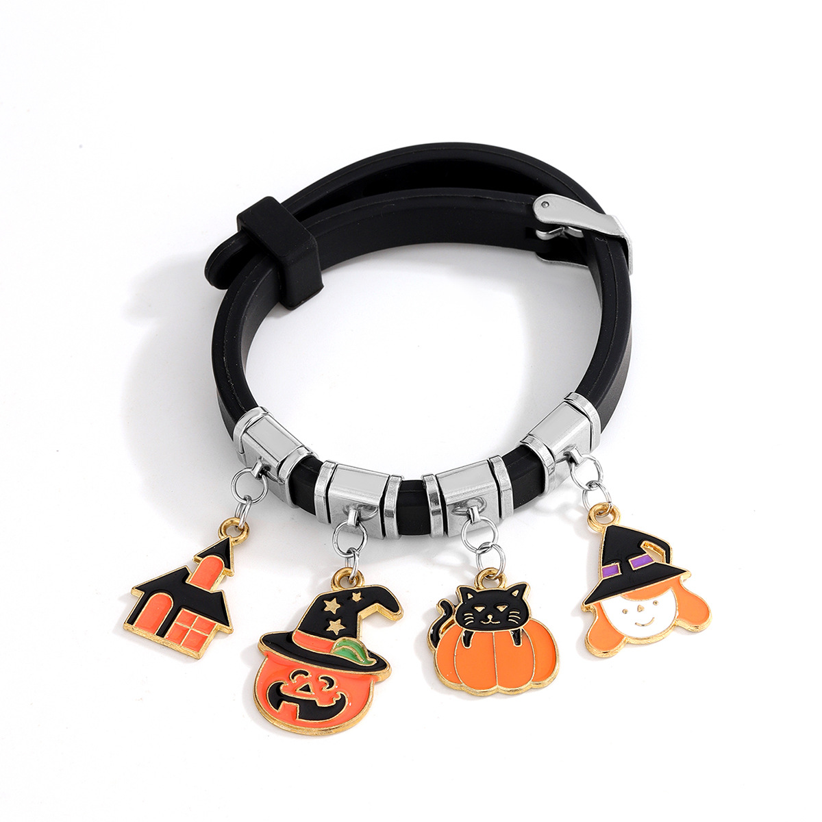 Halloween Armband, 304 Edelstahl, mit Silikon, goldfarben plattiert, Design für Halloween & Emaille, keine, 120x100x10mm, Länge 18 cm, verkauft von PC
