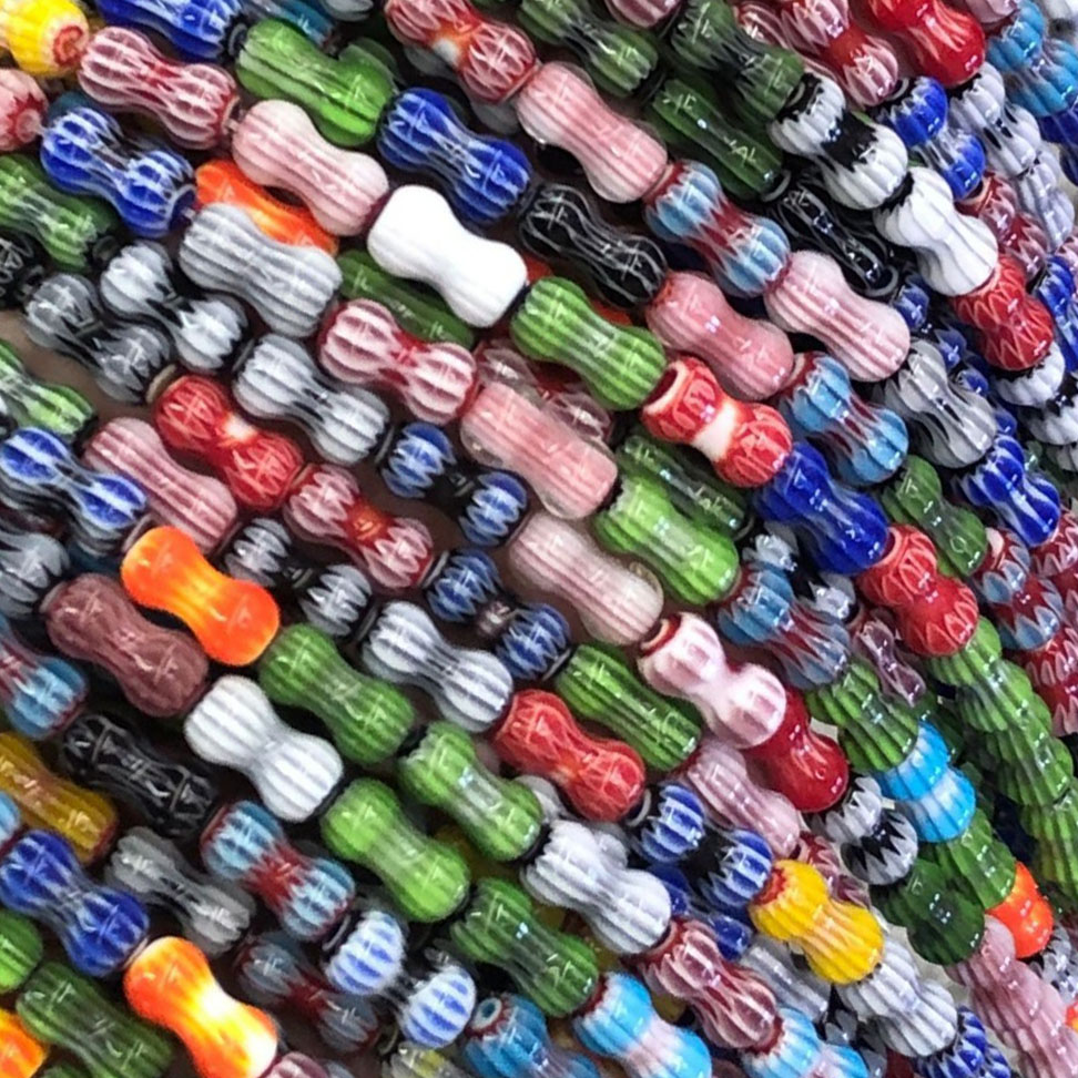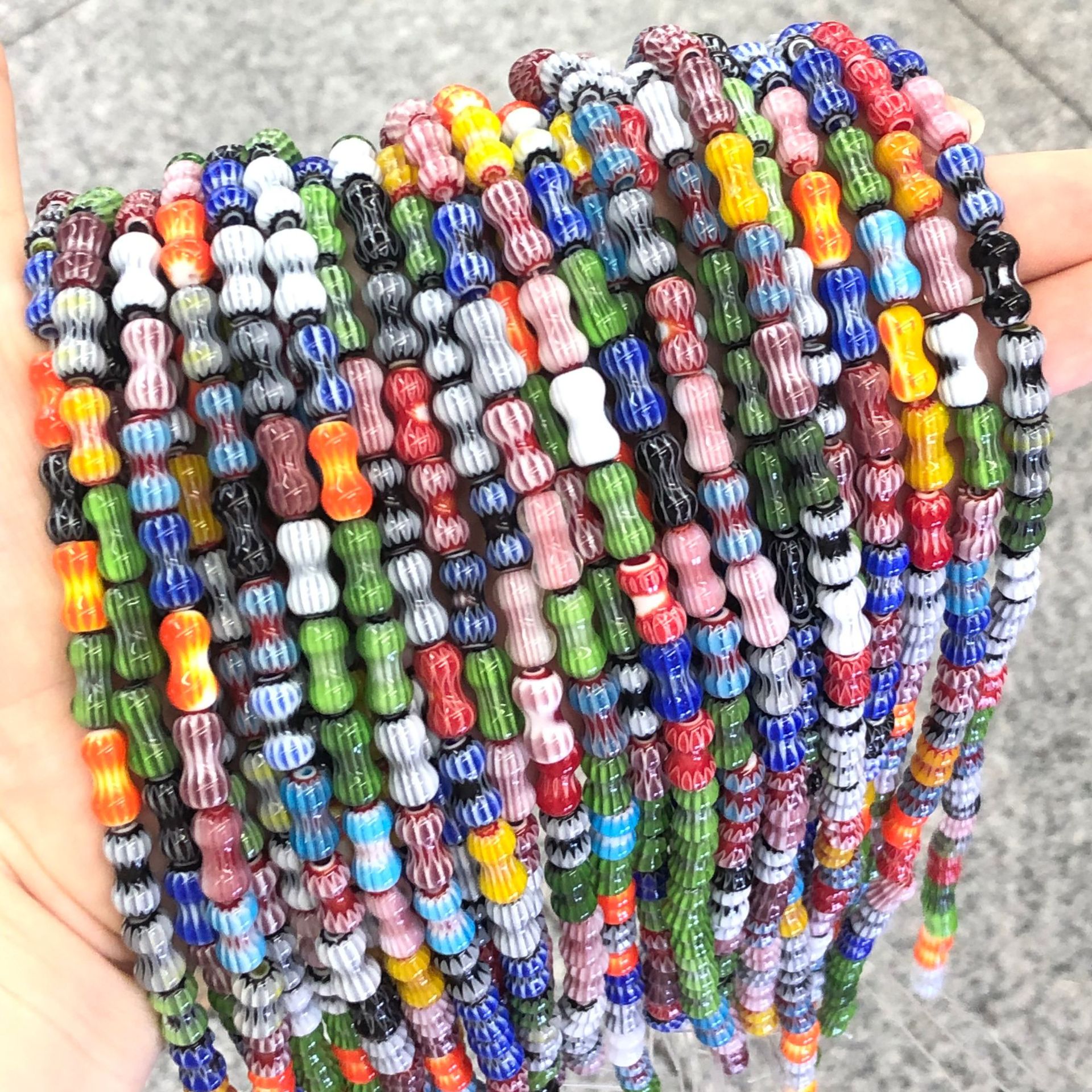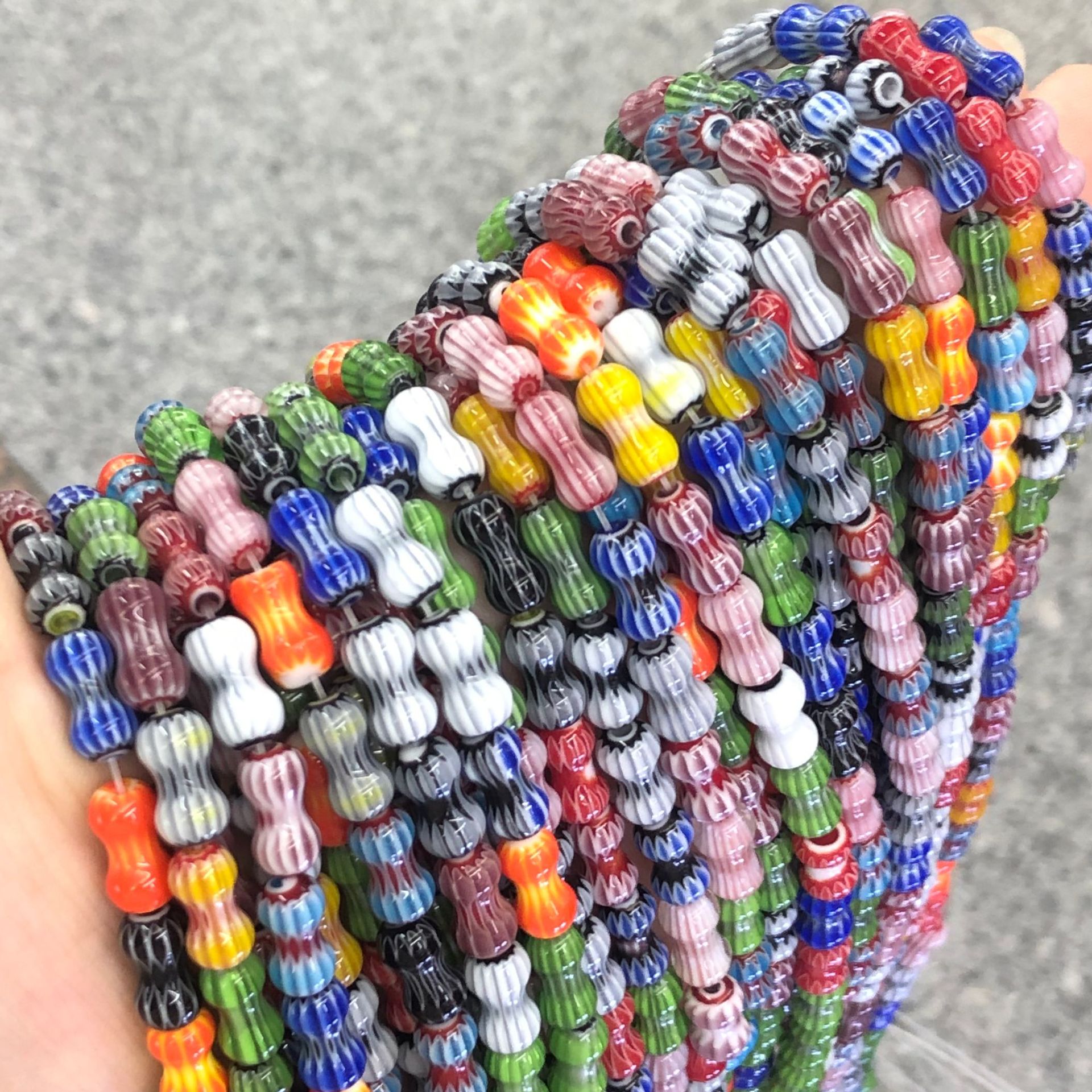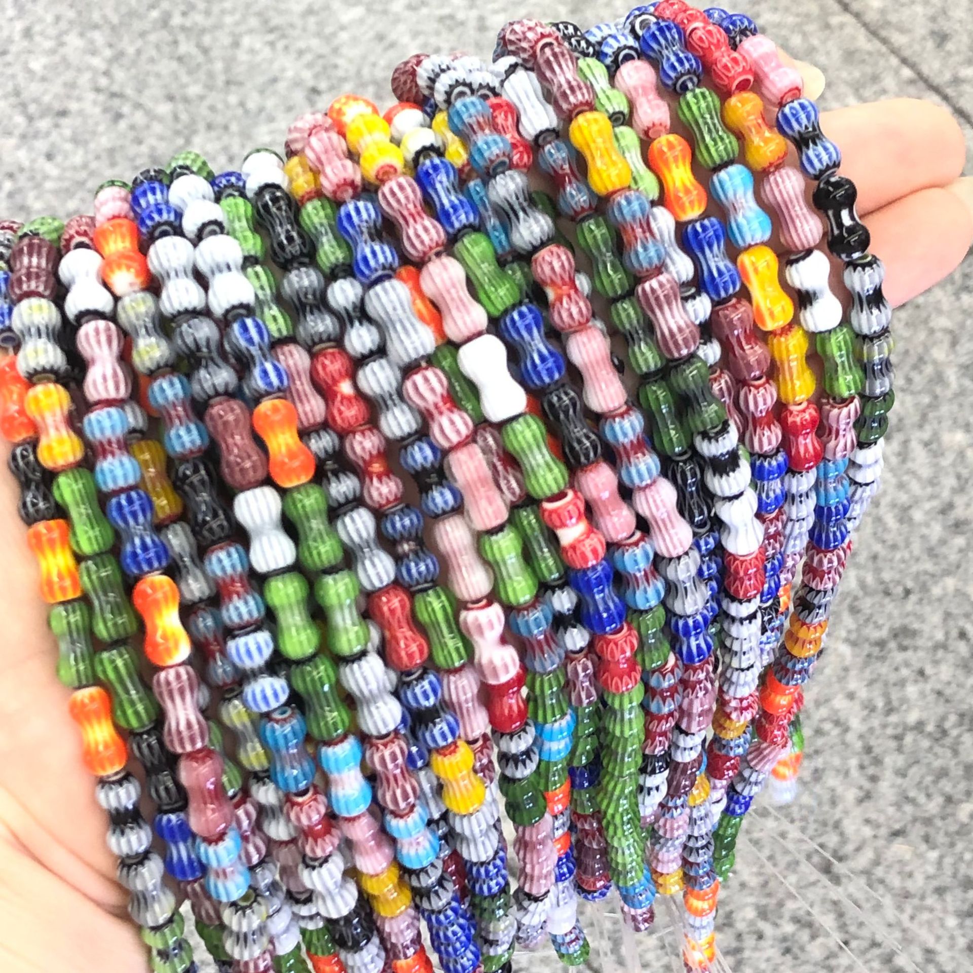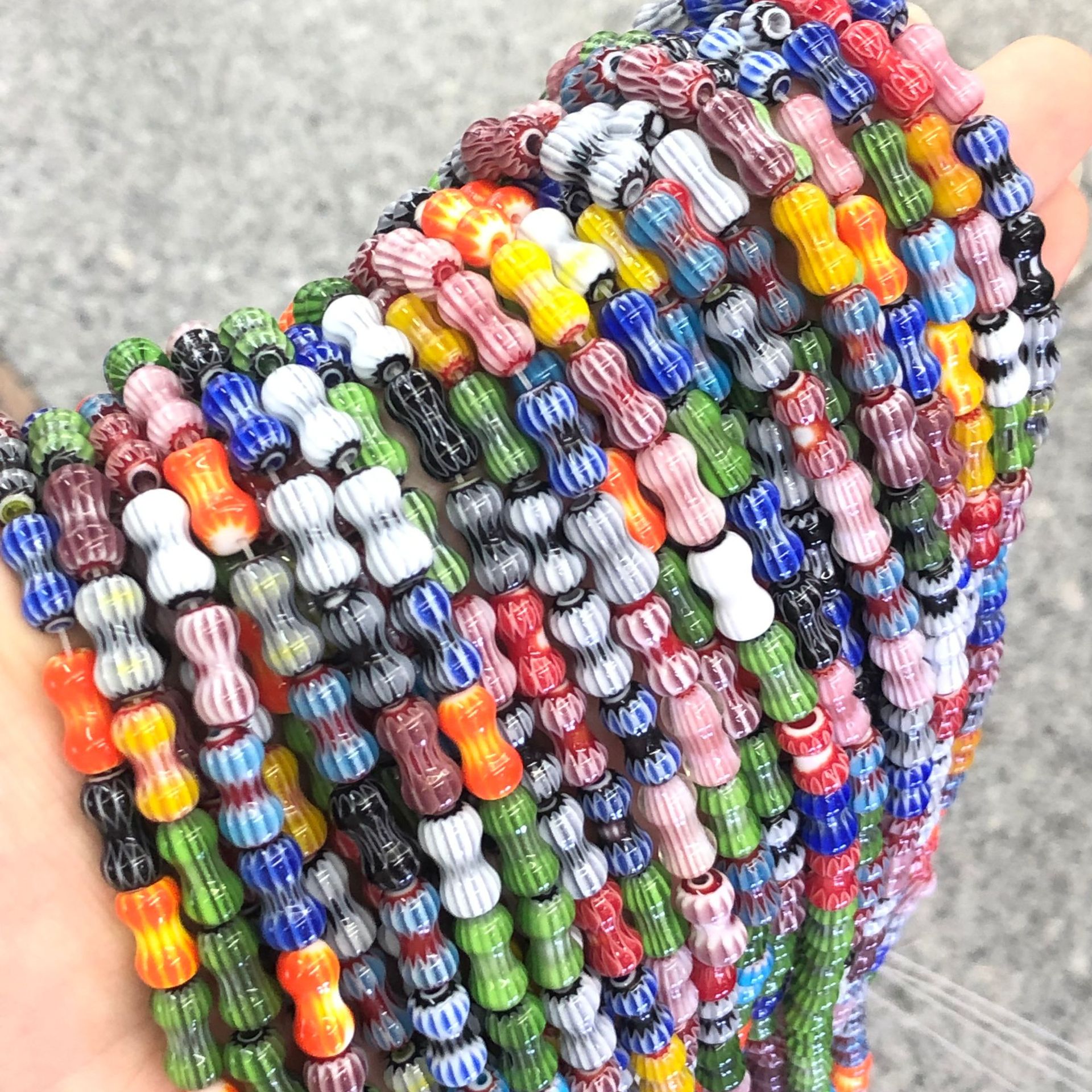 Handgewickelte Perlen, Lampwork, Erdnuss, DIY, gemischte Farben, 6x12mm, verkauft per ca. 38 cm Strang