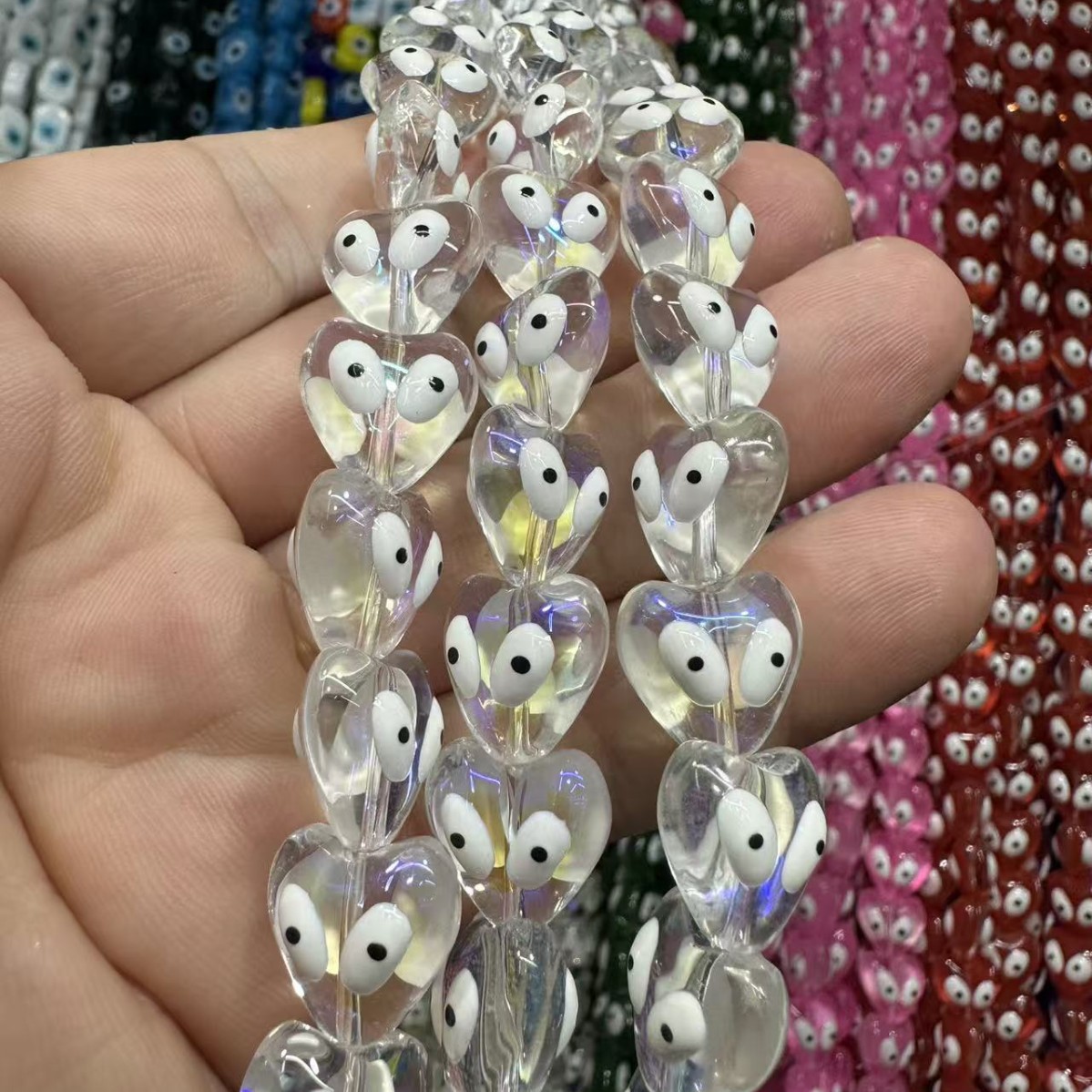 Handgewickelte Perlen, Lampwork, mit Kunststoff, Herz, DIY, keine, 14mm, Länge 38 cm, verkauft von Paar