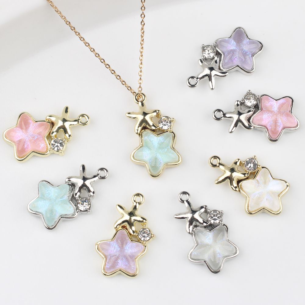 Harz Zinklegierung Anhänger, mit Harz, Stern, plattiert, DIY & Micro pave Zirkonia, keine, 21x14mm, 100PCs/Tasche, verkauft von Tasche