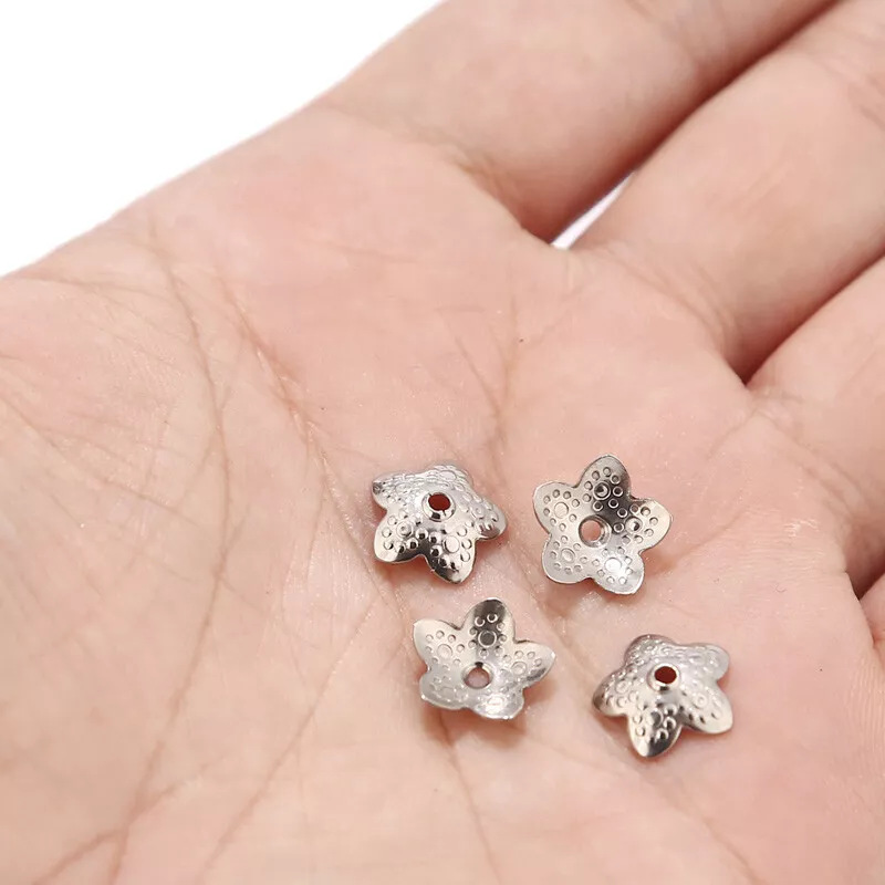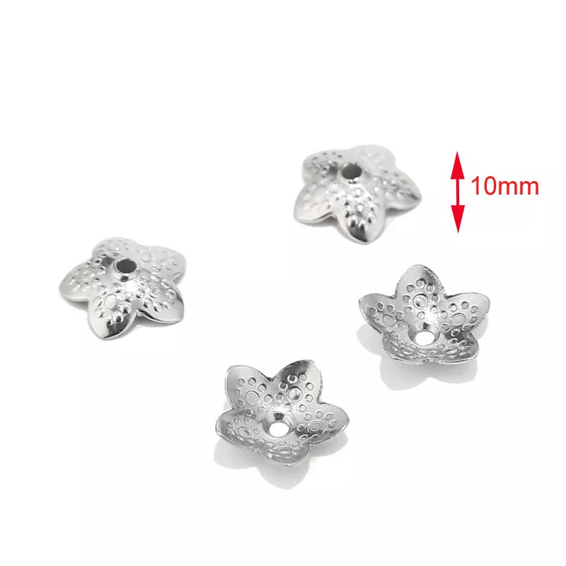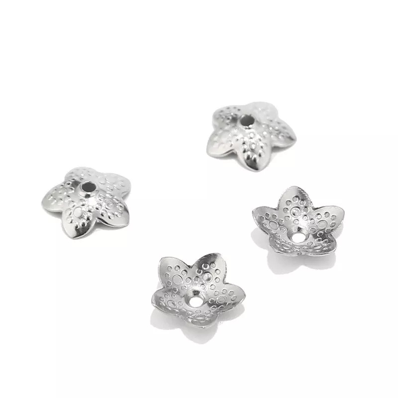 Edelstahl Perle Kappe, 304 Edelstahl, Blume, silberfarben plattiert, DIY, Silberfarbe, 100PCs/Tasche, verkauft von Tasche