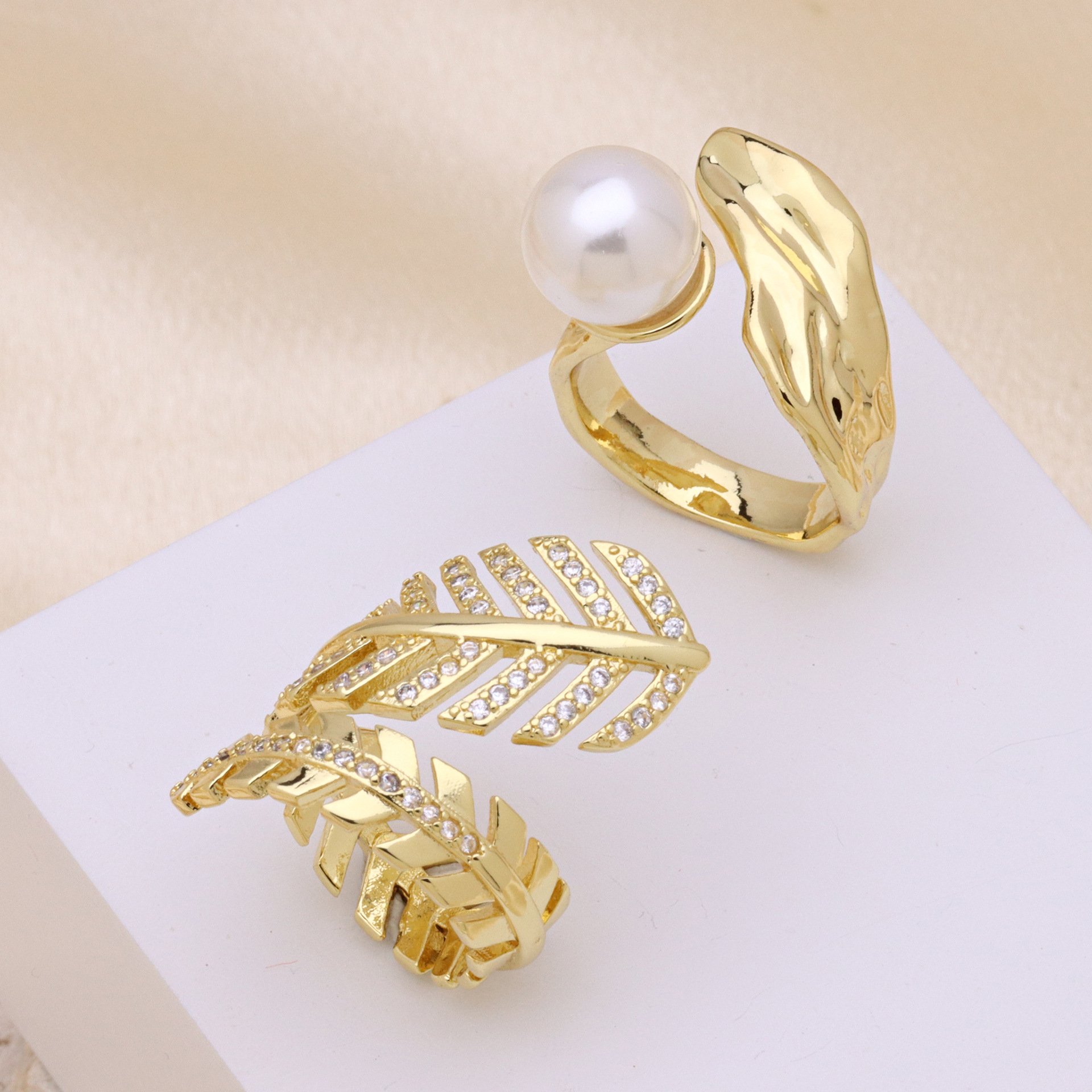 Kubische Zro2-Micro Pave Messingring, Messing, mit Kunststoff Perlen, 18K vergoldet, einstellbar & verschiedene Stile für Wahl & für Frau, keine, verkauft von PC