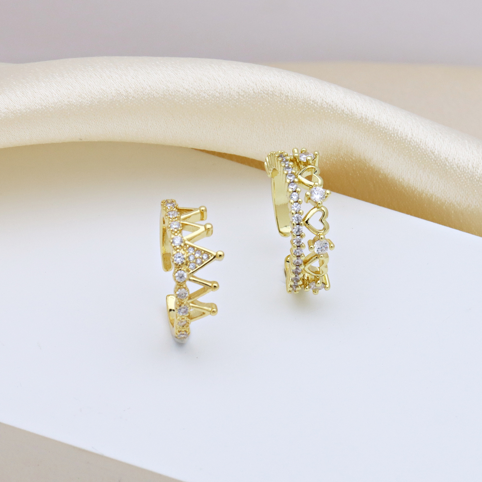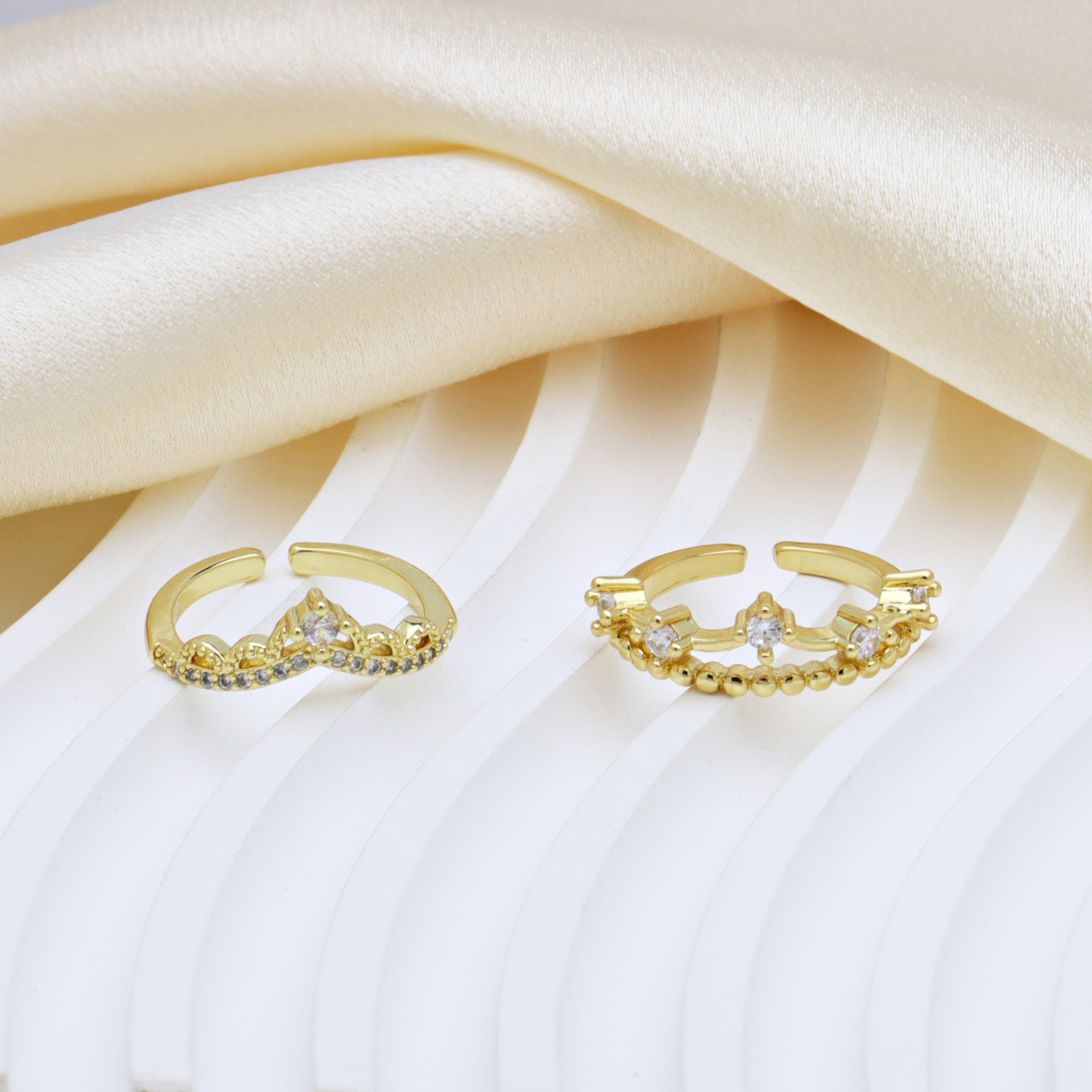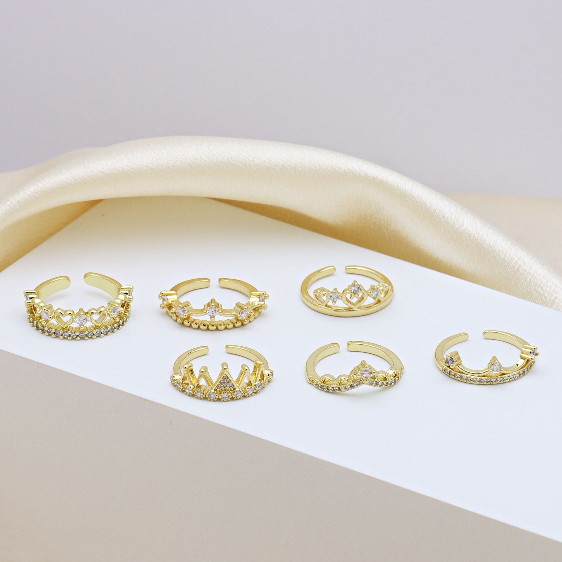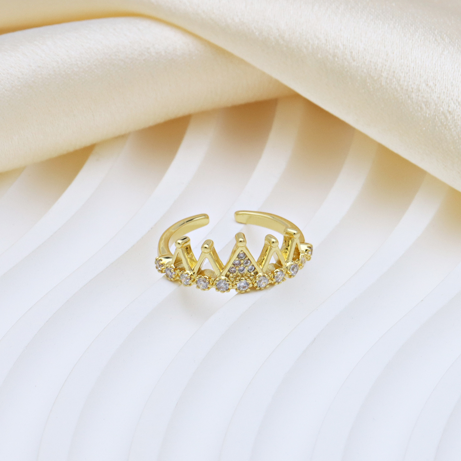 Kubische Zro2-Micro Pave Messingring, Messing, Krone, goldfarben plattiert, einstellbar & verschiedene Stile für Wahl & Micro pave Zirkonia & für Frau, keine, verkauft von PC
