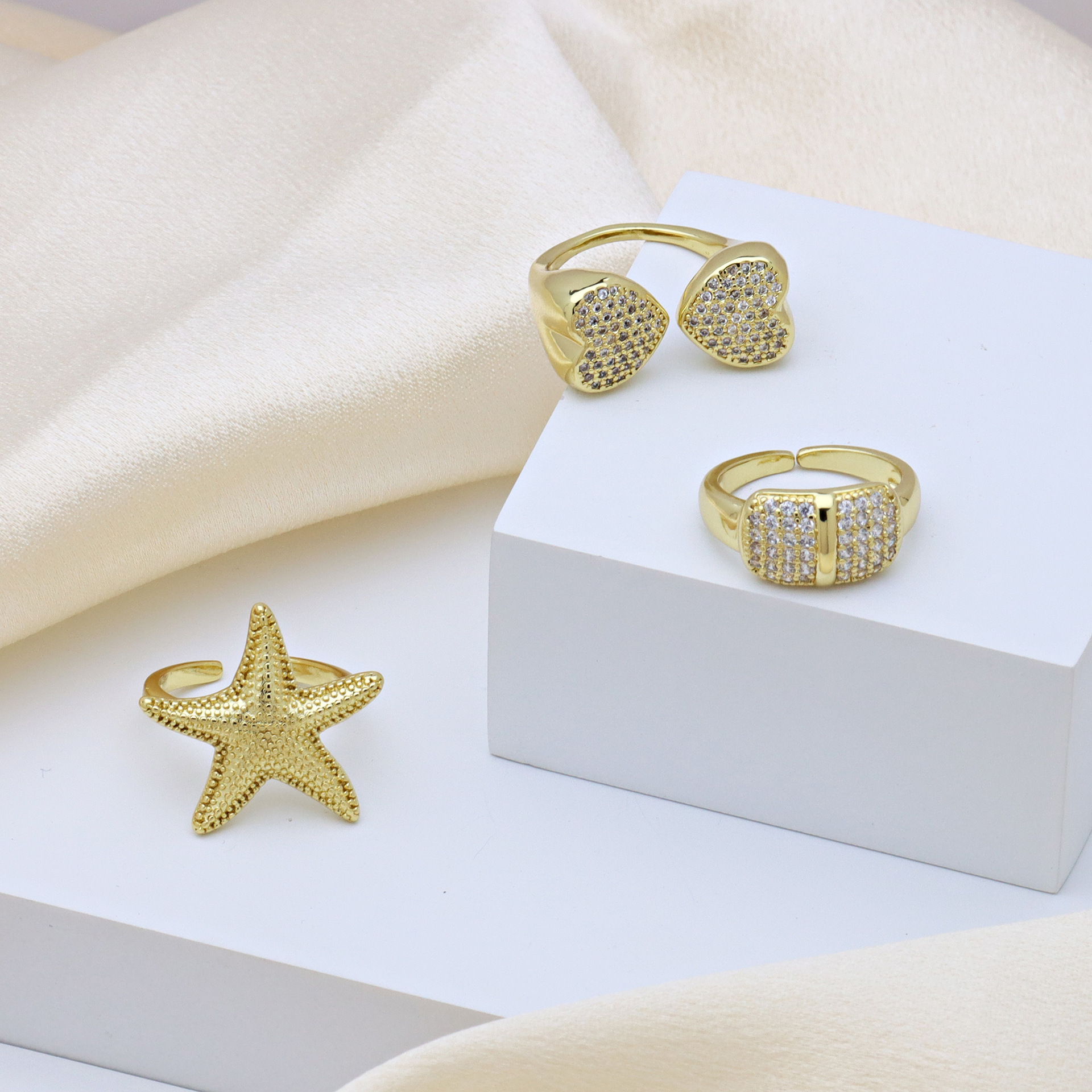Kubische Zro2-Micro Pave Messingring, Messing, goldfarben plattiert, einstellbar & verschiedene Stile für Wahl & Micro pave Zirkonia & für Frau, keine, verkauft von PC