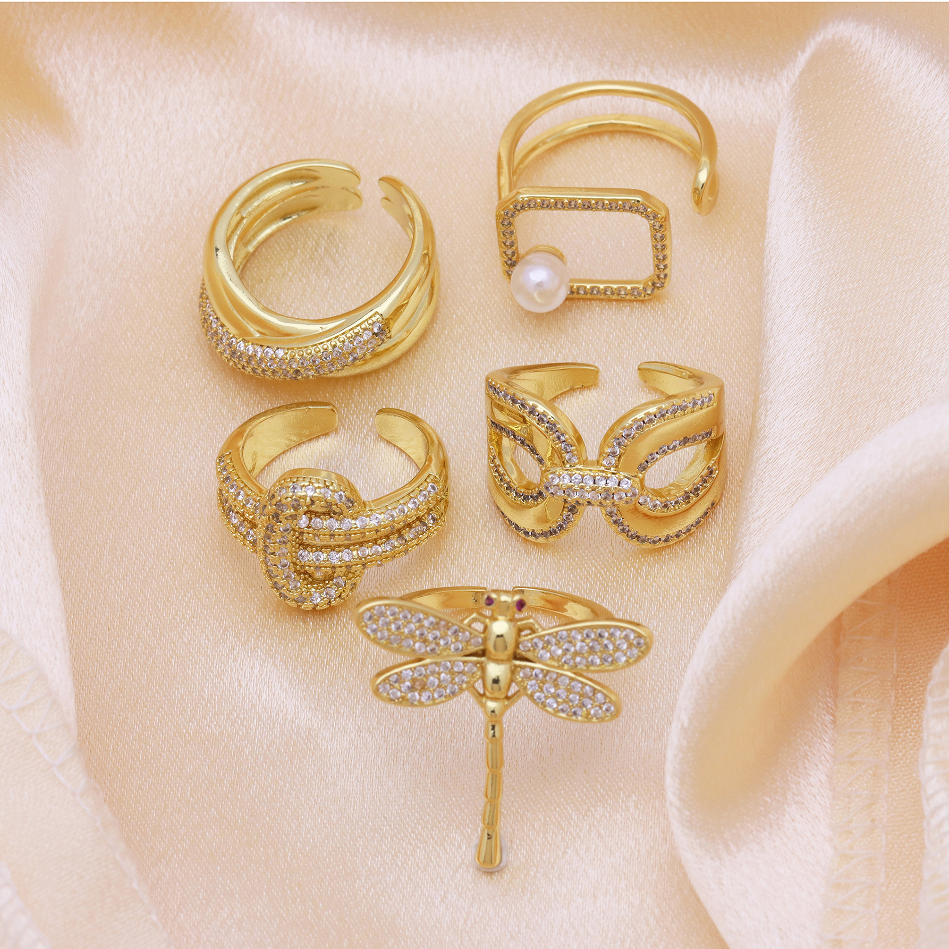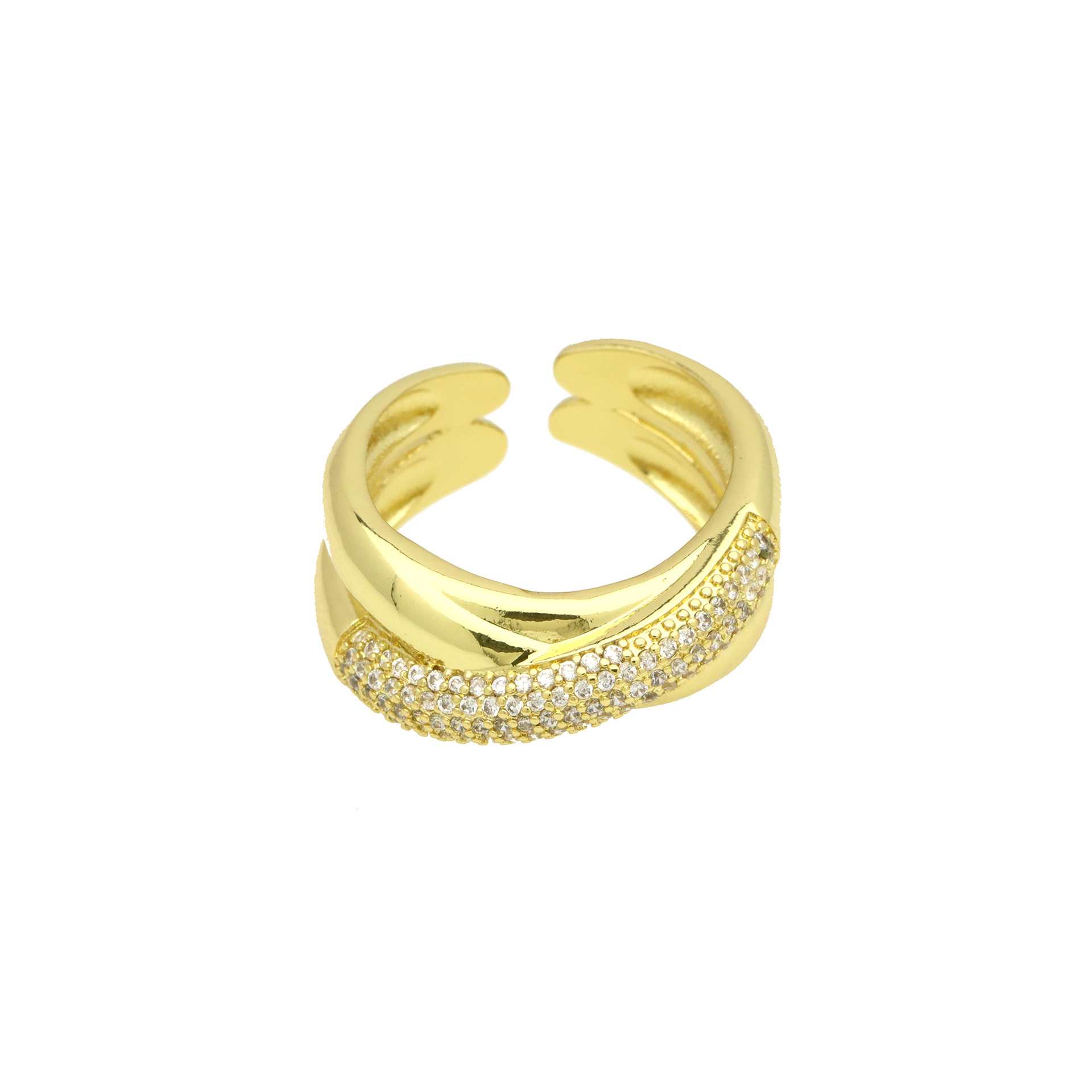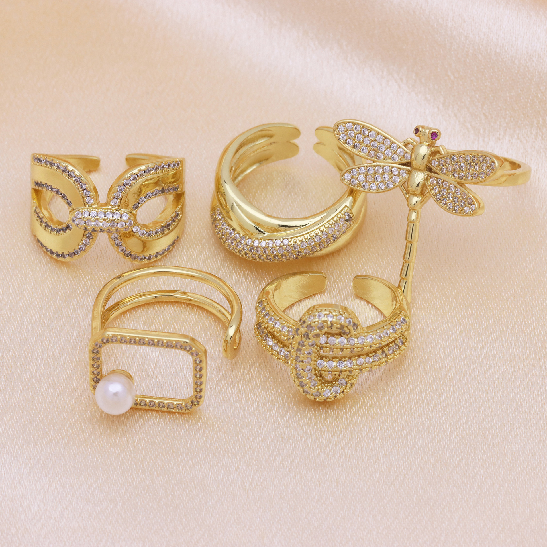 Kubische Zro2-Micro Pave Messingring, Messing, goldfarben plattiert, einstellbar & verschiedene Stile für Wahl & Micro pave Zirkonia & für Frau, keine, verkauft von PC
