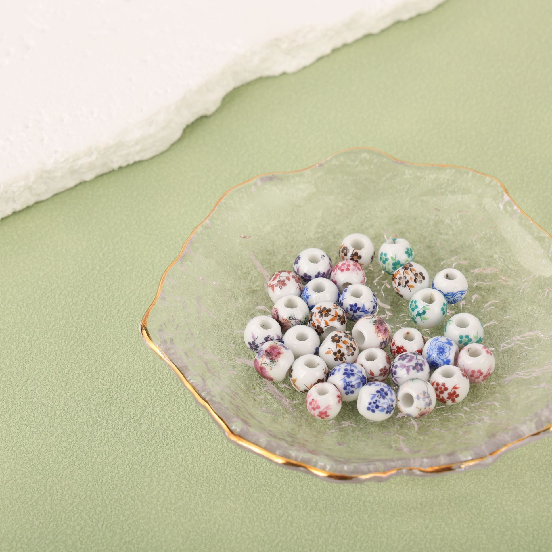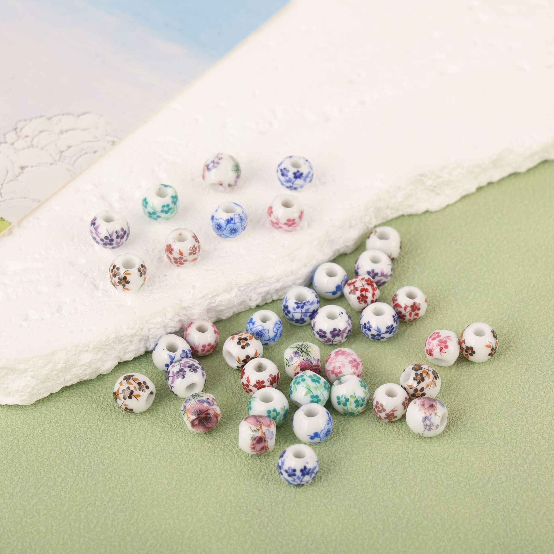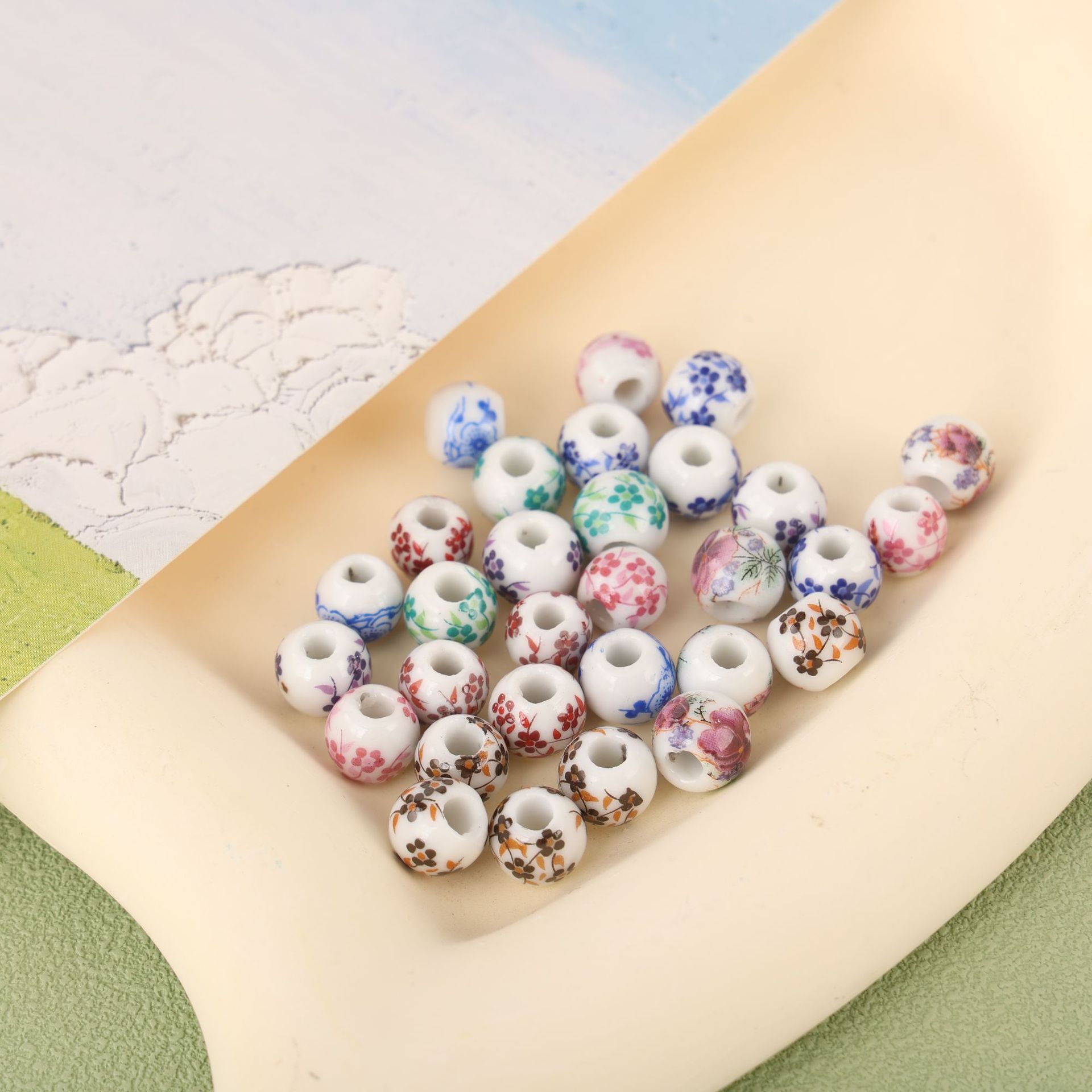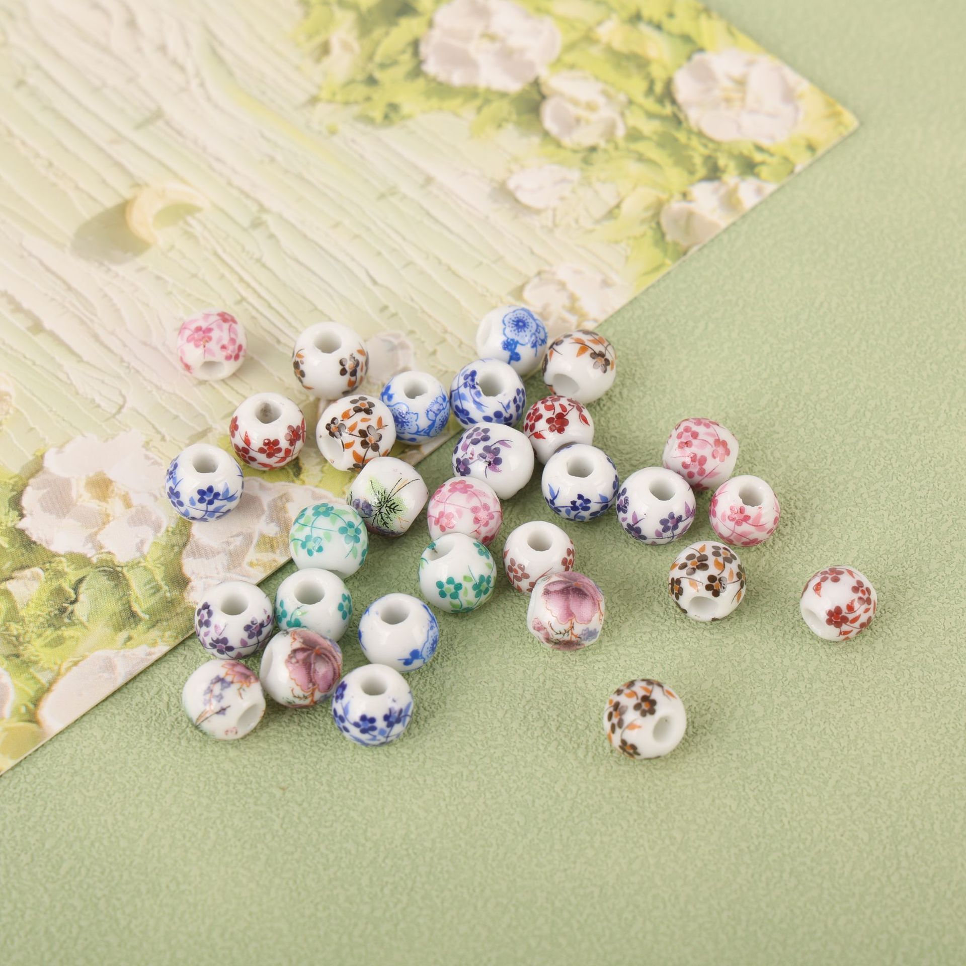 Kunstdruck Porzellan Perlen, DIY & mit Blumenmuster, keine, 8mm, 50PCs/Tasche, verkauft von Tasche