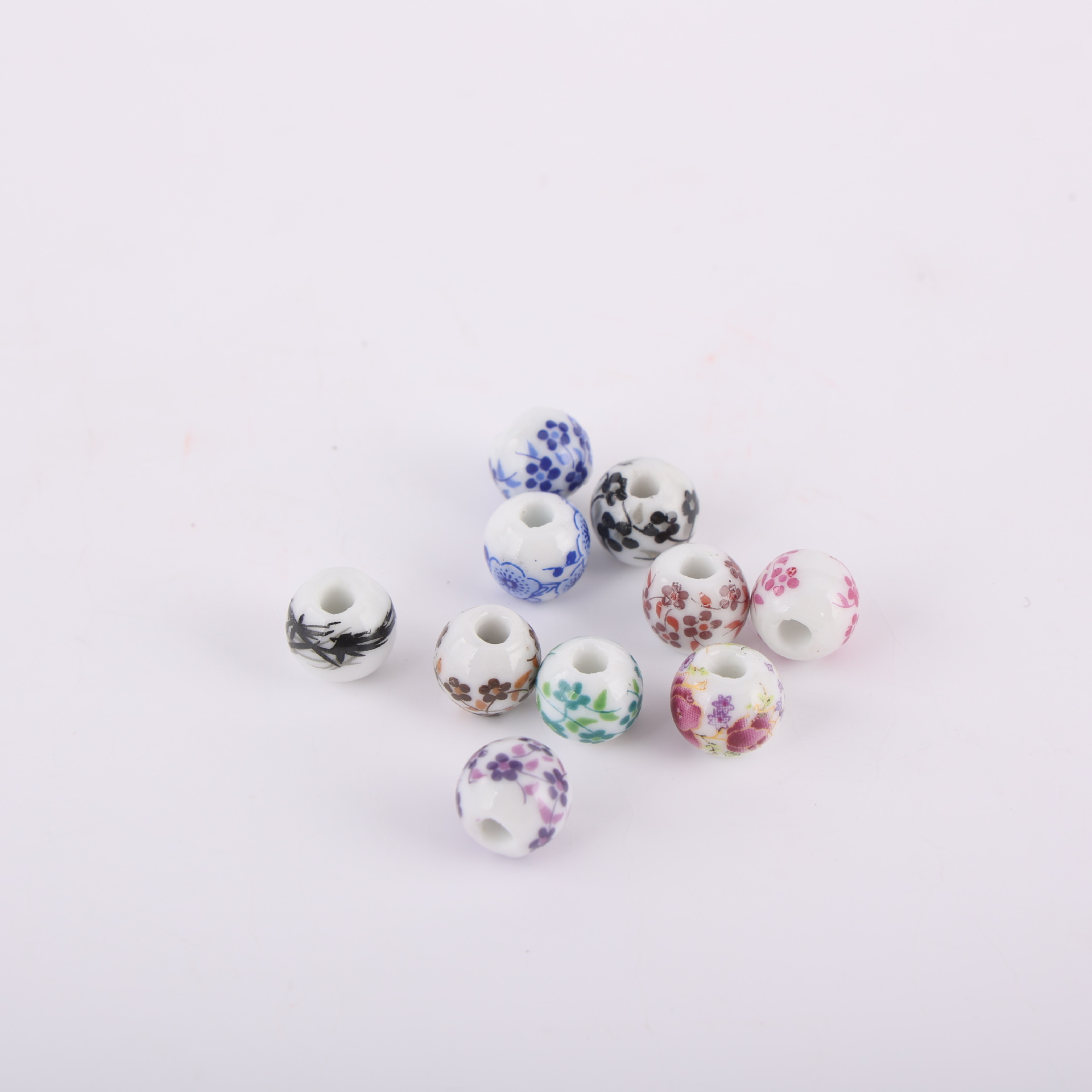Kunstdruck Porzellan Perlen, DIY & mit Blumenmuster & Aufkleber, keine, 10mm, verkauft von PC