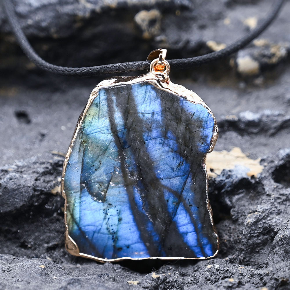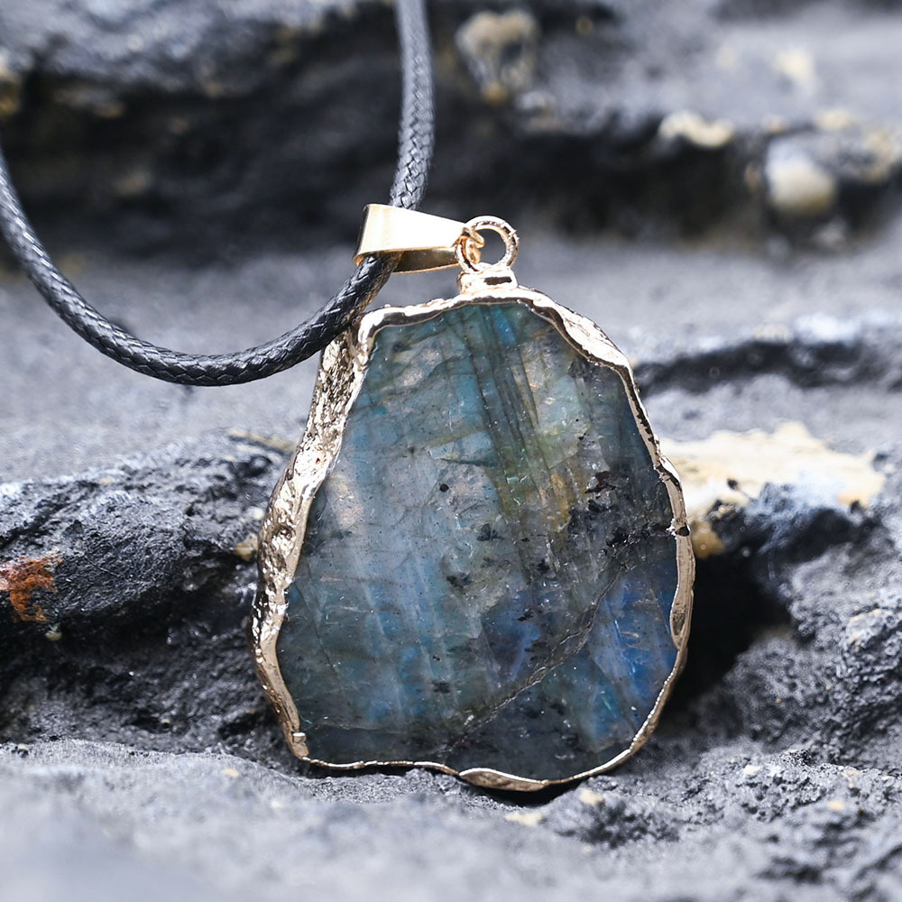 Labradorit Anhänger, mit Zinklegierung, Unregelmäßige, zufällig gesendet & DIY, pendant size 40-70mm, verkauft von PC