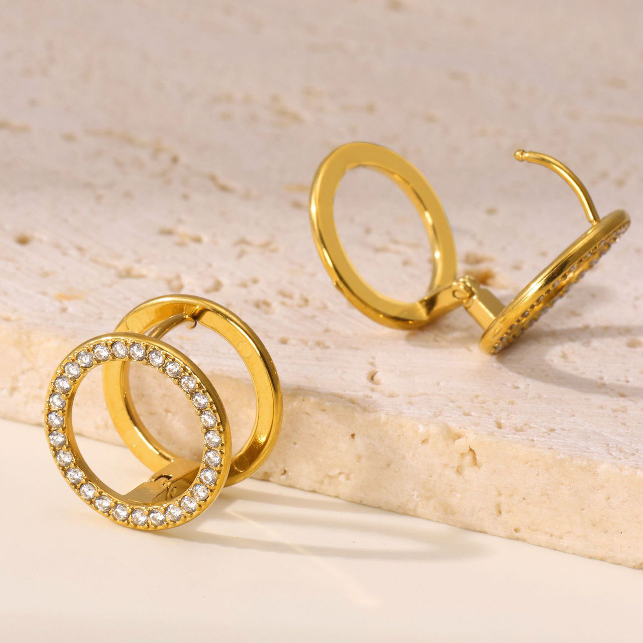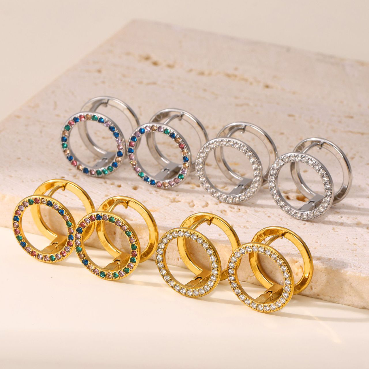 Herren Edelstahl Kreolen, 304 Edelstahl, rund, plattiert, Micro pave Zirkonia & für Frau & hohl, keine, verkauft von Paar