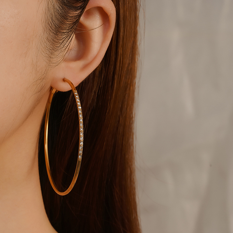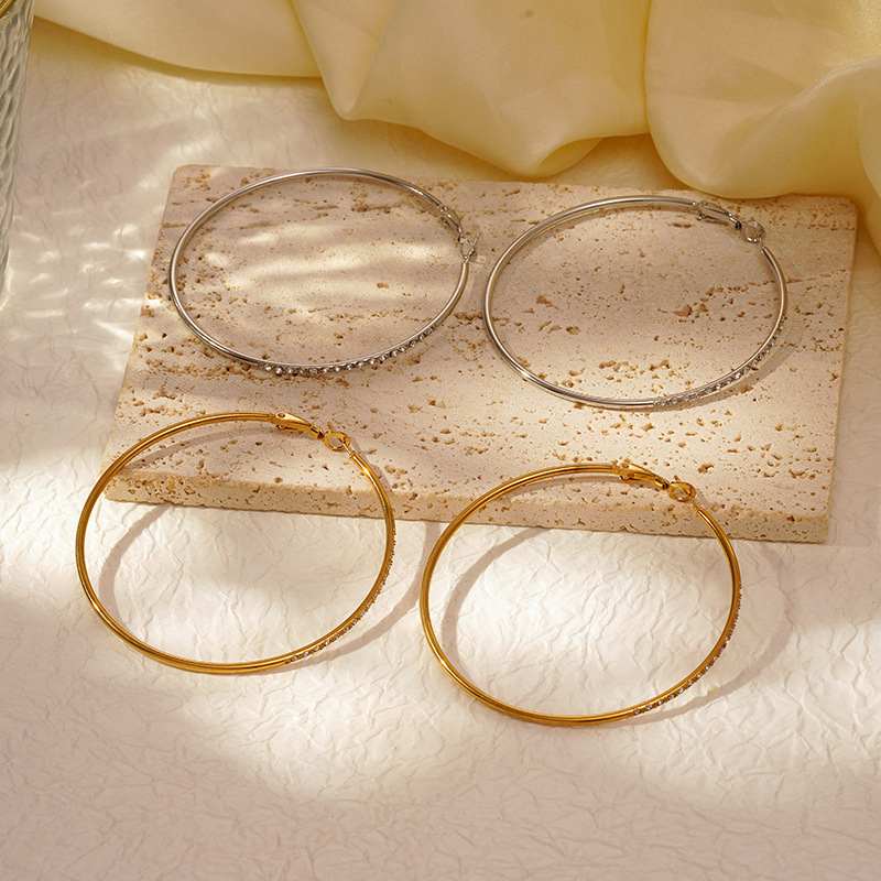 Herren Edelstahl Kreolen, 304 Edelstahl, rund, plattiert, für Frau & mit Strass, keine, verkauft von Paar