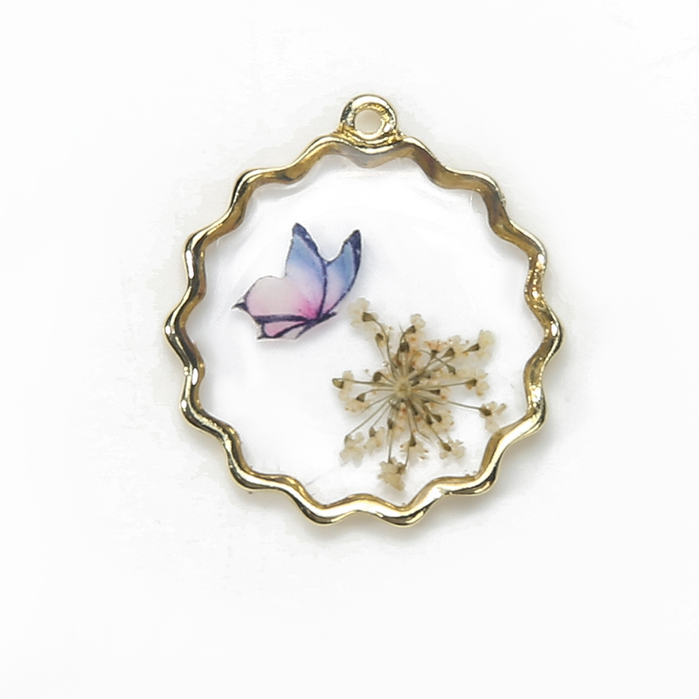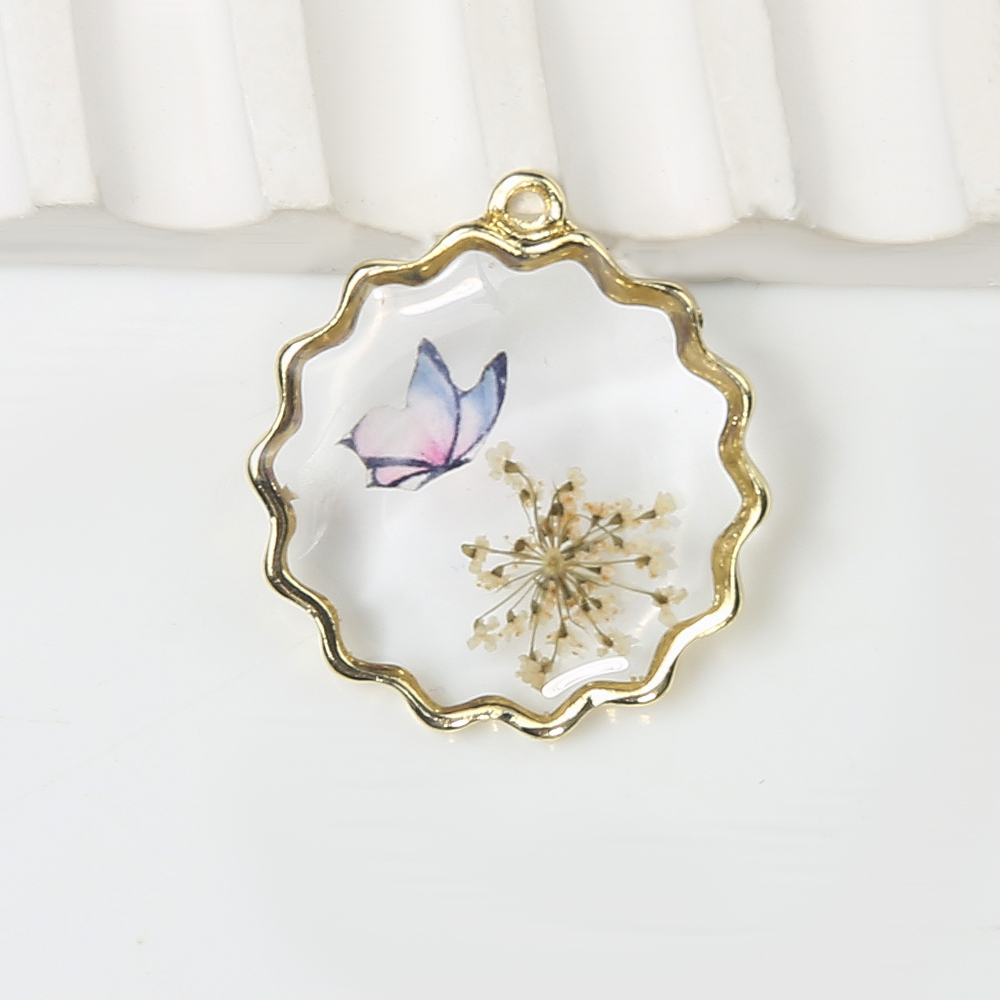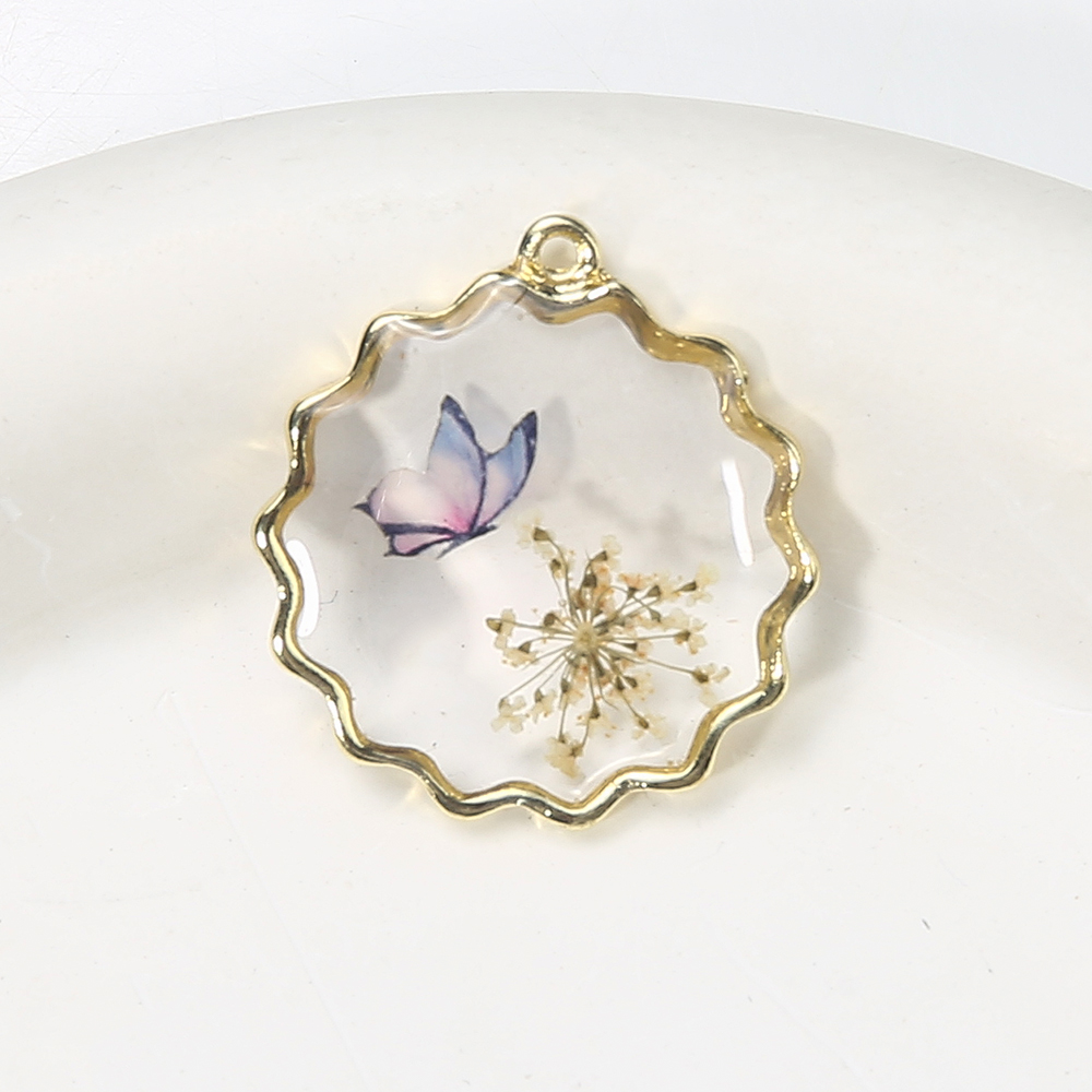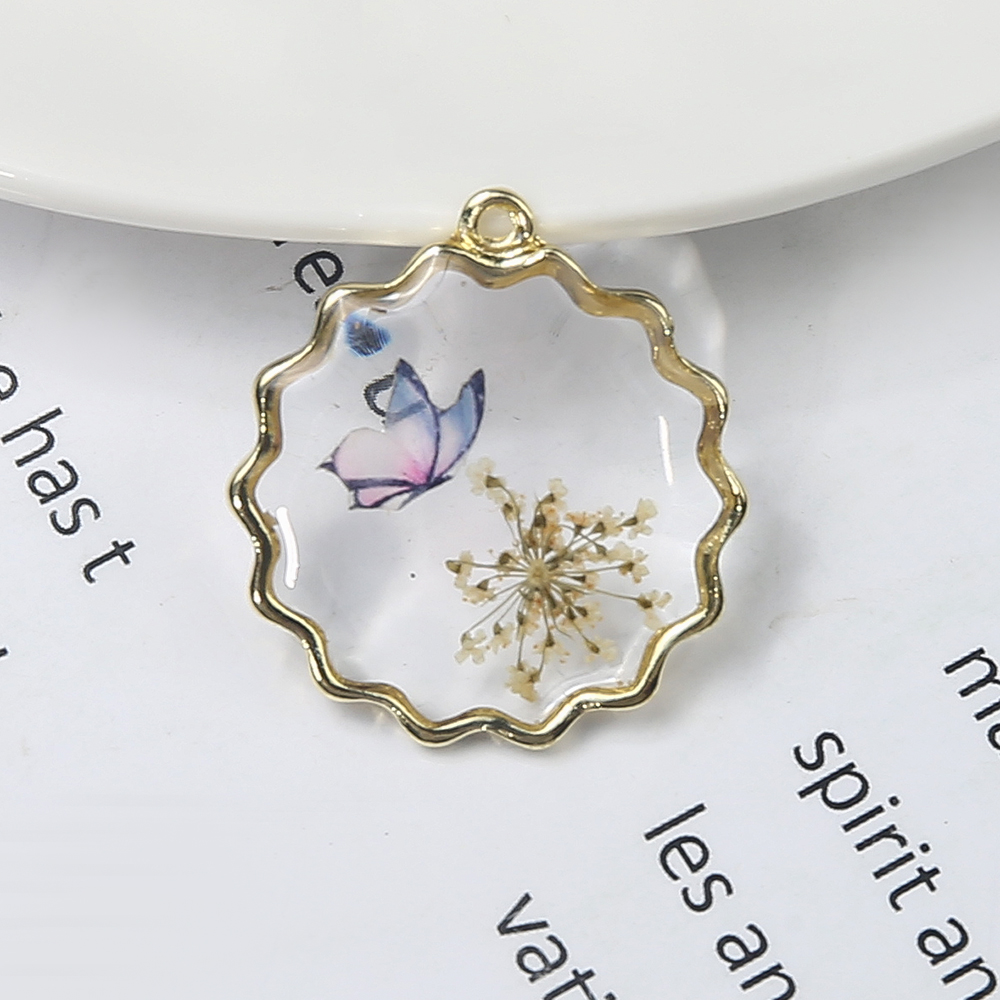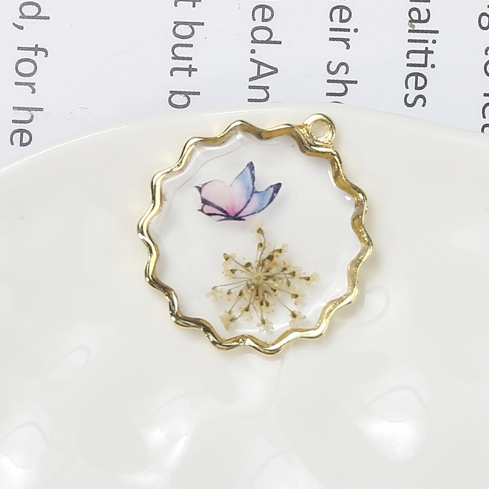 Messing Anhänger, mit Getrocknete Blumen & Harz, plattiert, DIY, gemischte Farben, frei von Nickel, Blei & Kadmium, 27.60x4.21x29.85mm, verkauft von PC