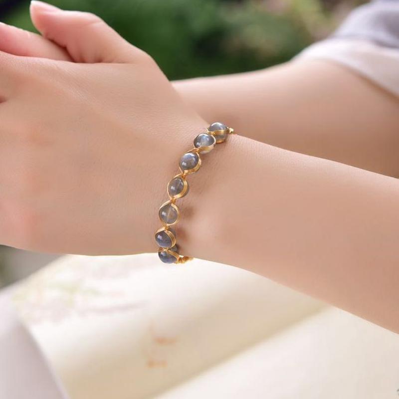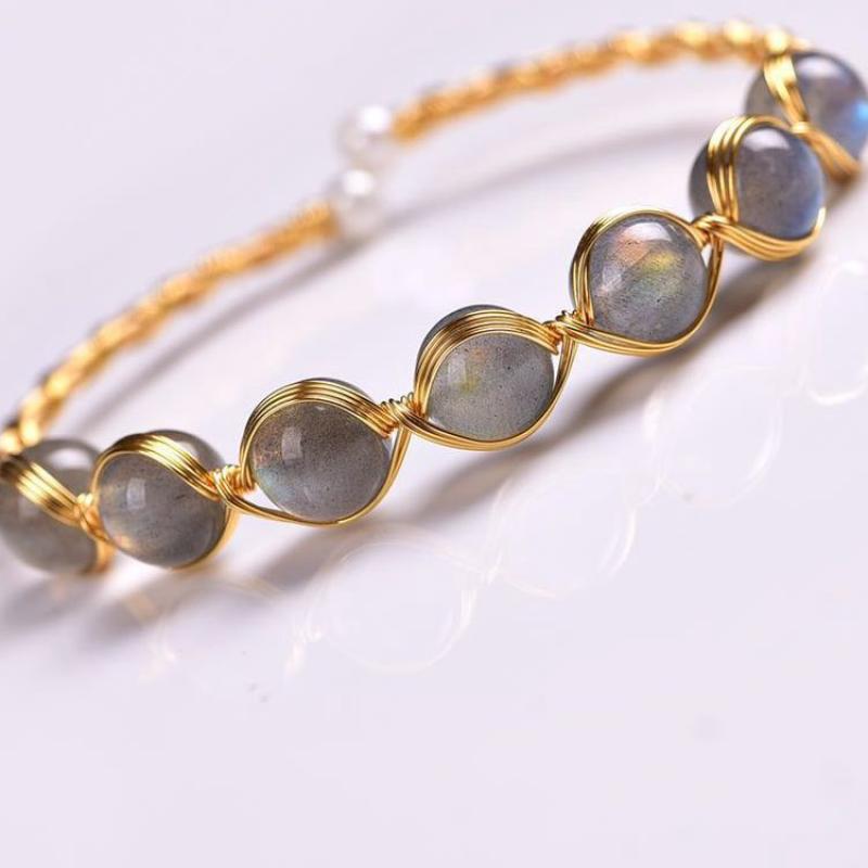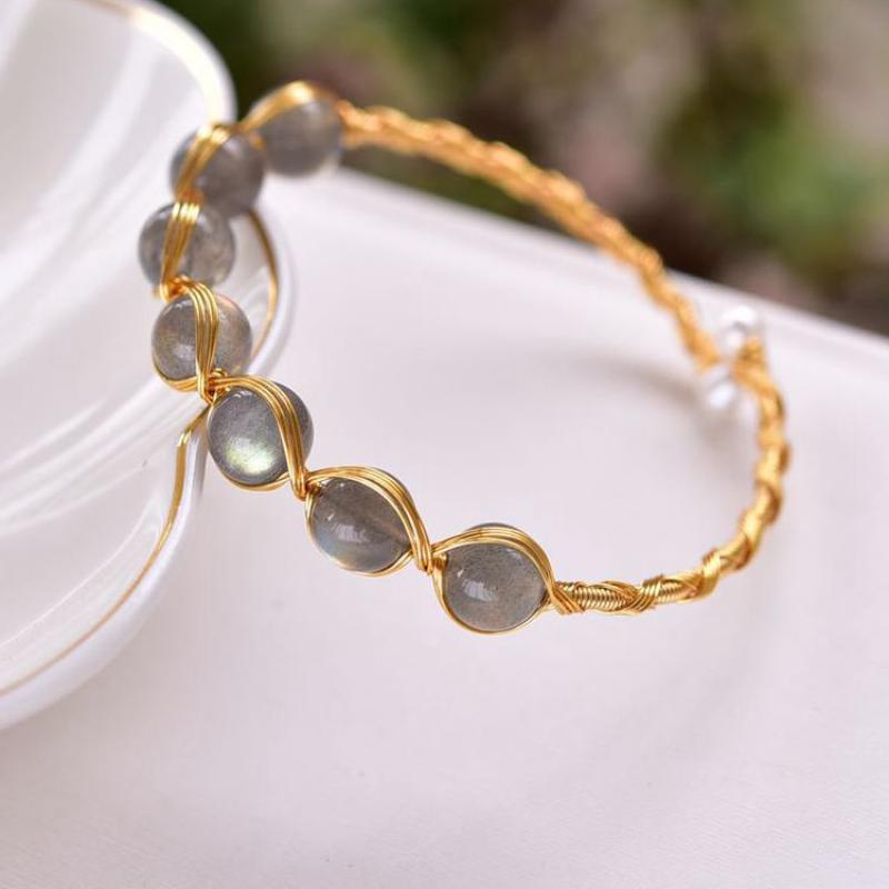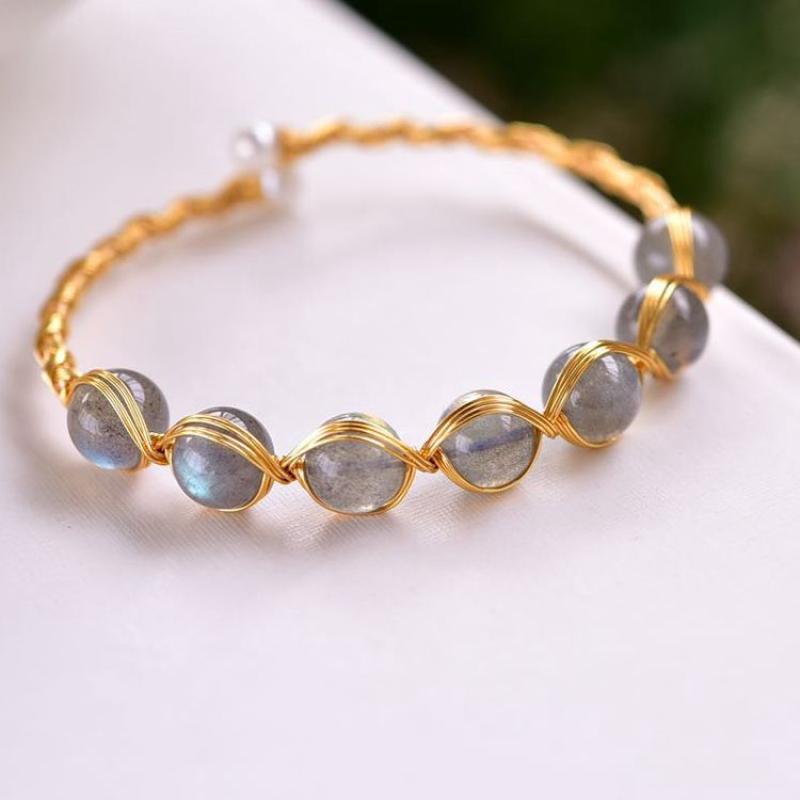 Messing Armreif, mit Mondstein, 14K goldgefüllt, Modeschmuck & für Frau, Inner diameter :55mm, verkauft von PC