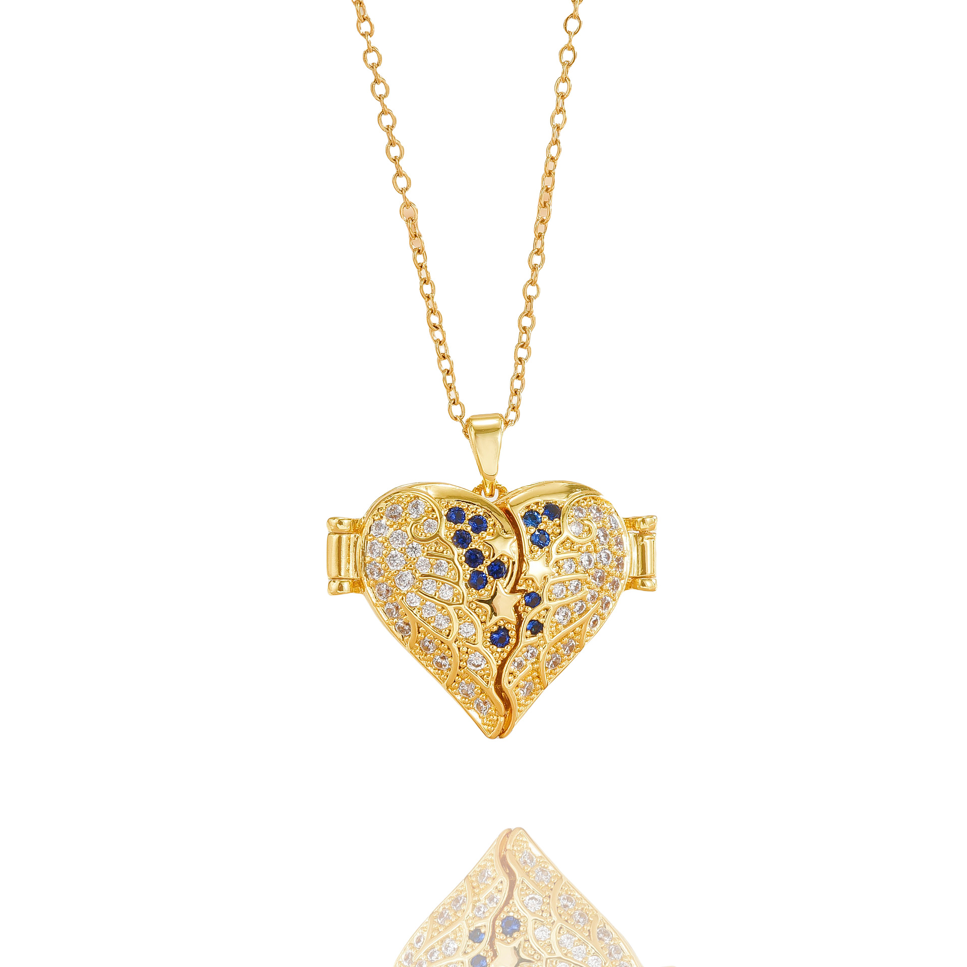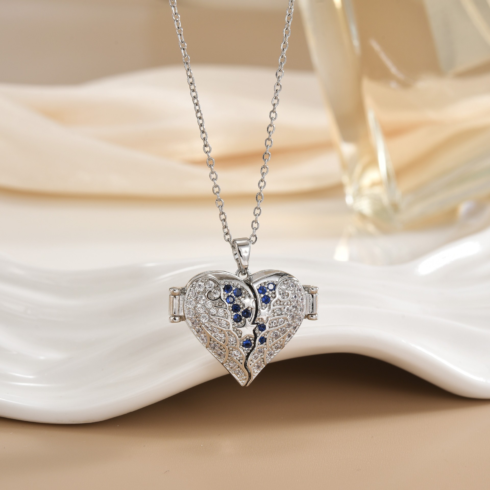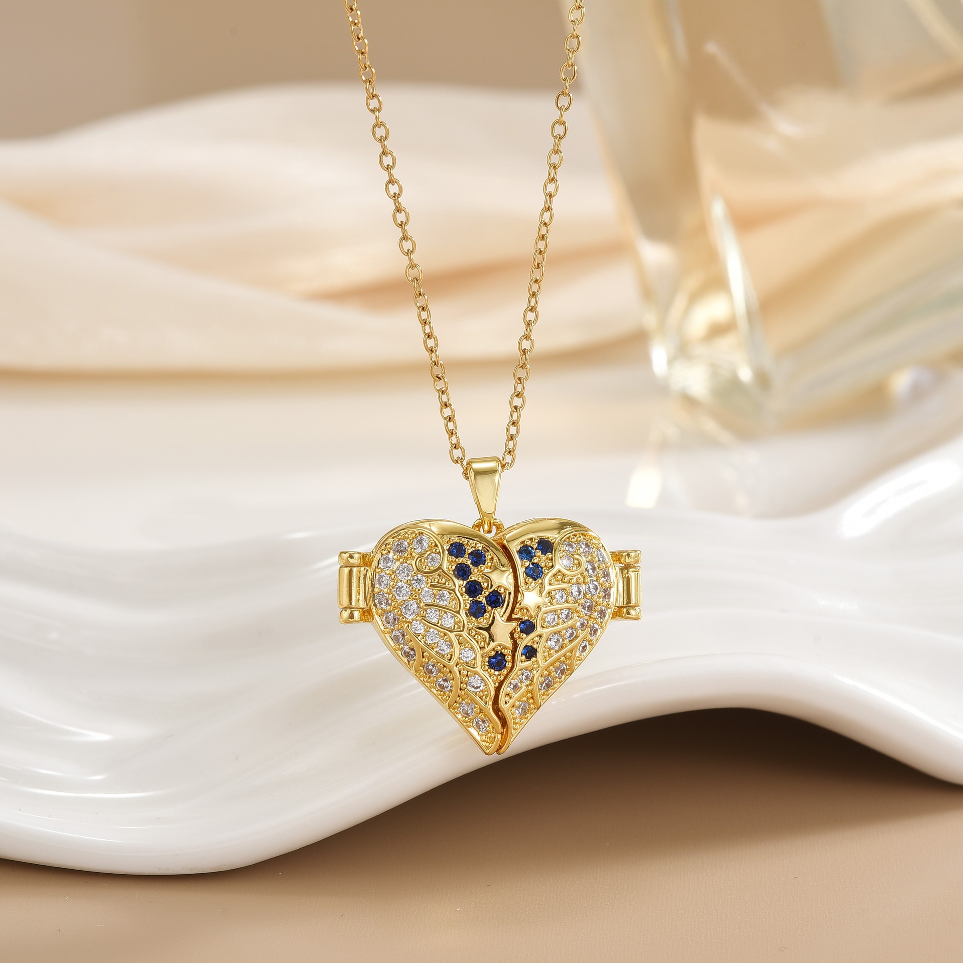 Messing Halskette, Herz, plattiert, Oval-Kette & für Frau & mit Strass, keine, Länge ca. 45 cm, verkauft von PC