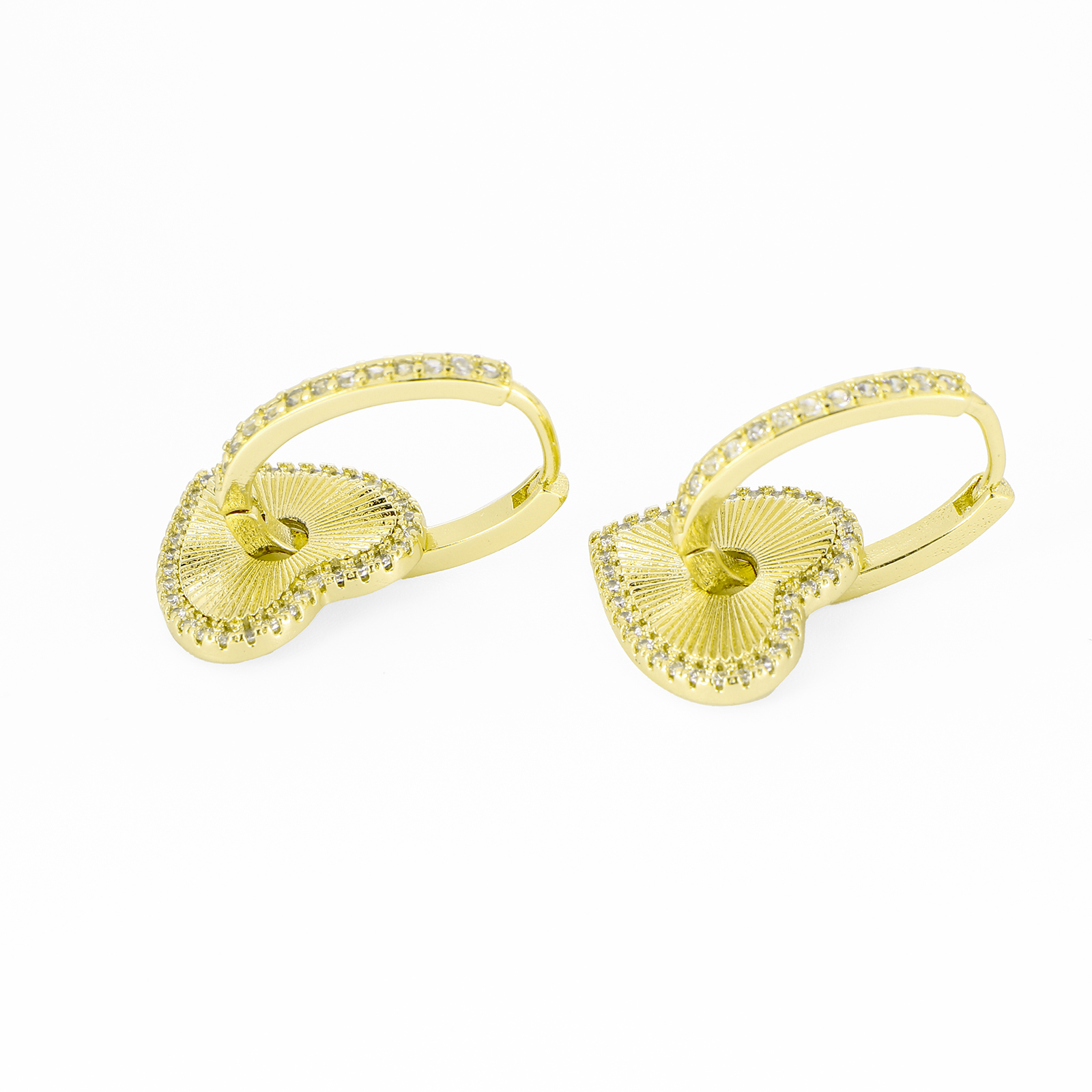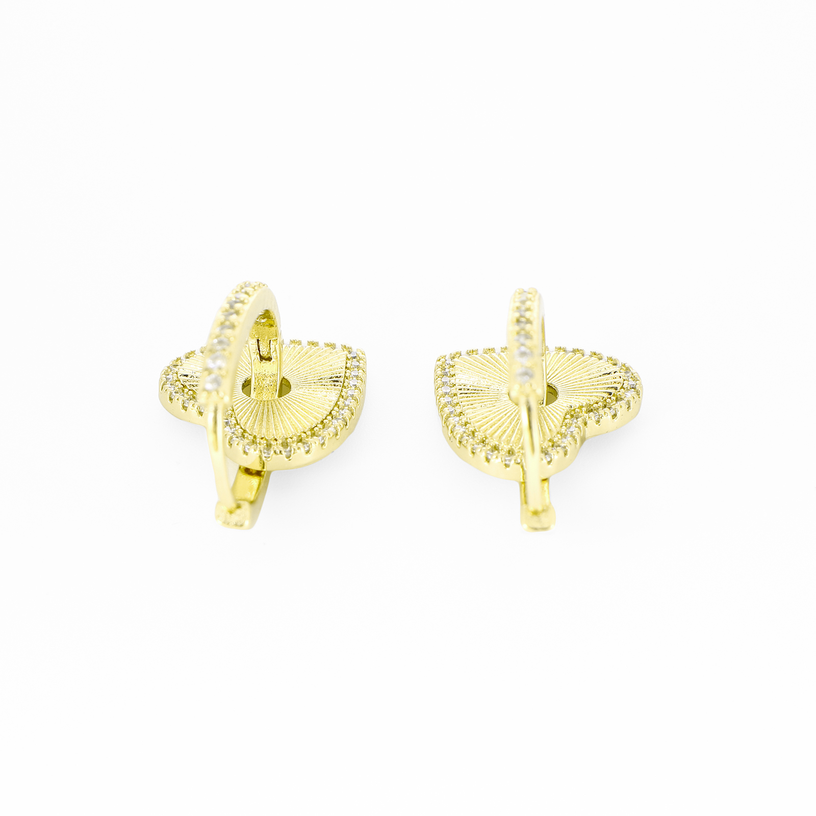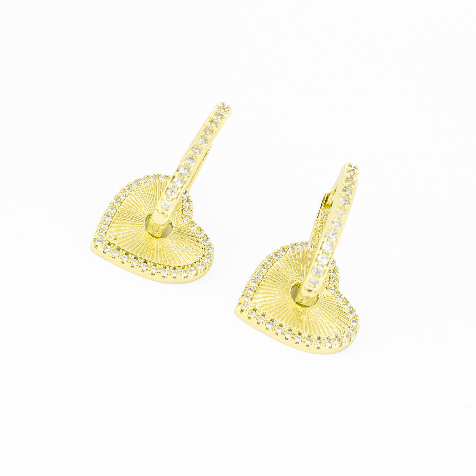 Messing Huggie Hoop Ohrhänger, Herz, goldfarben plattiert, Micro pave Zirkonia & für Frau, verkauft von Paar