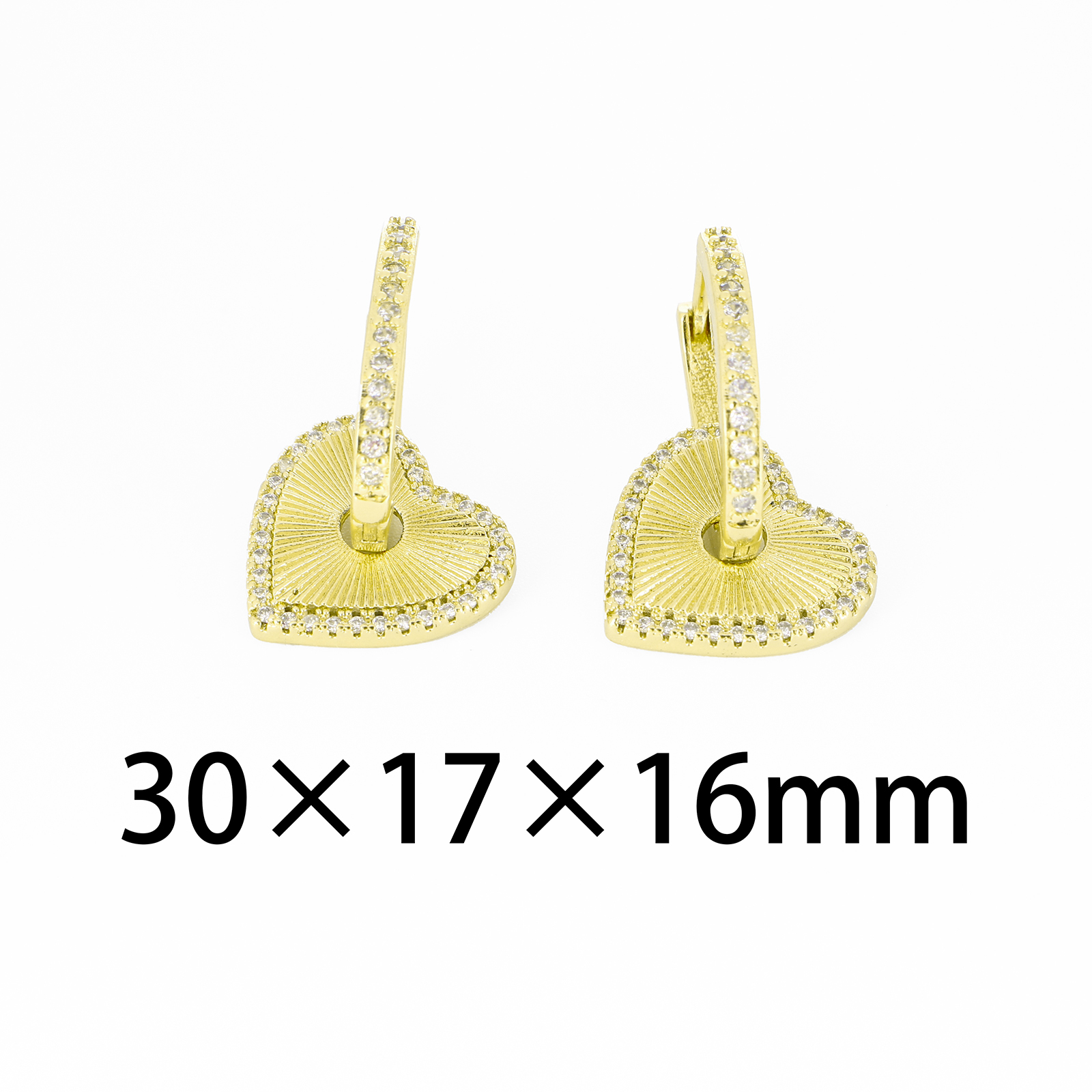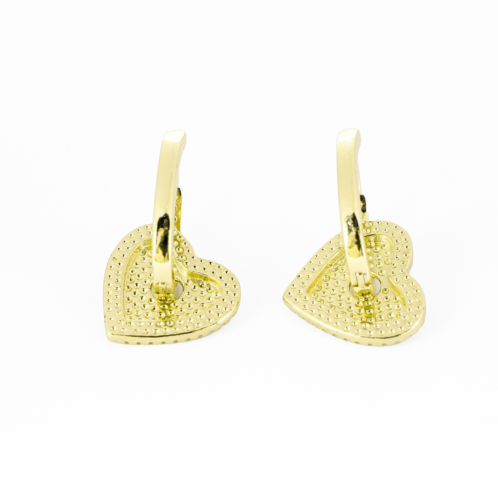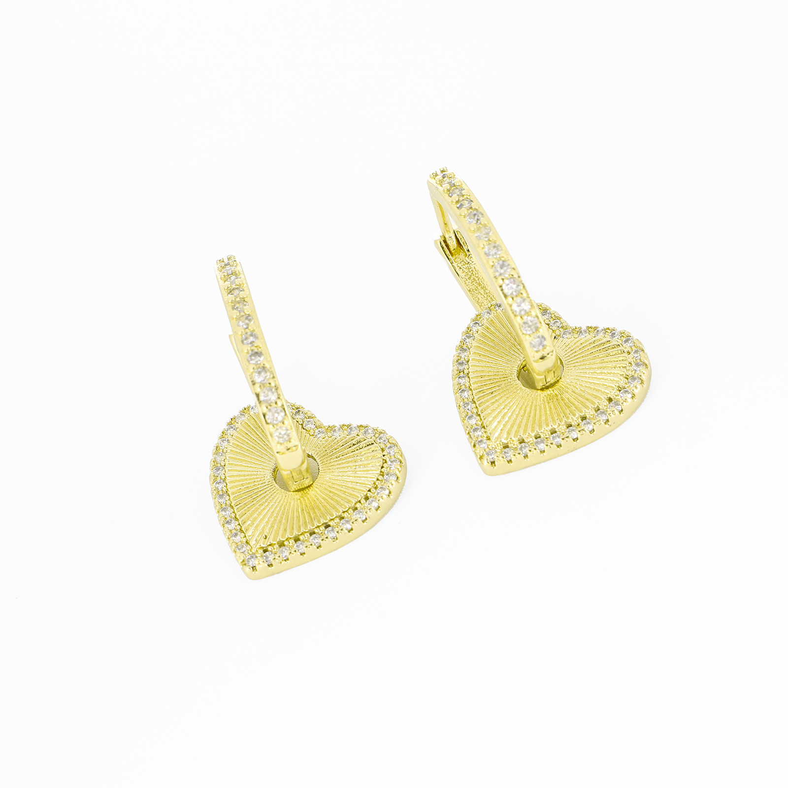 Messing Huggie Hoop Ohrhänger, Herz, goldfarben plattiert, Micro pave Zirkonia & für Frau, verkauft von Paar