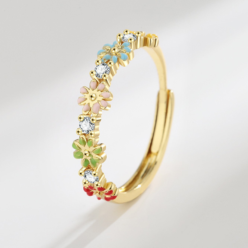 Messing Manschette Fingerring, Blume, plattiert, Micro pave Zirkonia & für Frau & Epoxy Aufkleber, keine, verkauft von PC