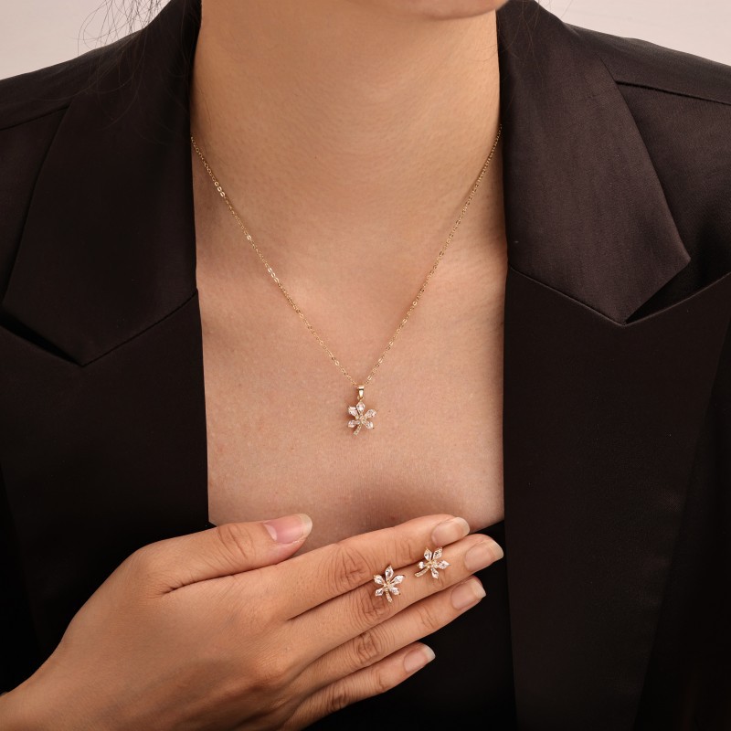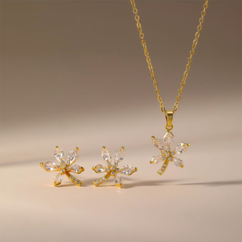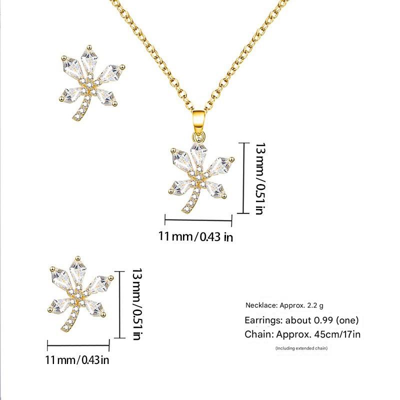 Messing Mode Schmuckset, Stud Ohrring & Halskette, Ahornblatt, plattiert, 2 Stück & für Frau & mit Strass, keine, verkauft von setzen