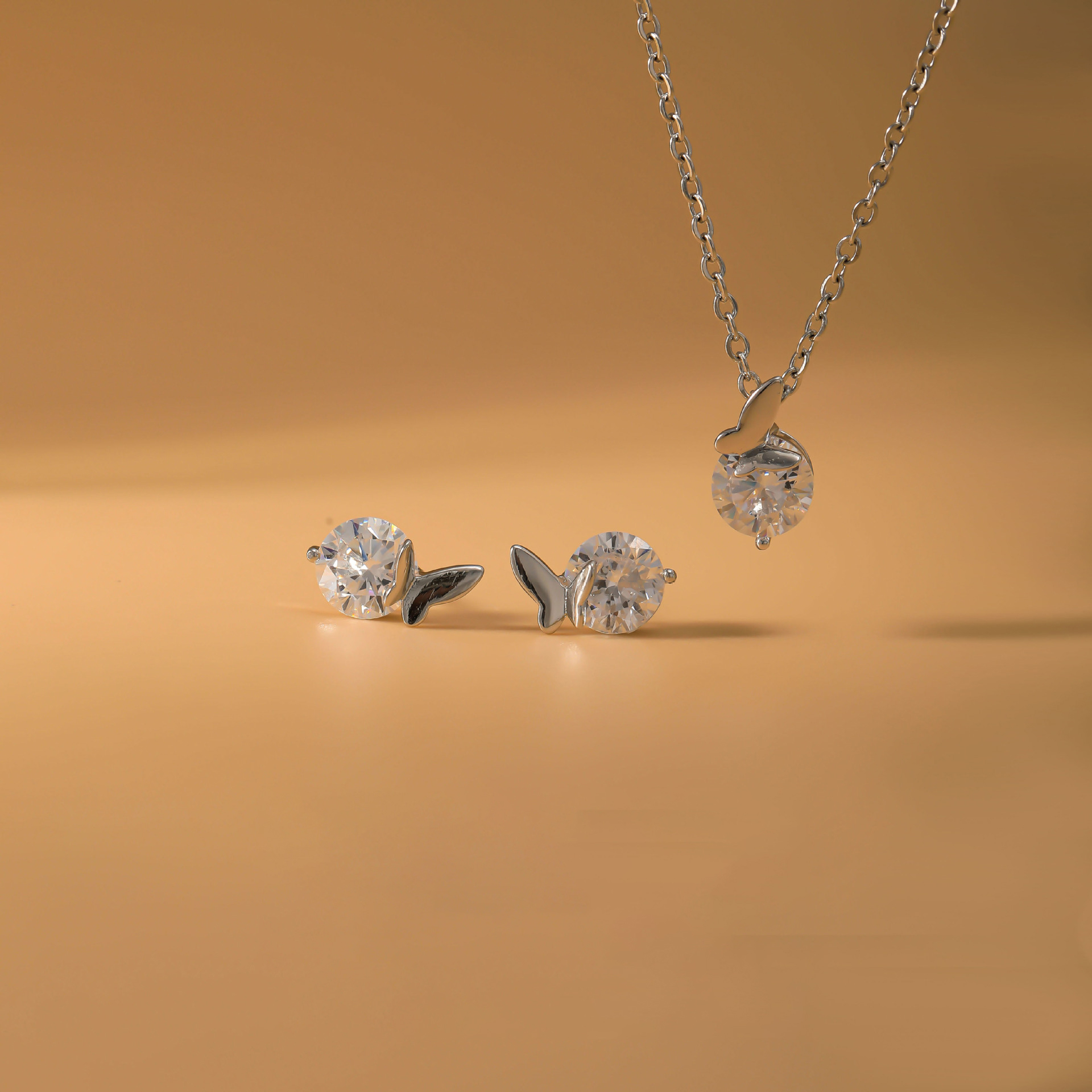 Messing Mode Schmuckset, Stud Ohrring & Halskette, plattiert, 2 Stück & für Frau & mit Strass, verkauft von setzen