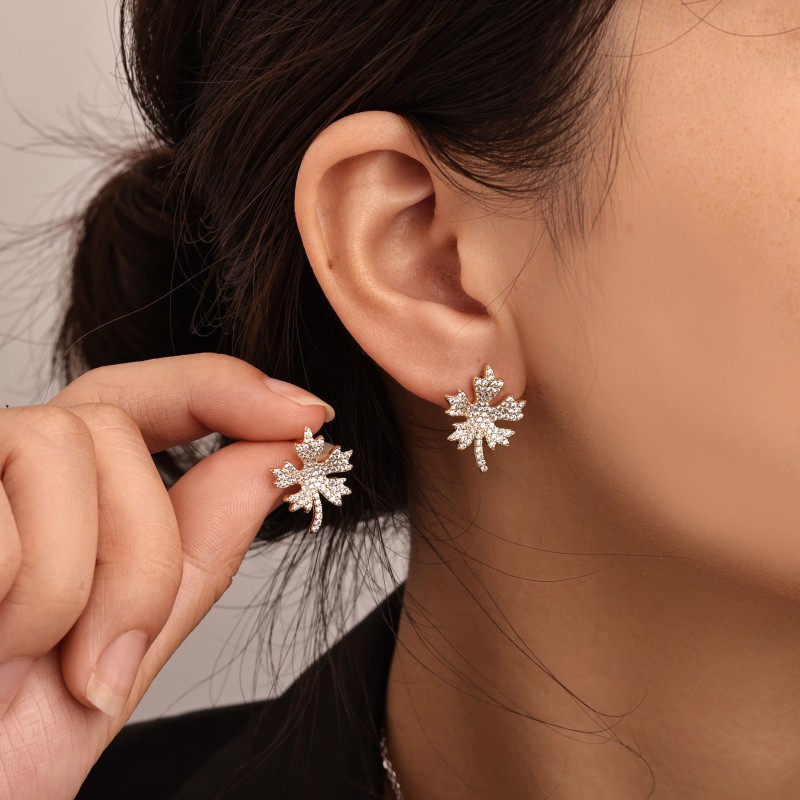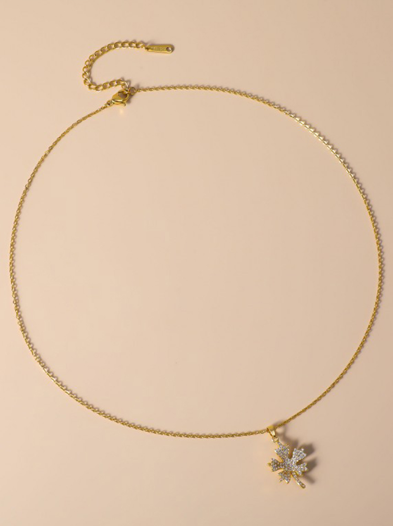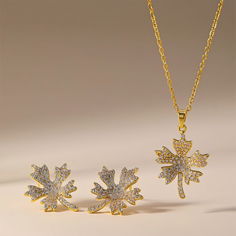 Messing Mode Schmuckset, Stud Ohrring & Halskette, Ahornblatt, plattiert, 2 Stück & für Frau & mit Strass, keine, verkauft von setzen