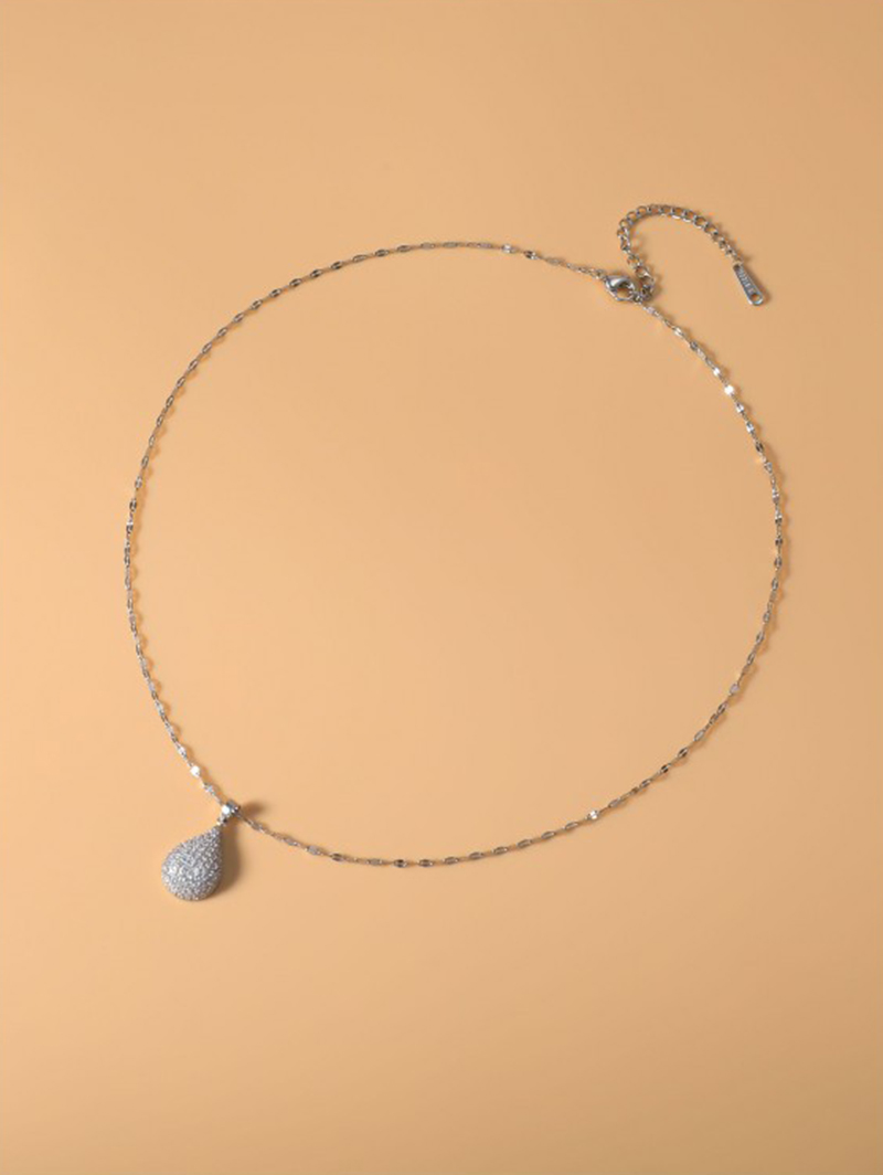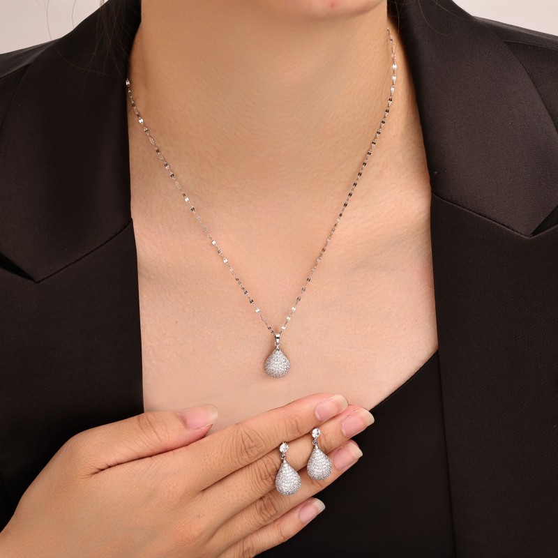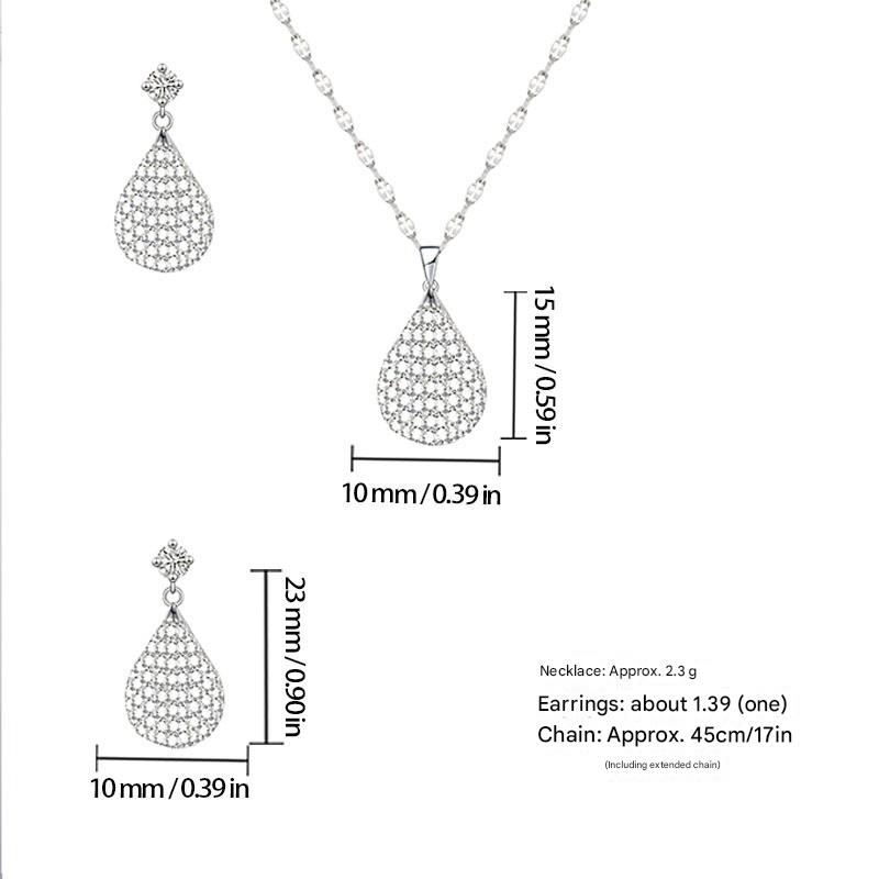 Messing Mode Schmuckset, Ohrring & Halskette, Tropfen, plattiert, 2 Stück & Micro pave Zirkonia & für Frau, Silberfarbe, verkauft von setzen