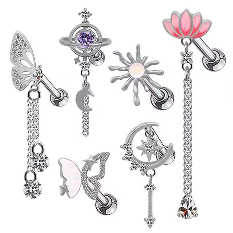 Messing Ohrpiercing, plattiert, unisex & verschiedene Stile für Wahl & Emaille & mit Strass, earring length 10-60mm, verkauft von PC