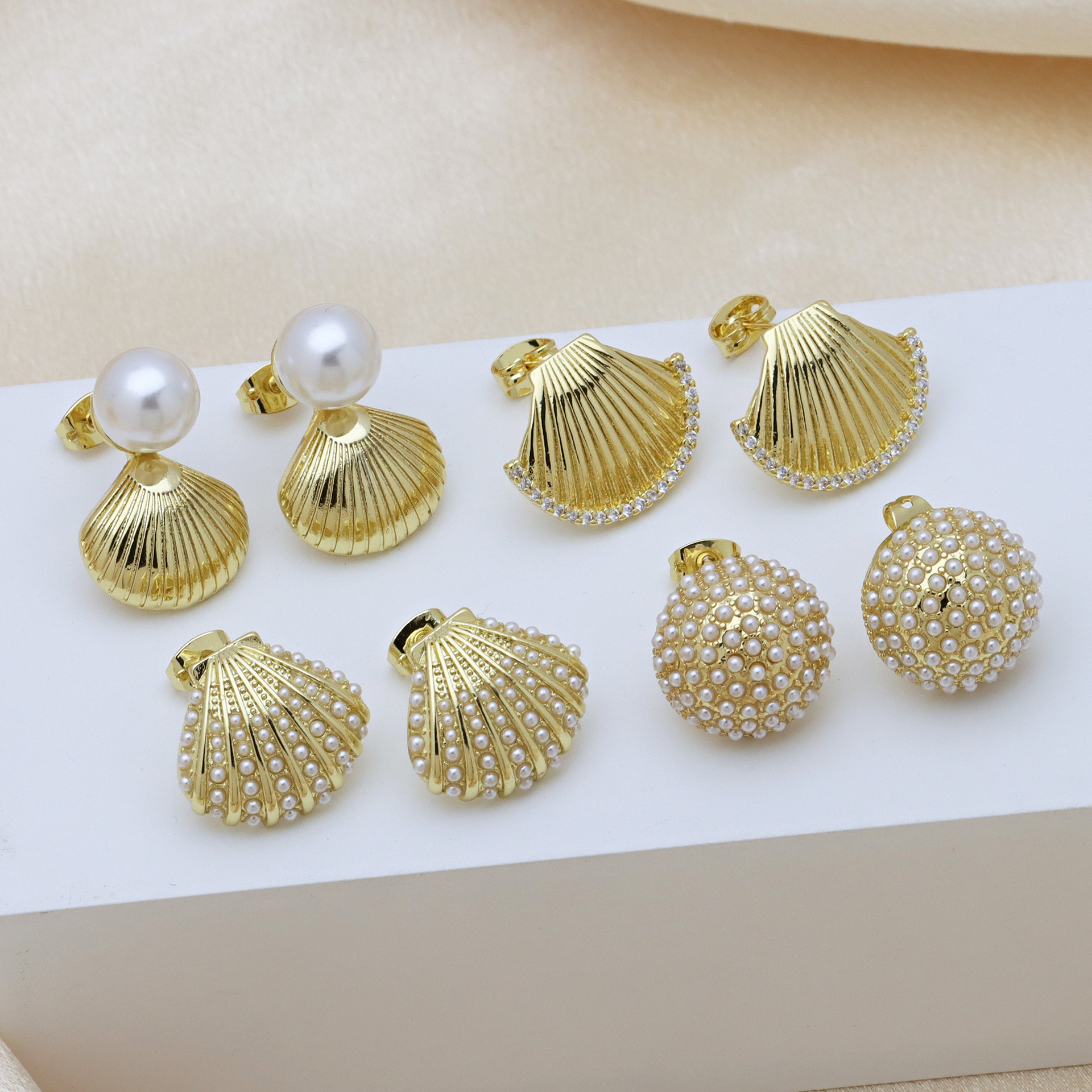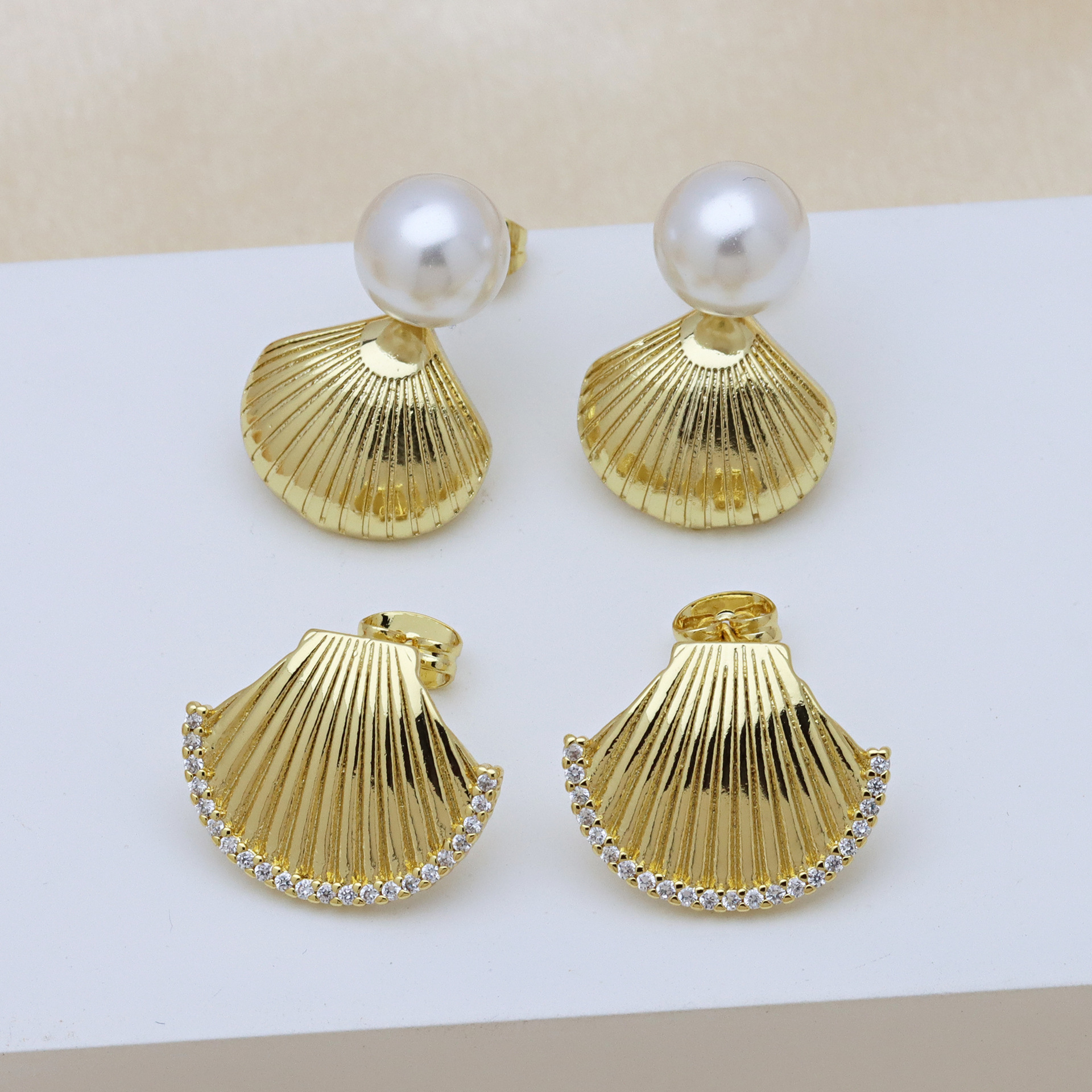 Messing Ohrstecker, mit Kunststoff Perlen, goldfarben plattiert, verschiedene Stile für Wahl & Micro pave Zirkonia & für Frau, keine, verkauft von Paar