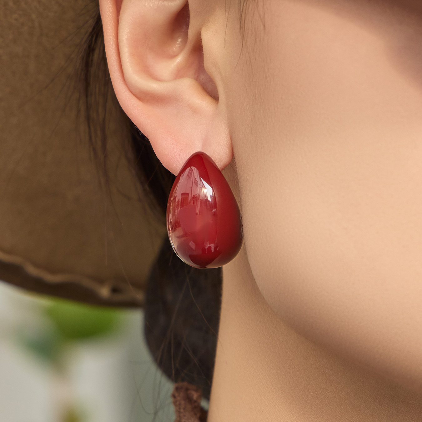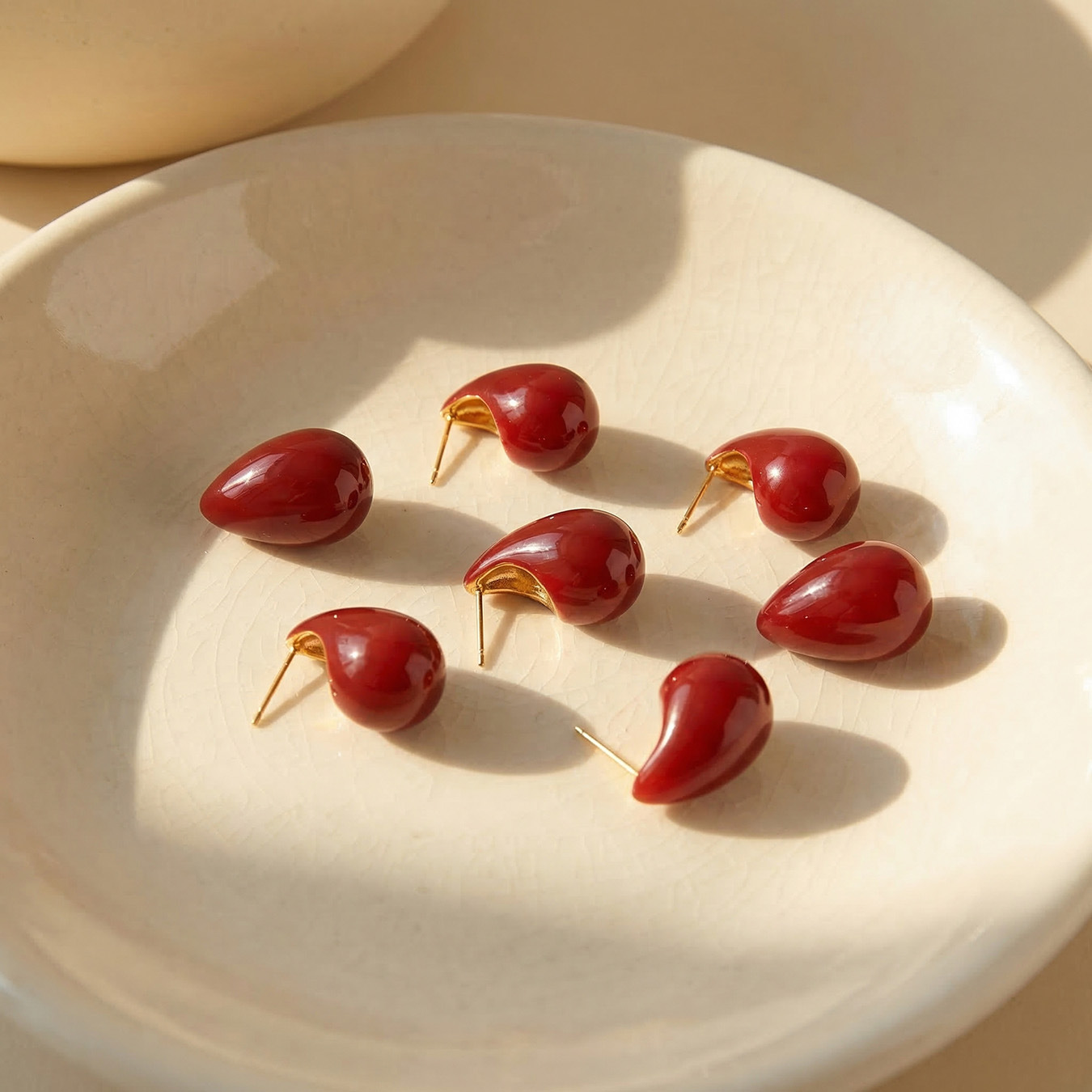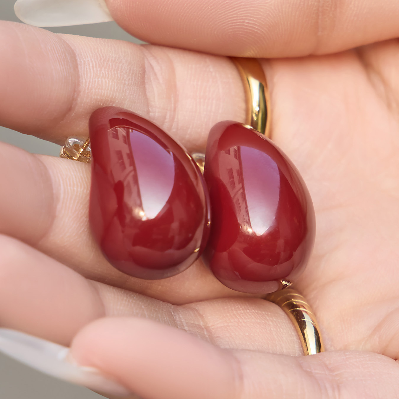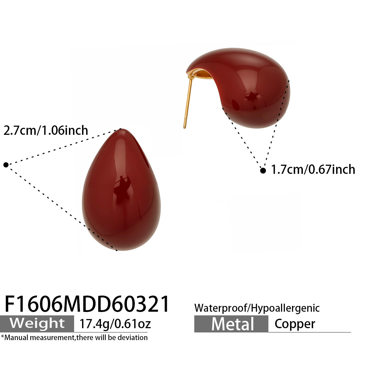 Messing Ohrstecker, Tropfen, goldfarben plattiert, für Frau & Emaille, rot, 17x27mm, verkauft von Paar